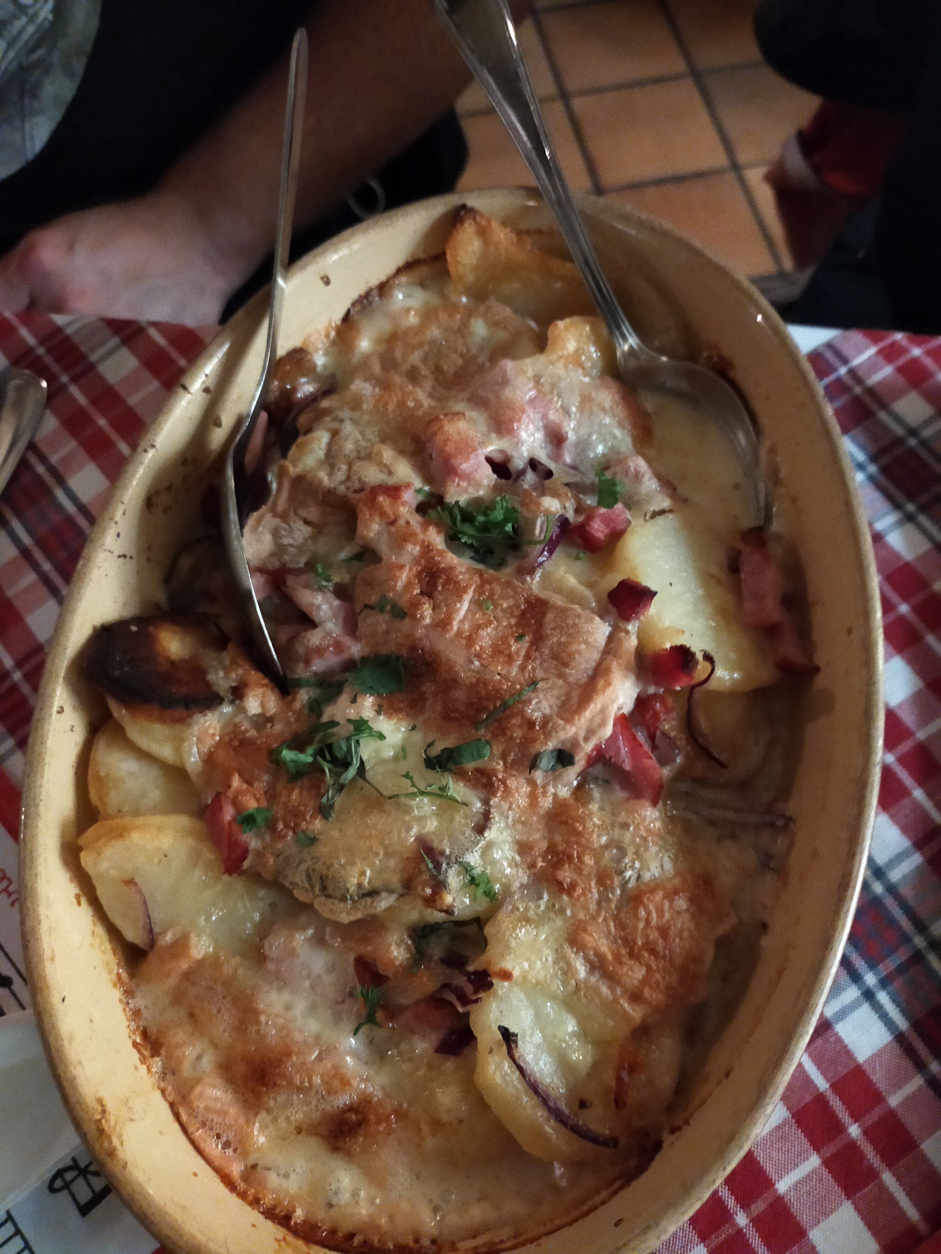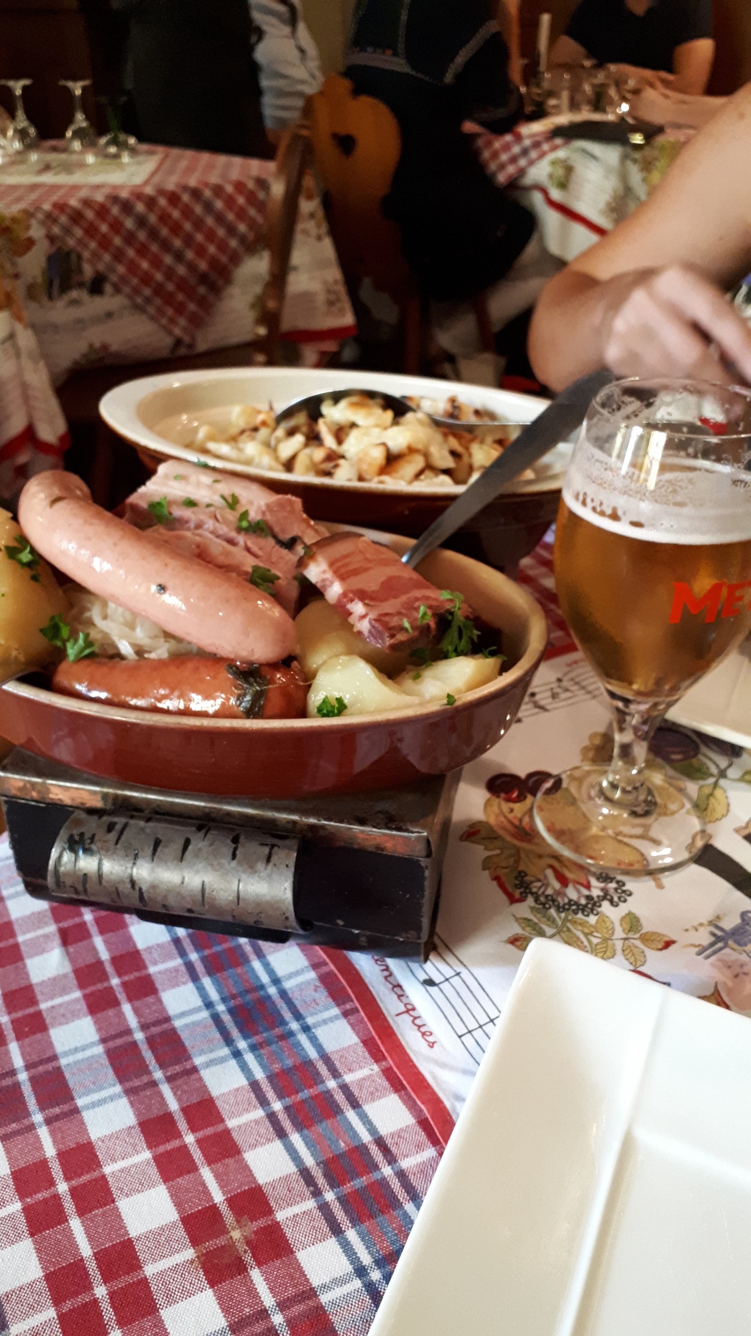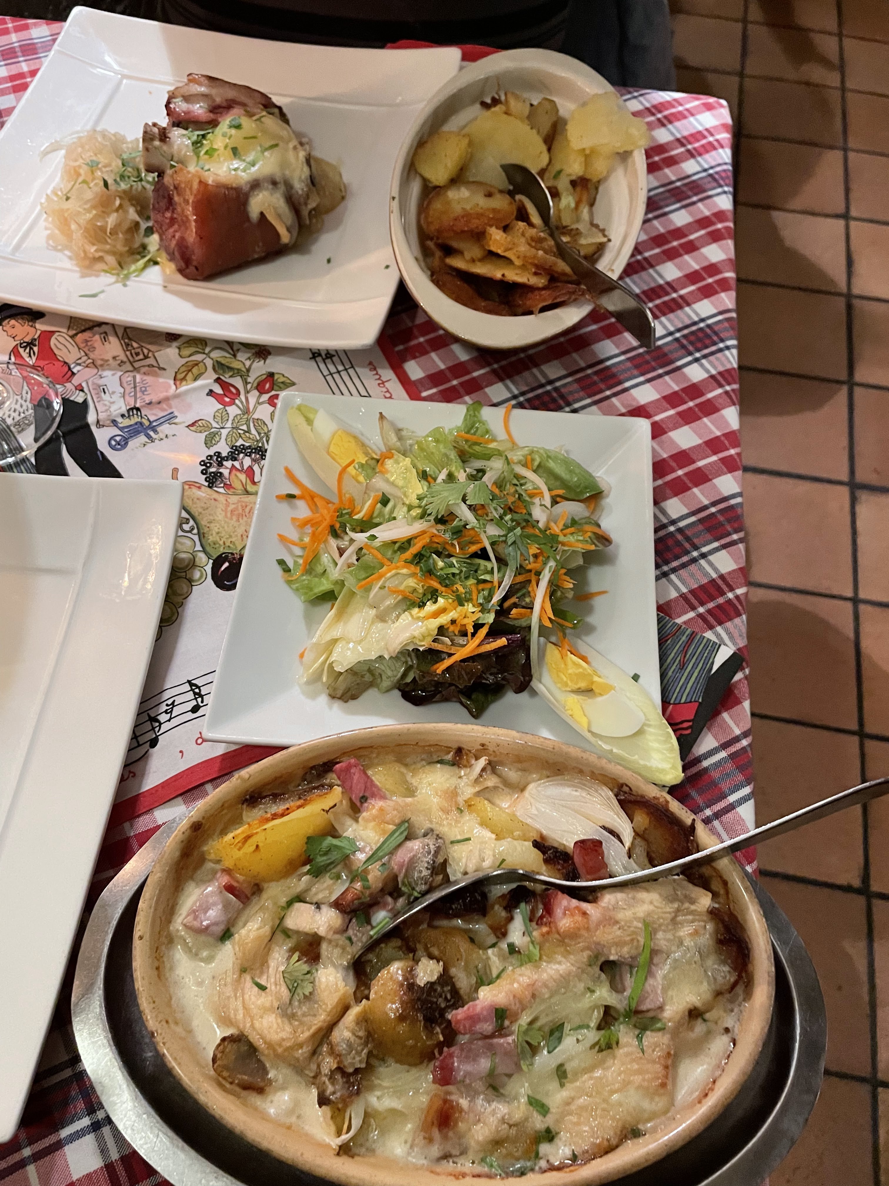 Accueil du patron déplorable, réflexions déplacées privilégiant sa clientèle habituelle Bravo au chef pour le choucroute royale, excellente et bien garnie En revanche la tartiflette sauce munster j’ai cherché les lardons ! Dommage ... mais les restaurants ne manquent pas en centre ville 🙂
