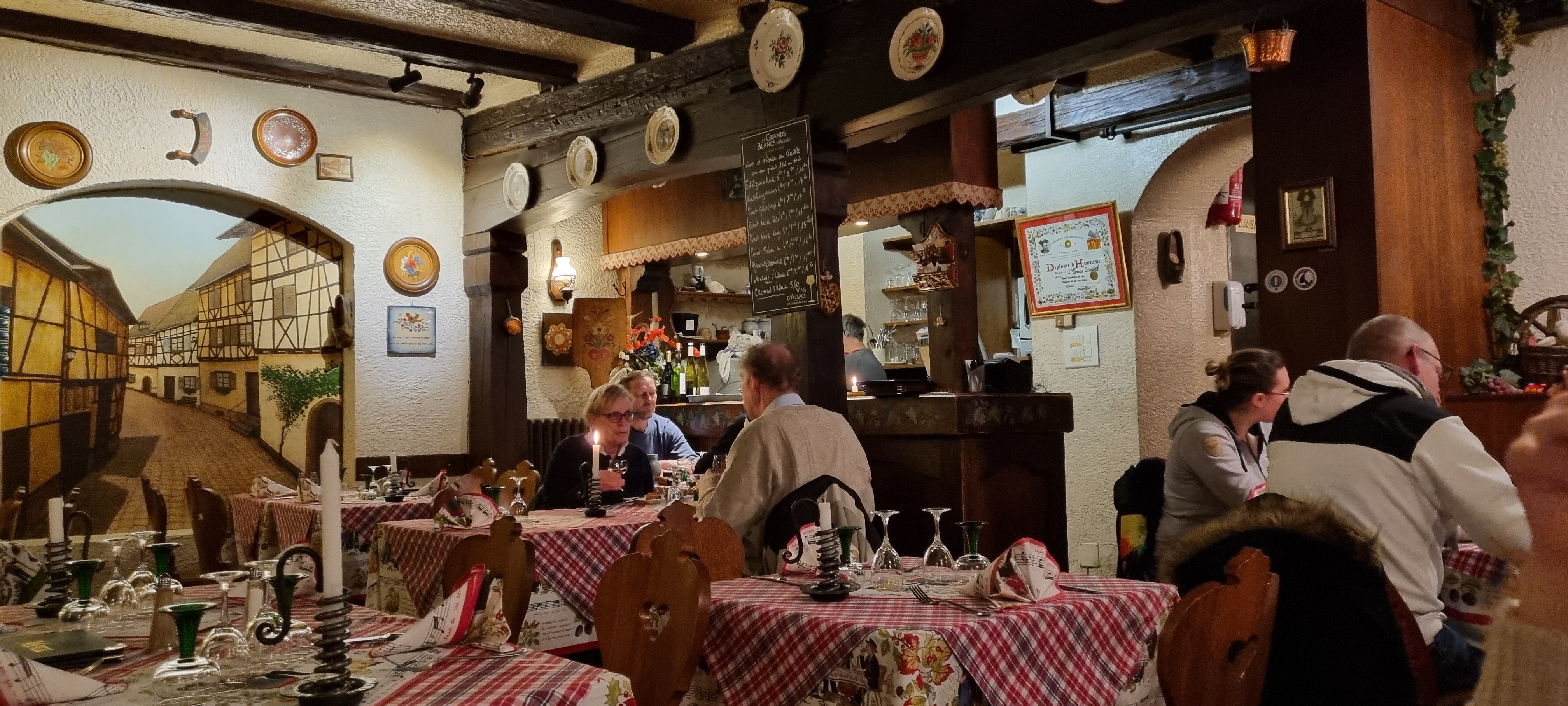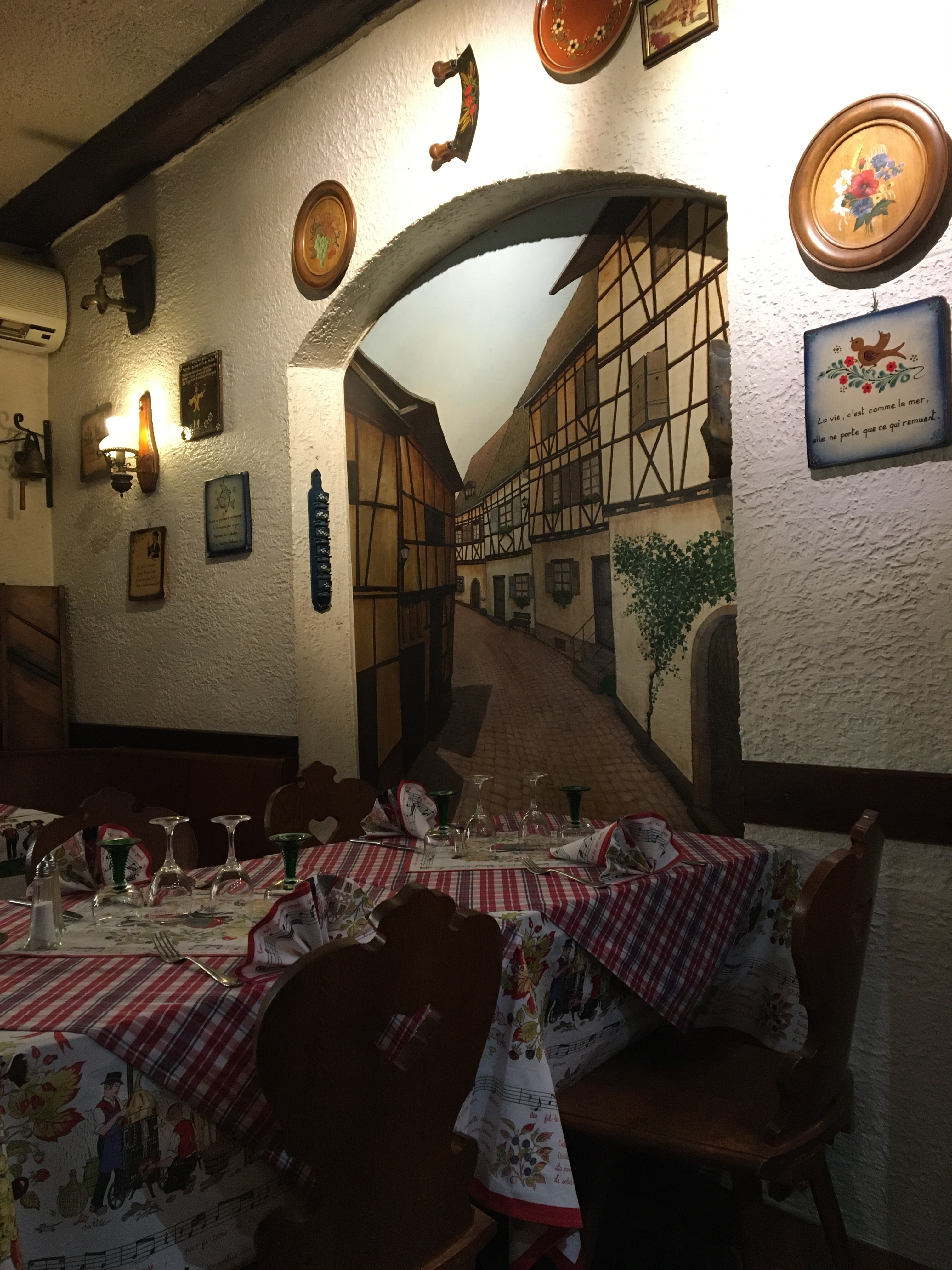 Cadre typique alsacien ! Si vous voulez manger de la cuisine traditionnelle alsacienne je vous conseille c’est très bon et généreux !
