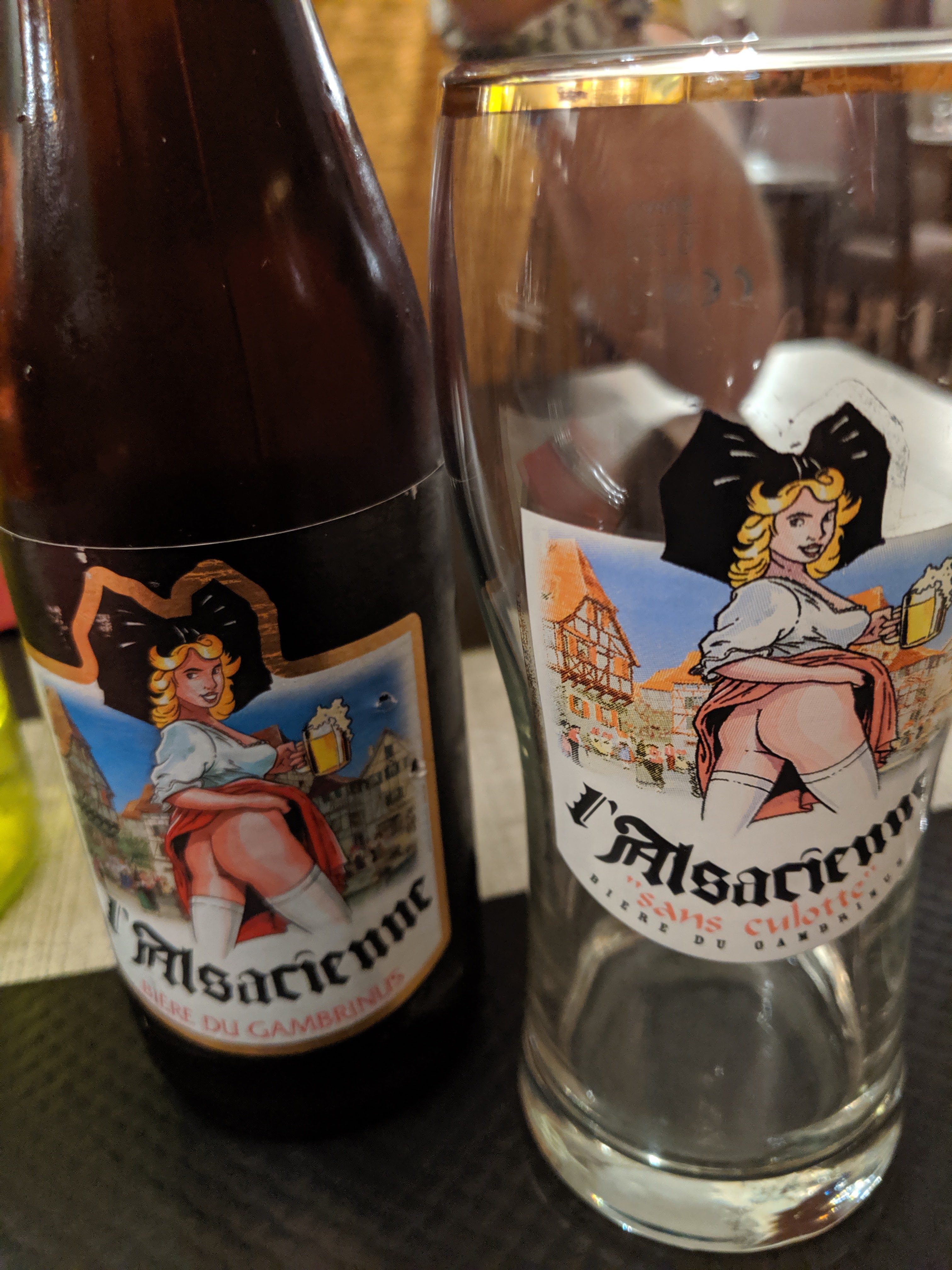 Je dois dire que je suis séduit.. L'accueil est très chaleureux , vous vous sentez en famille... Une petite mousse pour démarrer en douceur, je vous conseille la Lupulus, une bière aux saveurs épicées (Un trait de cardamome dans la blanche, mais tout est histoire de palet..), en attendant la suite, le foie gras, fait maison, et il faut le préciser car ce qu'on y sent avant tout est la maîtrise d'un savoir, et l'amour du métier qu'ont les chefs.. Puis.. Une belle choucroute voire une tarte flambée pour la précéder.. Ces tartes sont cuites au feu de bois et on le sent. Vraiment. La choucroute est hors des sentiers communs. Elle est... Divine. Et.. Mars et Vénus me pardonnent, mais il ne me tarde pas de les rejoindre car je ne suis pas sûr de retrouver cette qualité dans l'autre monde.. Le chou est fantastique, il vous fait regretter de ne pas avoir un estomac de titan. Suivez cela d'un nougat glacé et là.. la perfection vous frôle. Enfin.. Un whiskey alsacien. Mes ancêtres me pardonnent, mais.. Les Celtes ont du soucis à se faire ! La meilleure adresse de Toulouse. Merci Martine et Pascal, à très bientôt!
