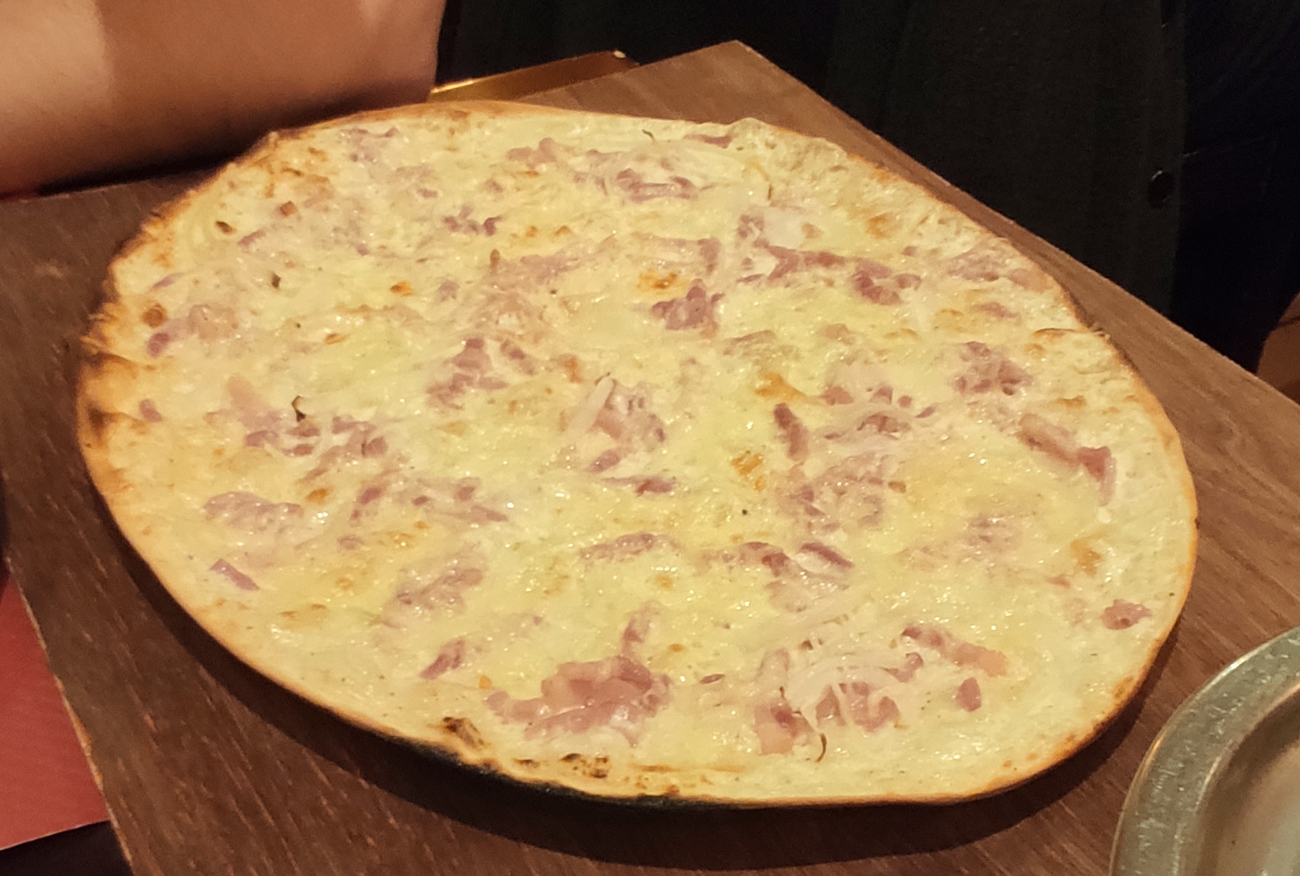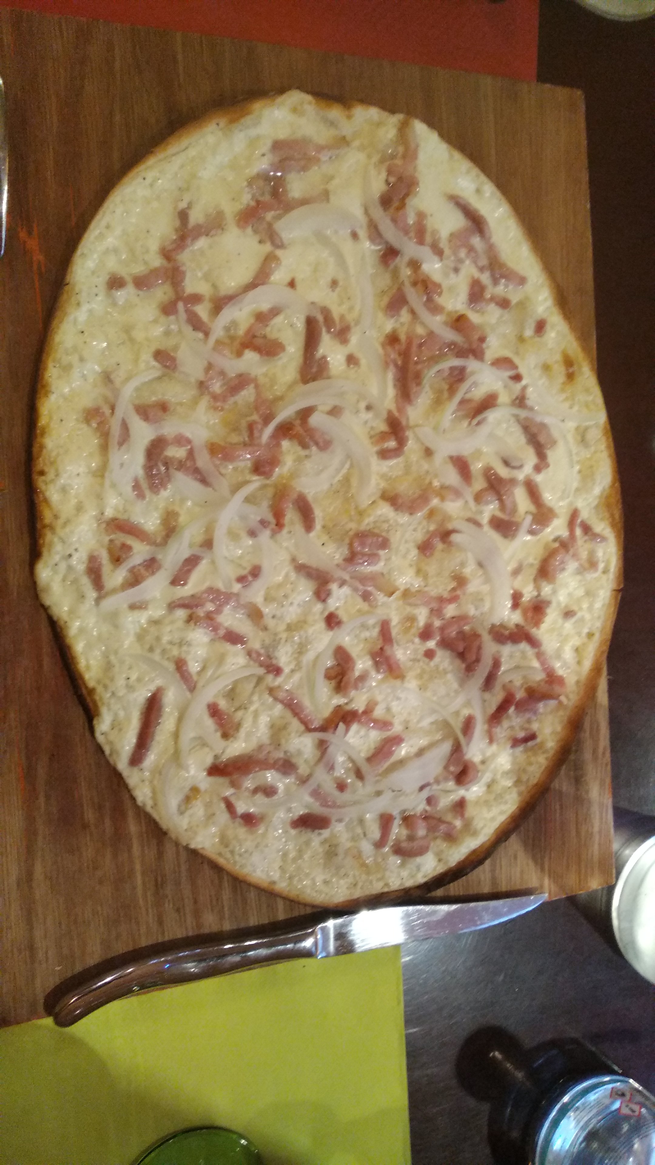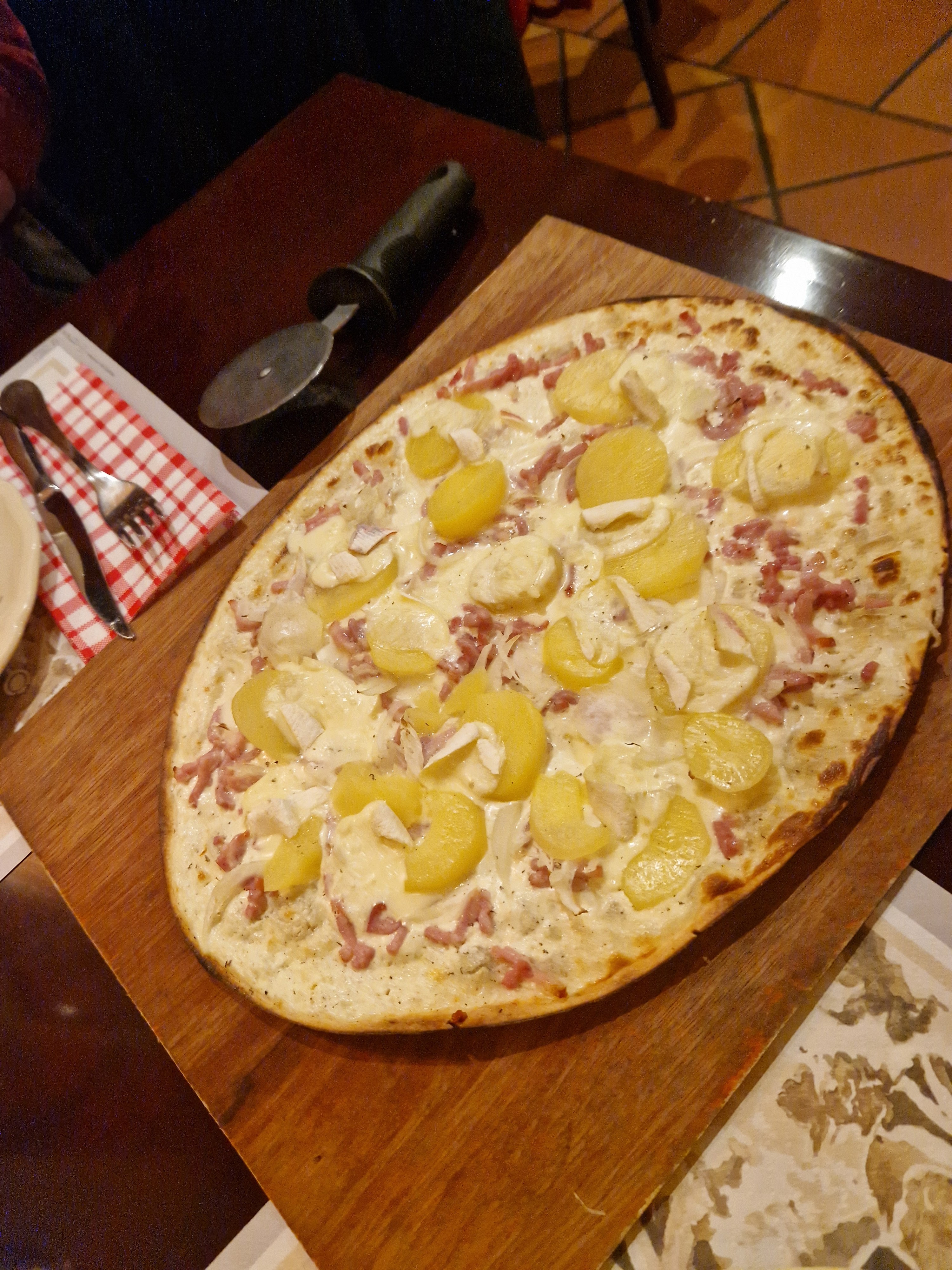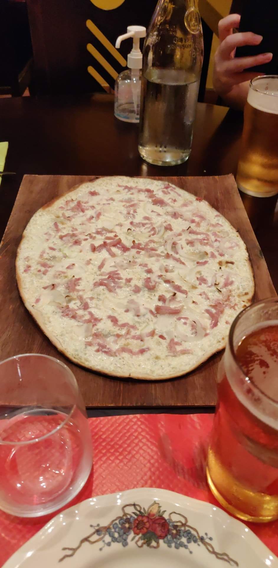 Une tuerie! Si vous voulez manger une vraie tarte flambée allez y les yeux fermés! Avec les belles petites assiettes.. vraiment comme à la maison! Accueil chaleureux, repas au top! À bientôt!