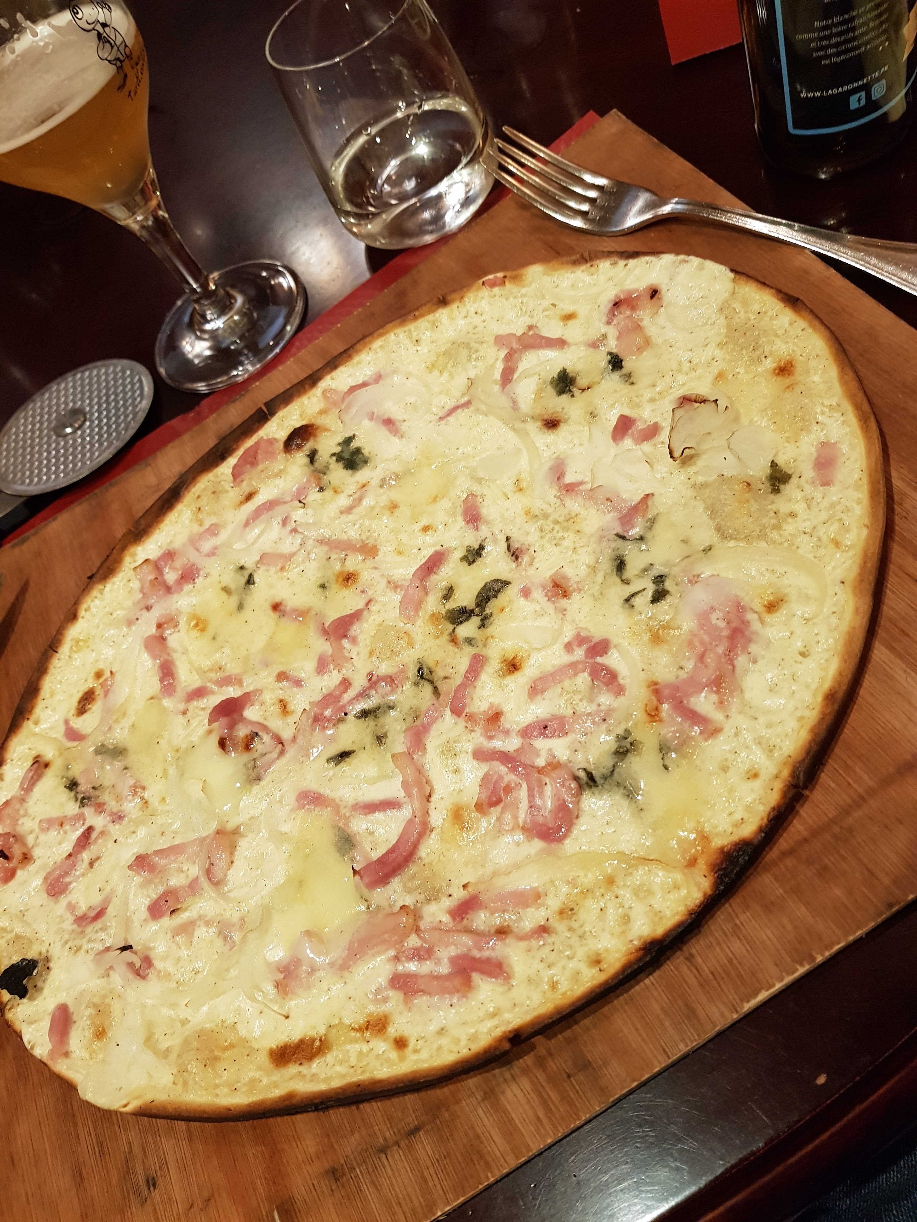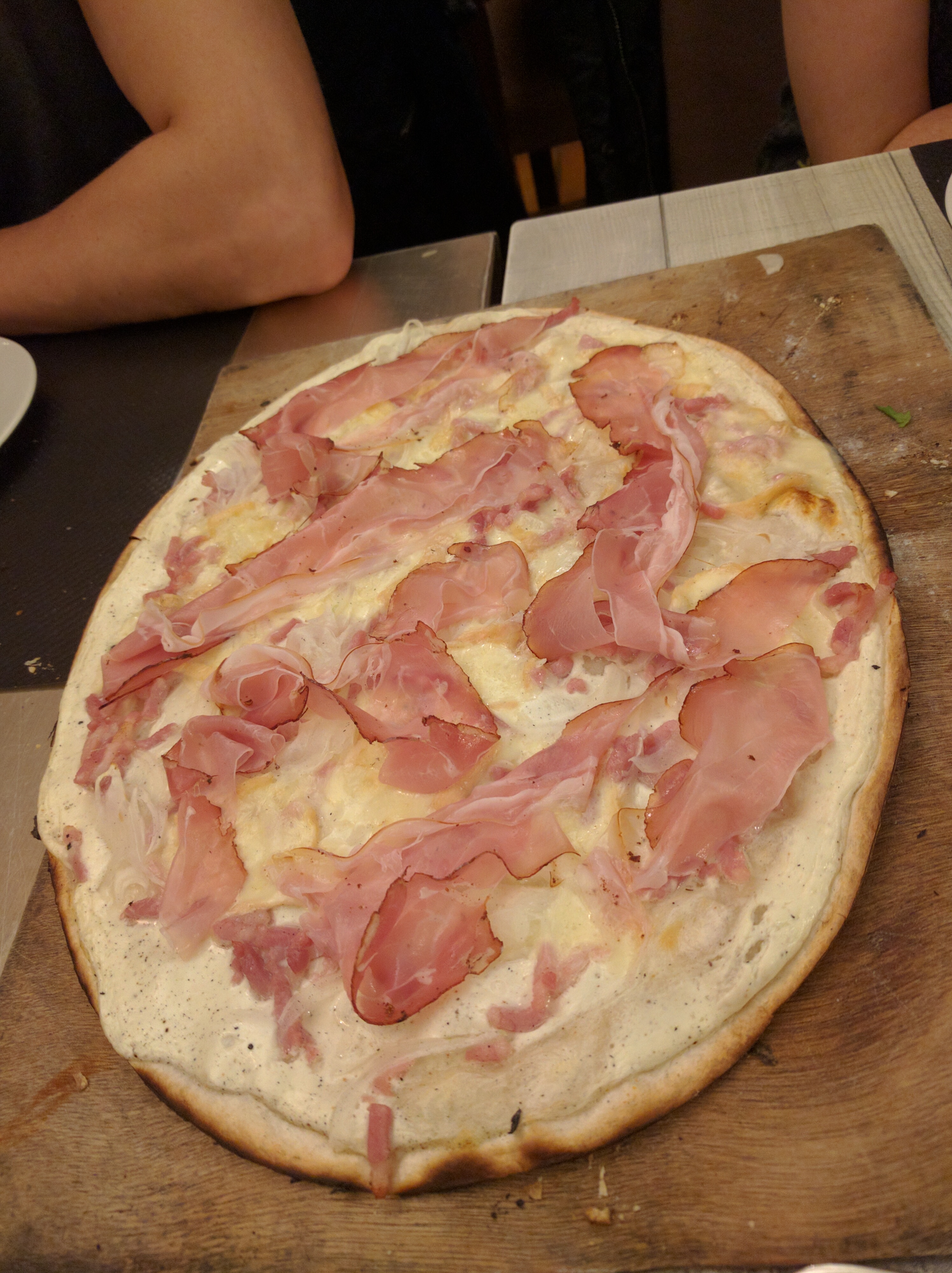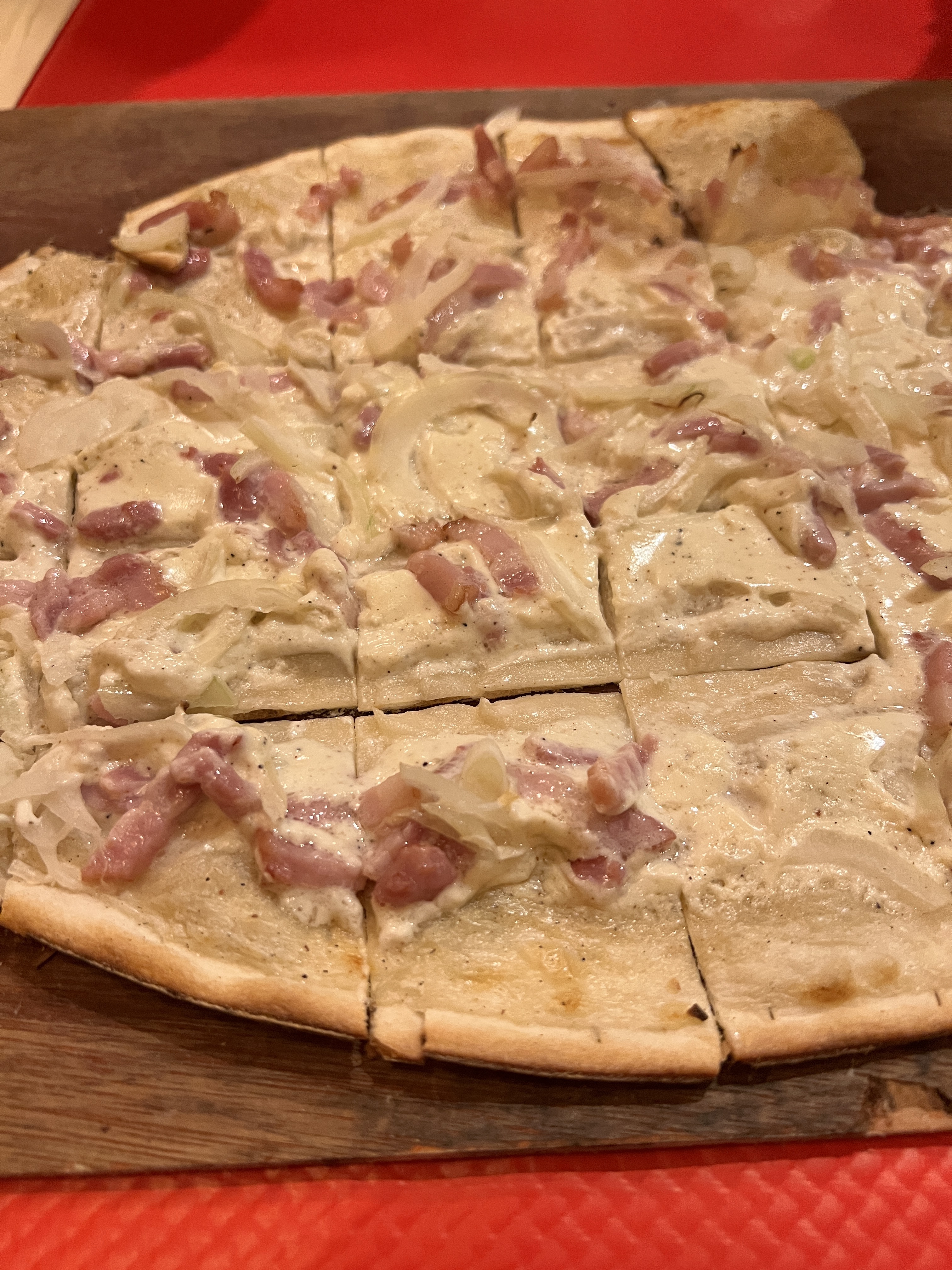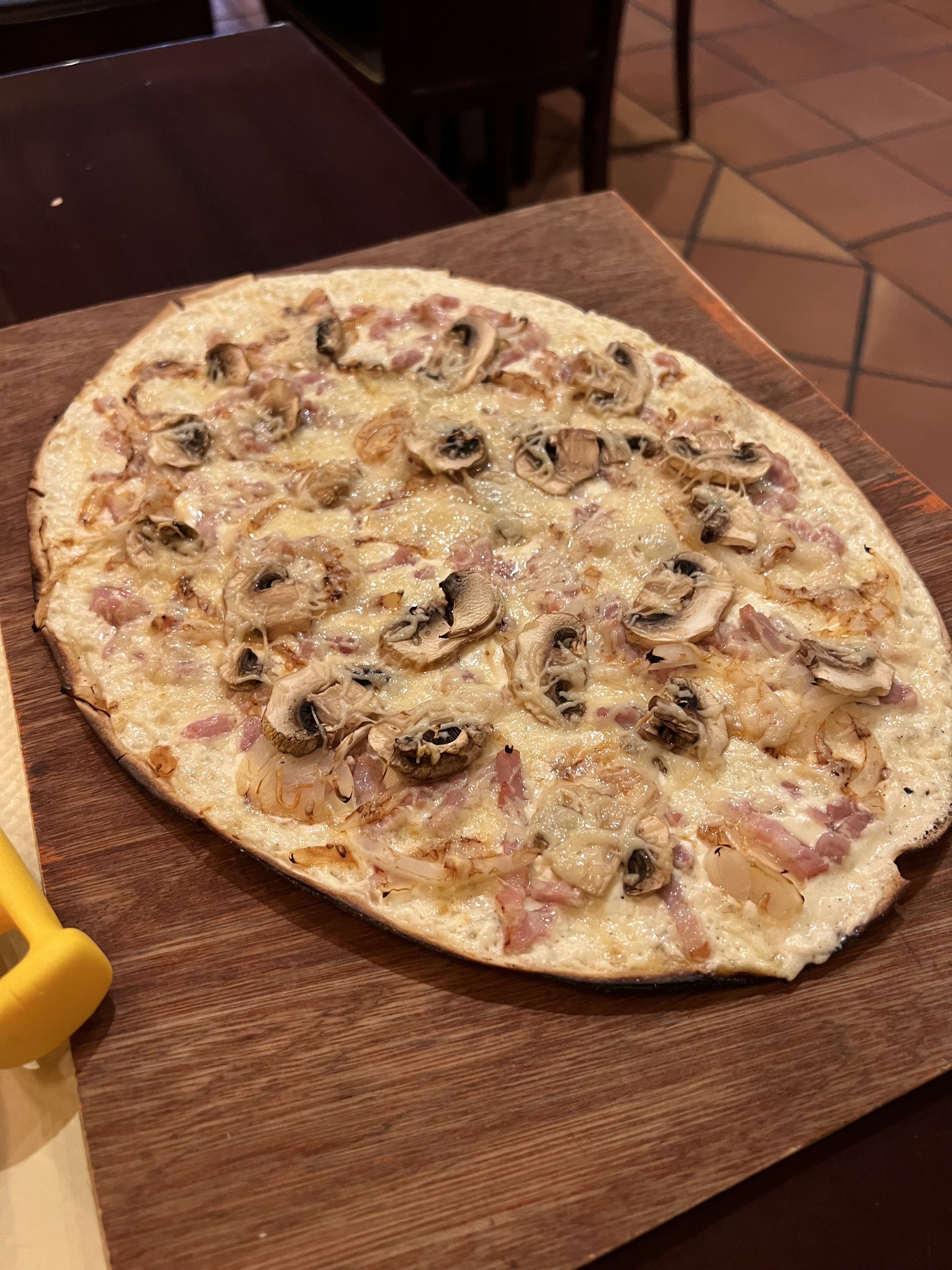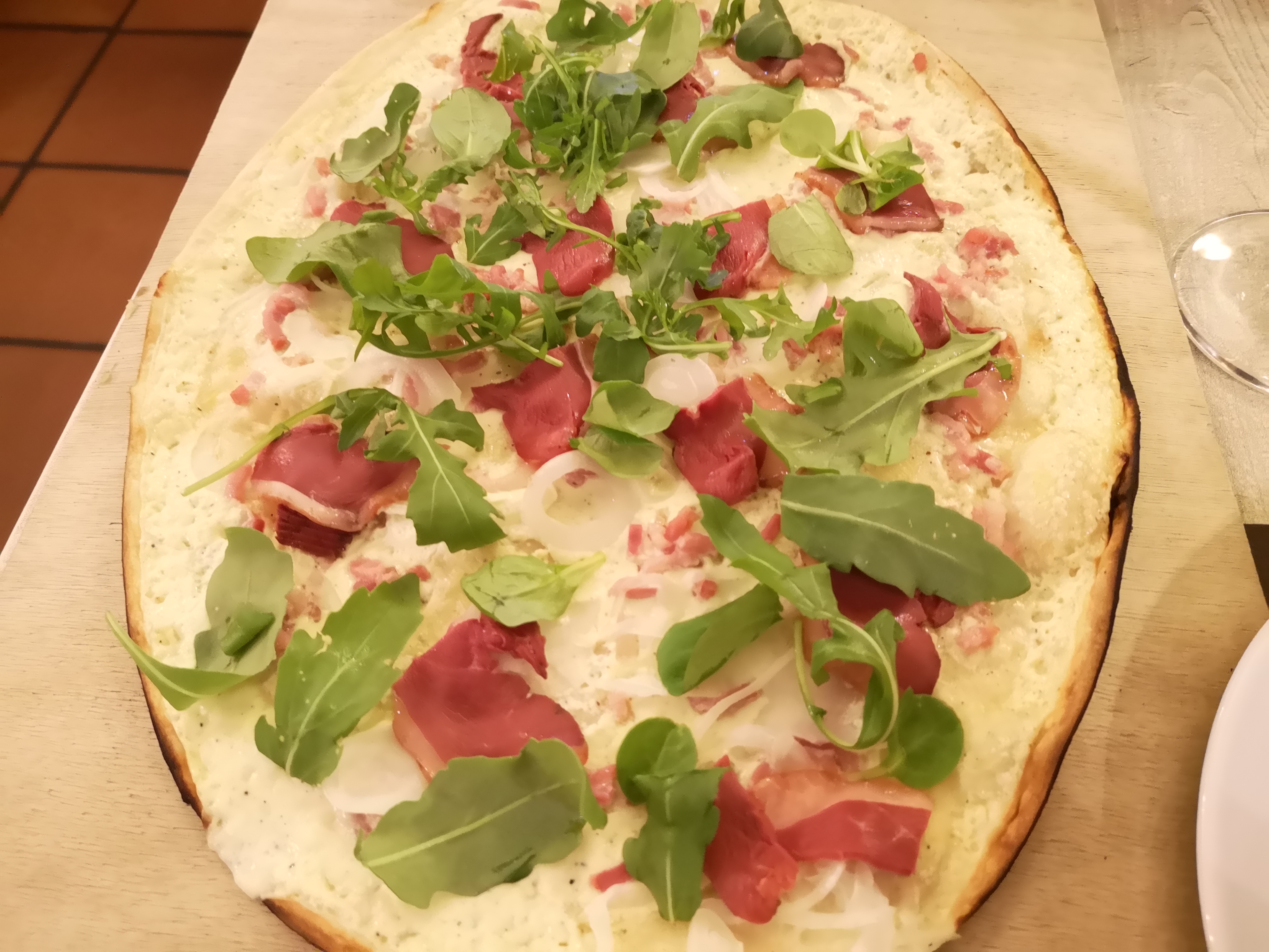 Une tuerie! Si vous voulez manger une vraie tarte flambée allez y les yeux fermés! Avec les belles petites assiettes.. vraiment comme à la maison! Accueil chaleureux, repas au top! À bientôt!