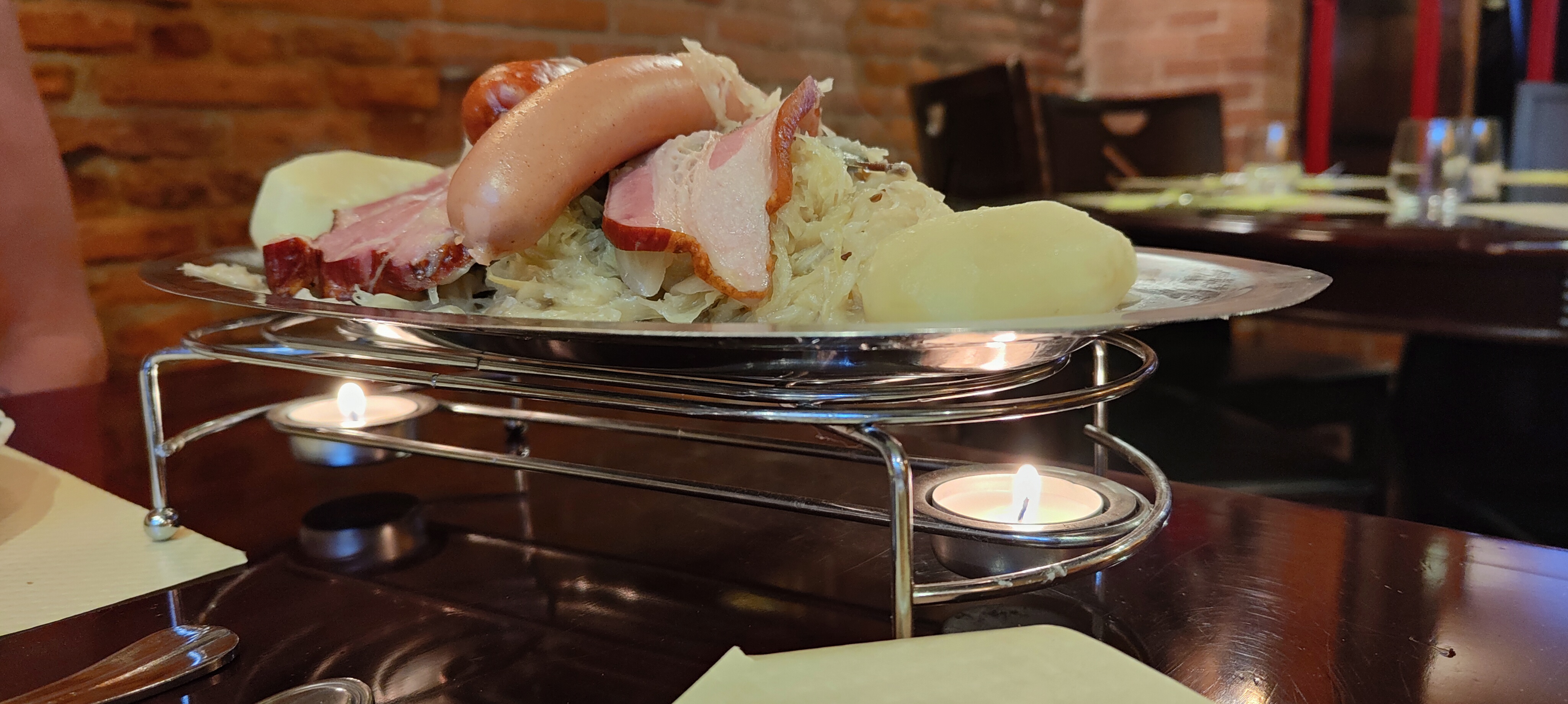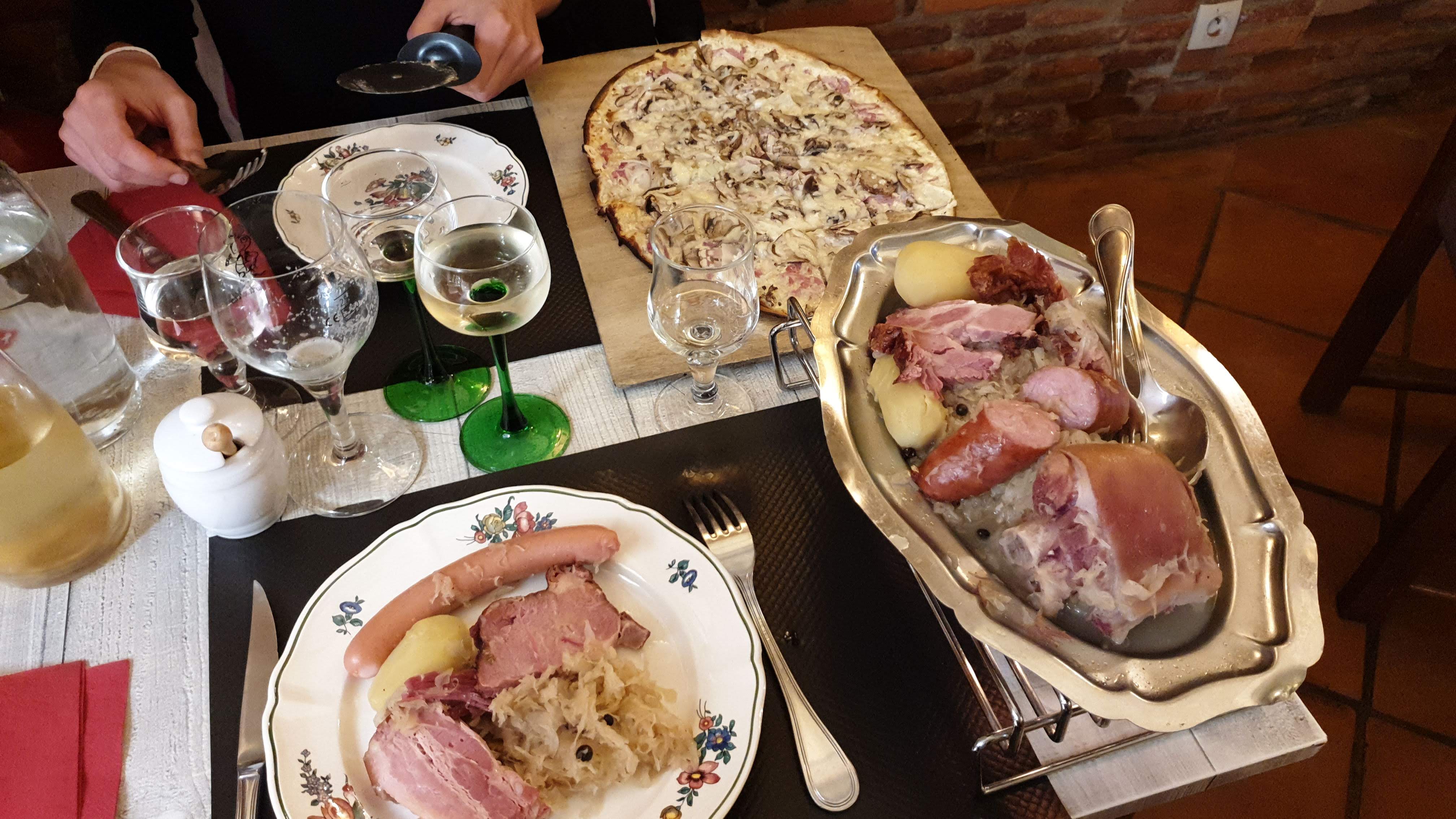Si vous voulez manger une choucroute c est ici, avec une flammekuche à tombé