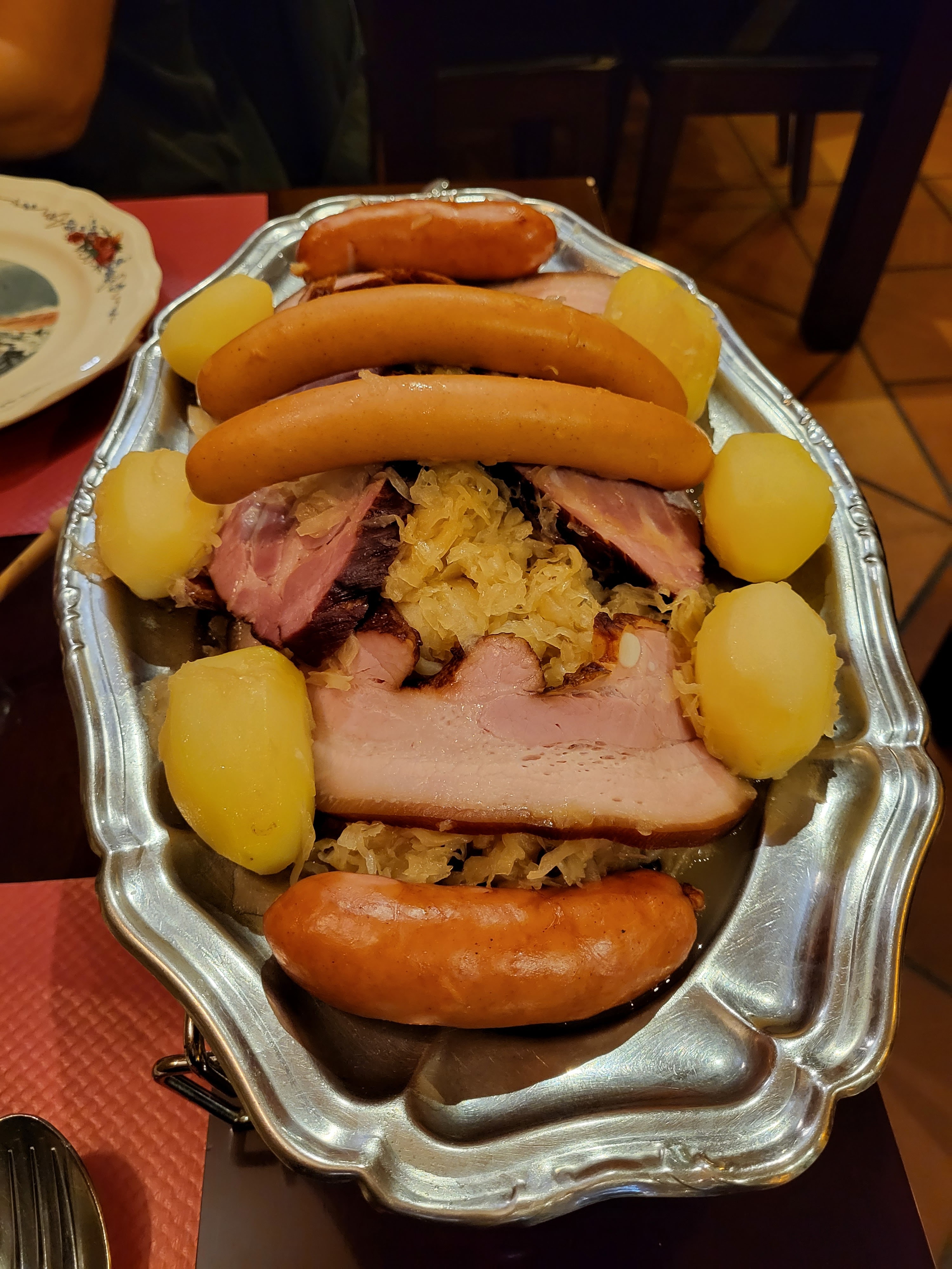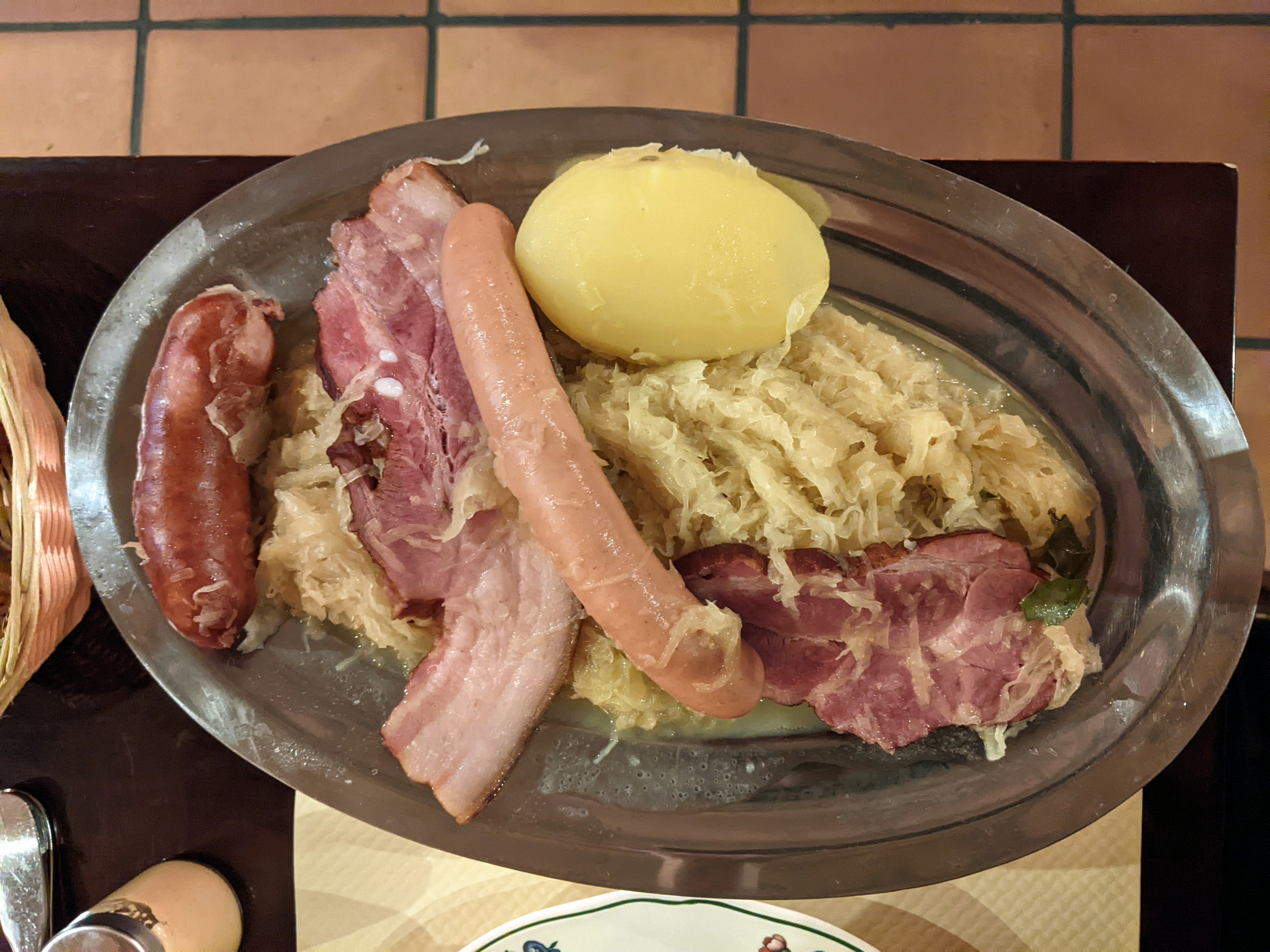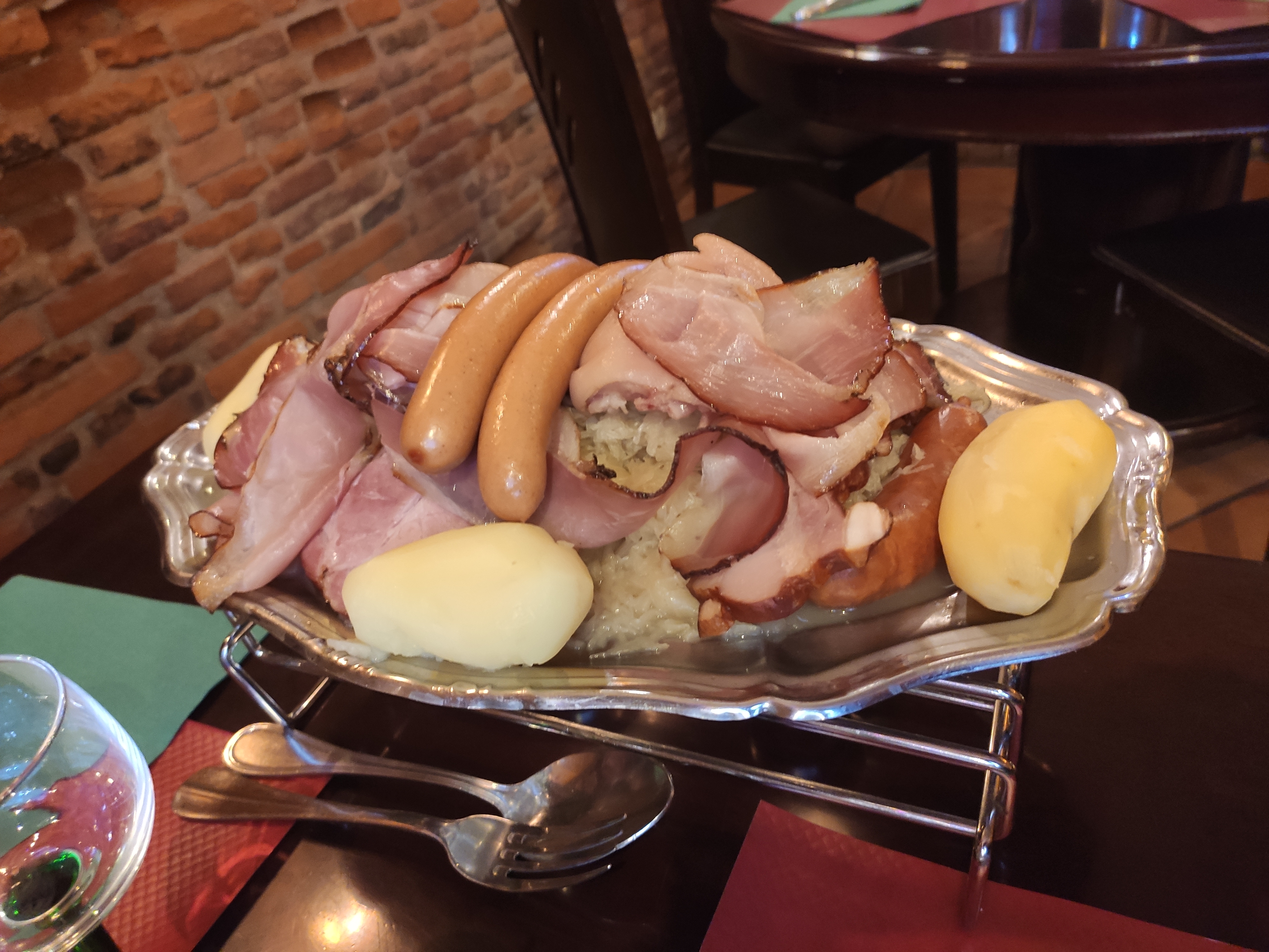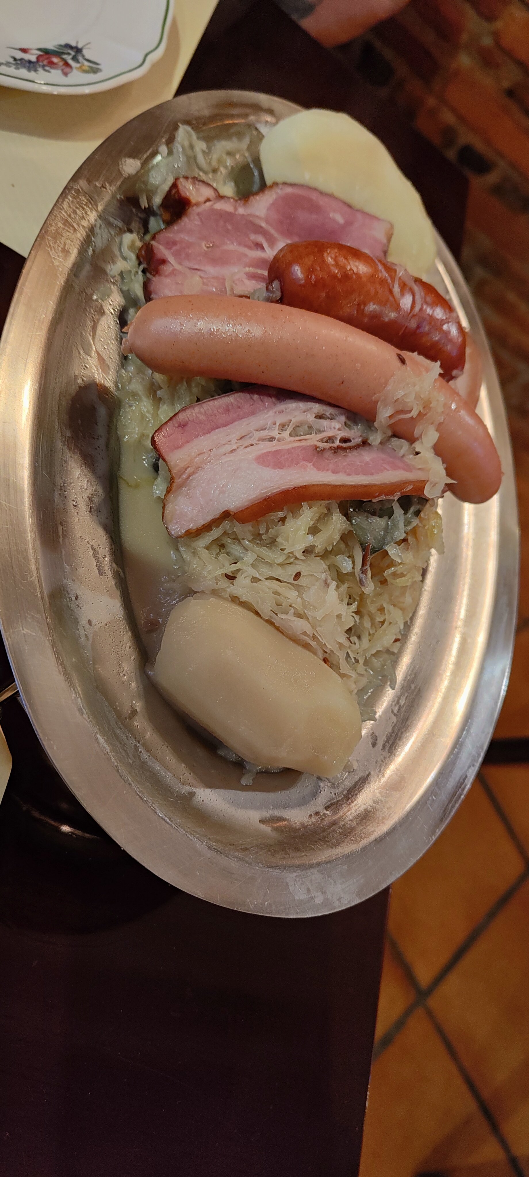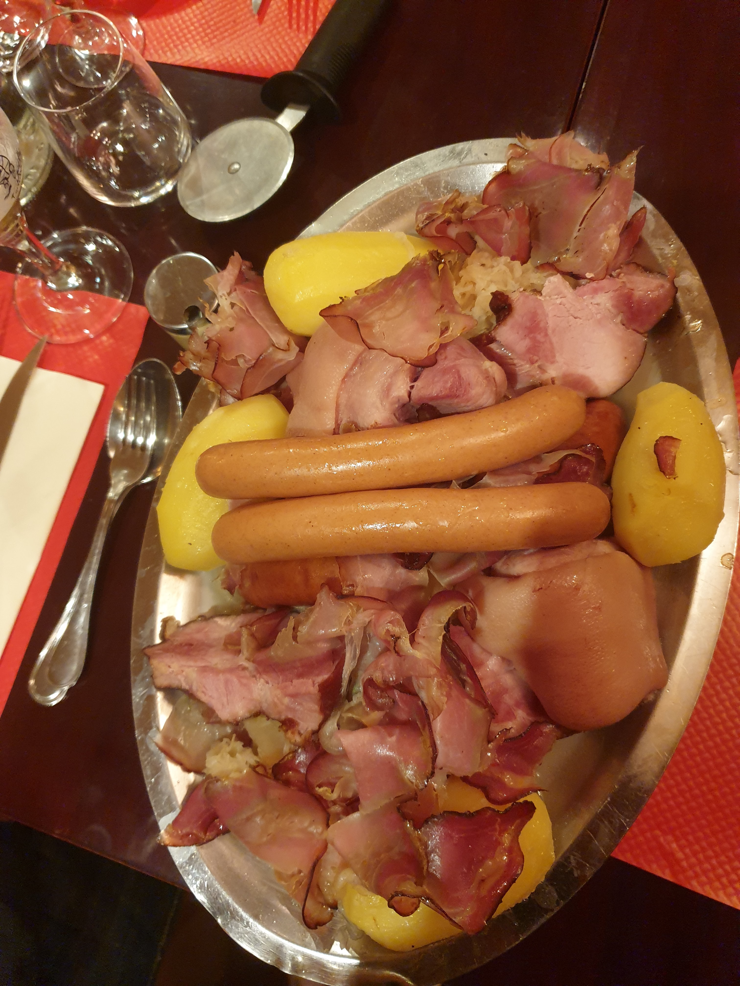 Expérience choucroute exceptionnelle pour être marié à une ALSACIENNE une choucroute comme en Alsace avec de très bon produits. On va y revenir pour goûter les flamenkuch au feu de bois.