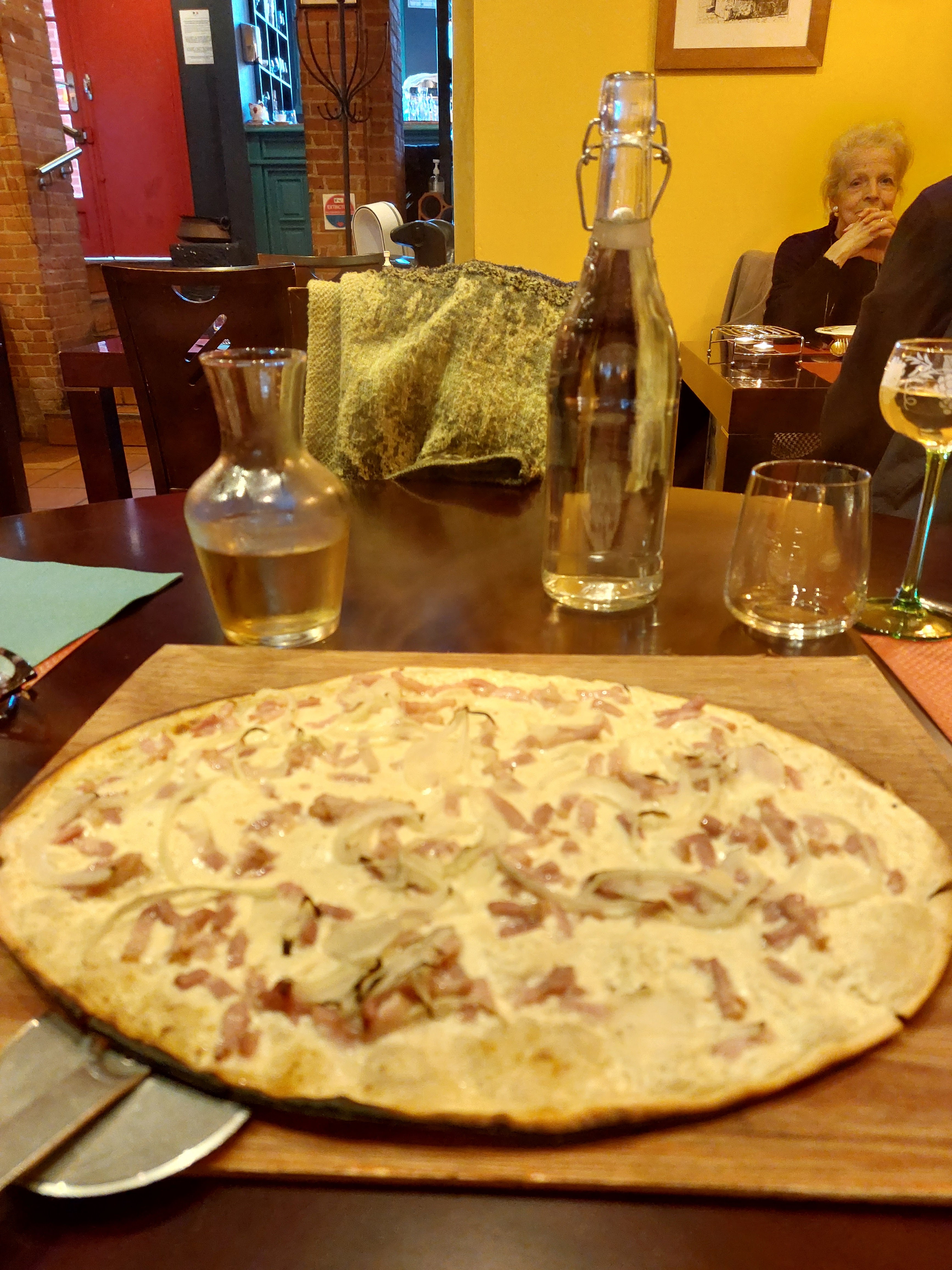 Une délicieuse découverte, des flamenküche au feu de bois divines, un lieu authentique, bref, un joli partage de culture et de saveur: Merci aux patrons