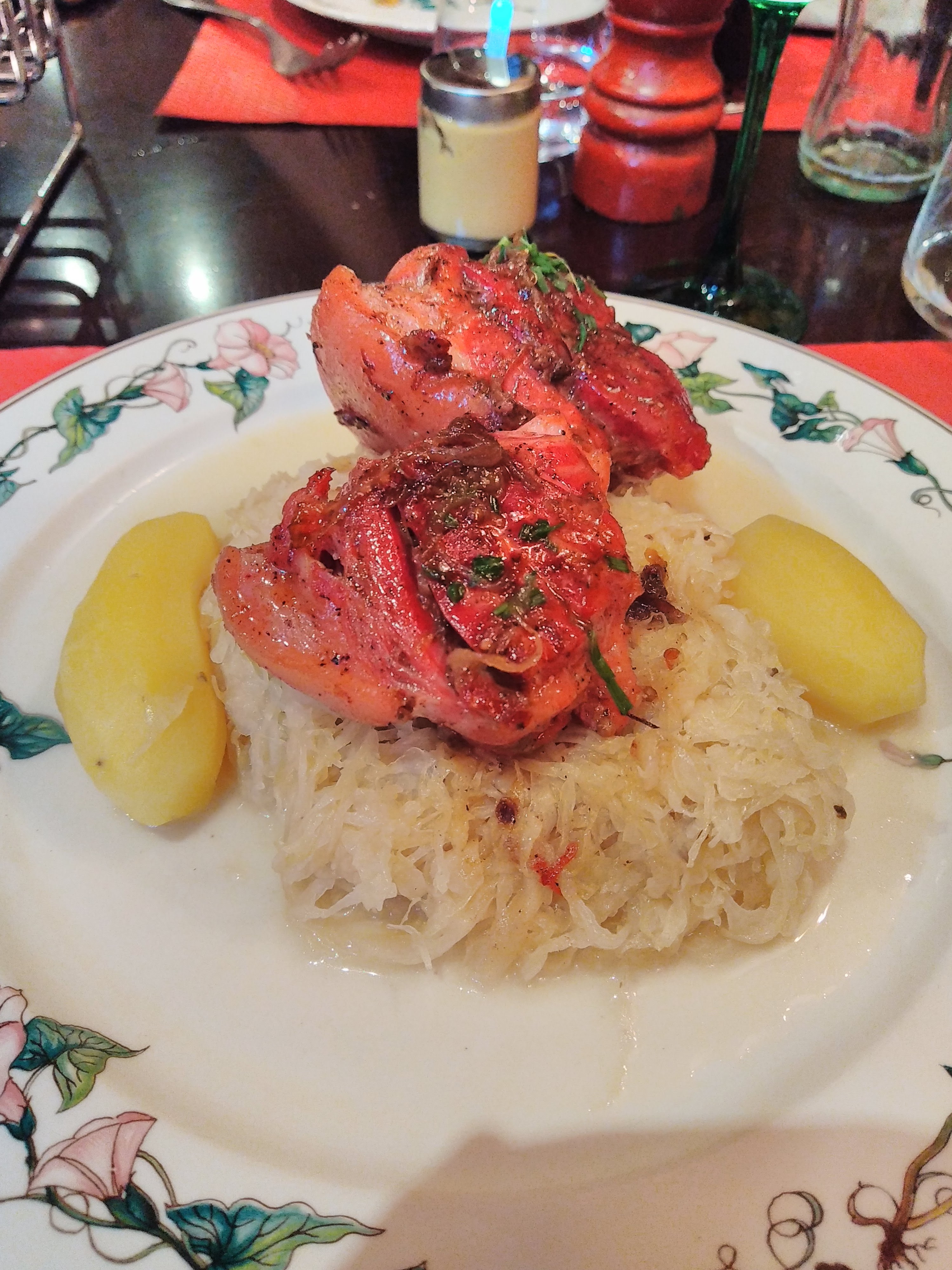 Nous avons goûté la choucroute basique qui était très bonne. Nous y reviendrons avec des amis pour essayer le baeckeoffe.