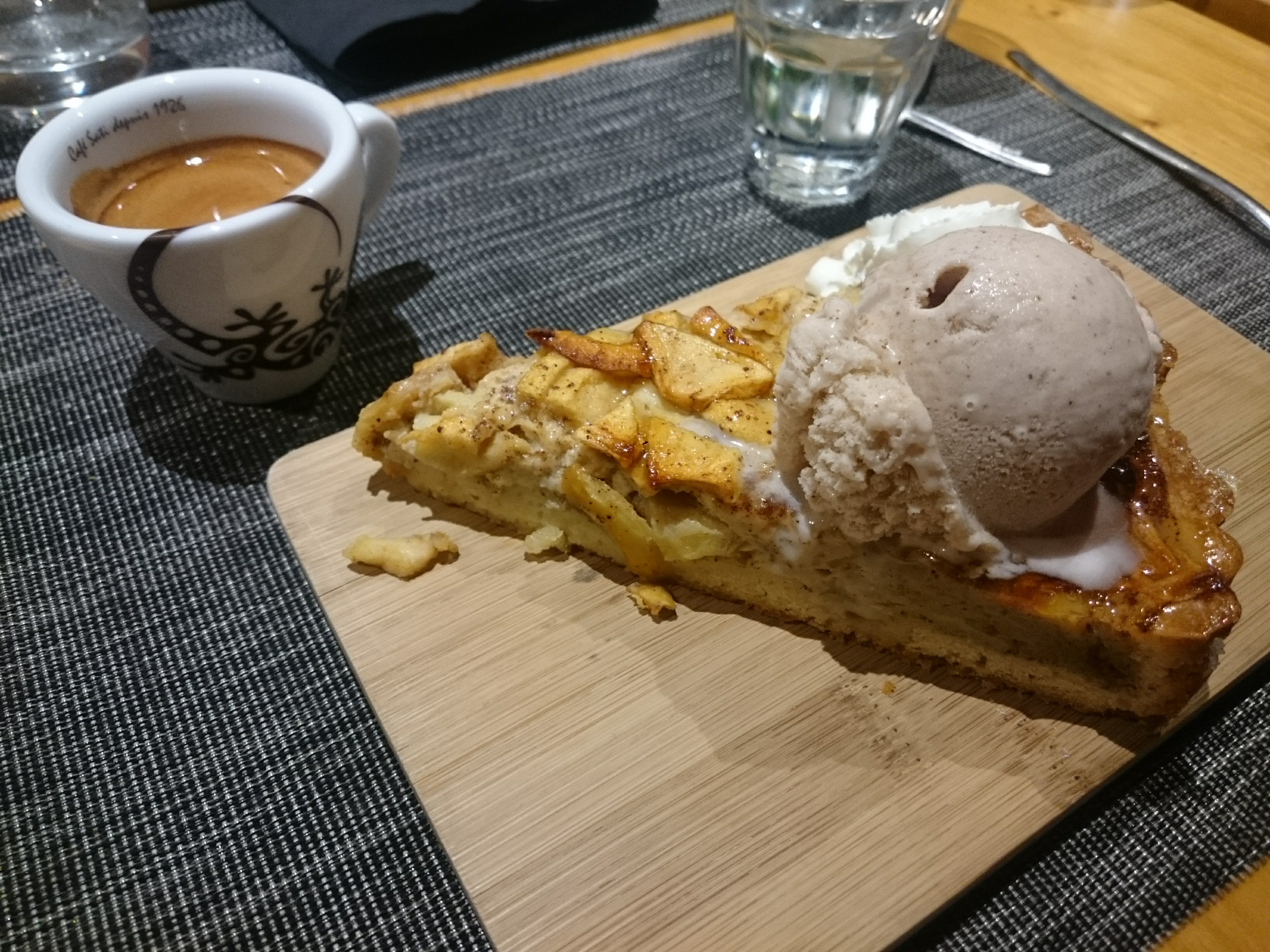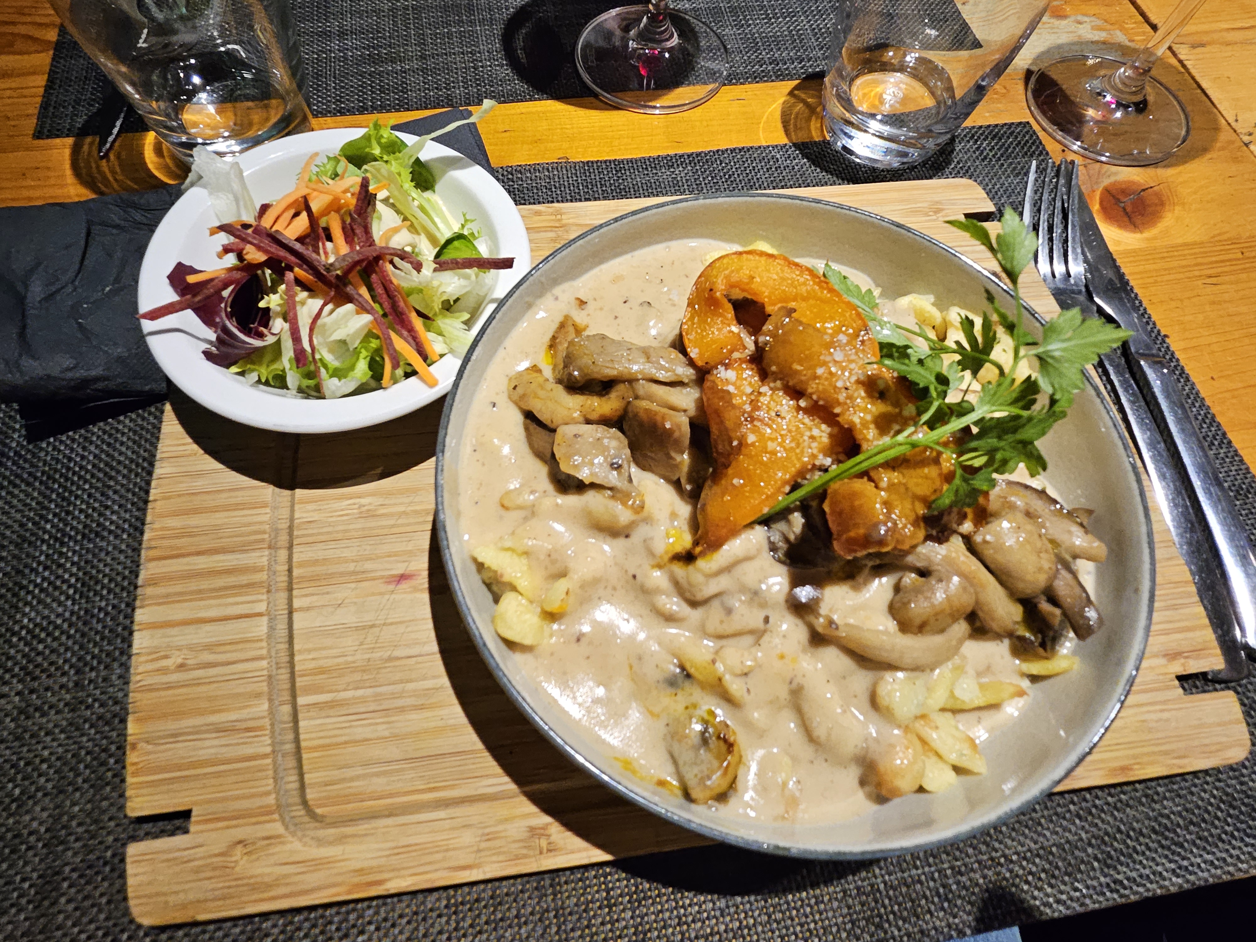 Trop contente de ce restaurant ! De passage dans la région, nous sommes ravis à tous les points de vue. Serveuses adorables et chaleureuses avec une bonne énergie ! Plats beaux, copieux et bons. Beaucoup de choix dont des plats originaux et aussi de la région. Rapport qualité/prix bien sympa je trouve. Jai beaucoup aimé la tarte aux pommes maison. Très généreuse et pleine de goûts. Ça change pour une tarte aux pommes. Le plat végétarien speatzles au wok, très bon ! Et le burger de rostis.. Mon mari s'est regalé et c'est original encore une fois. Ambiance chalet et cosy ! Rien à dire ! Merciiii
