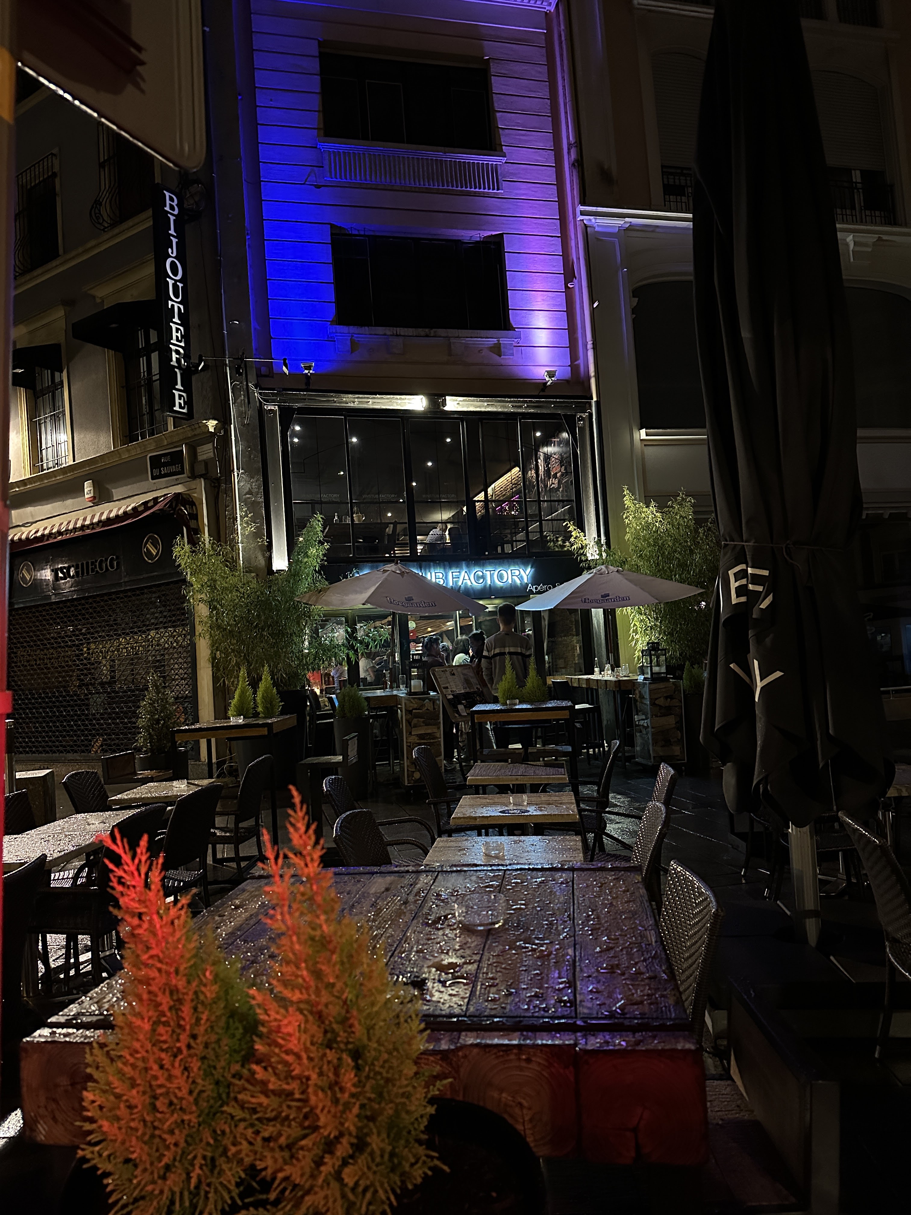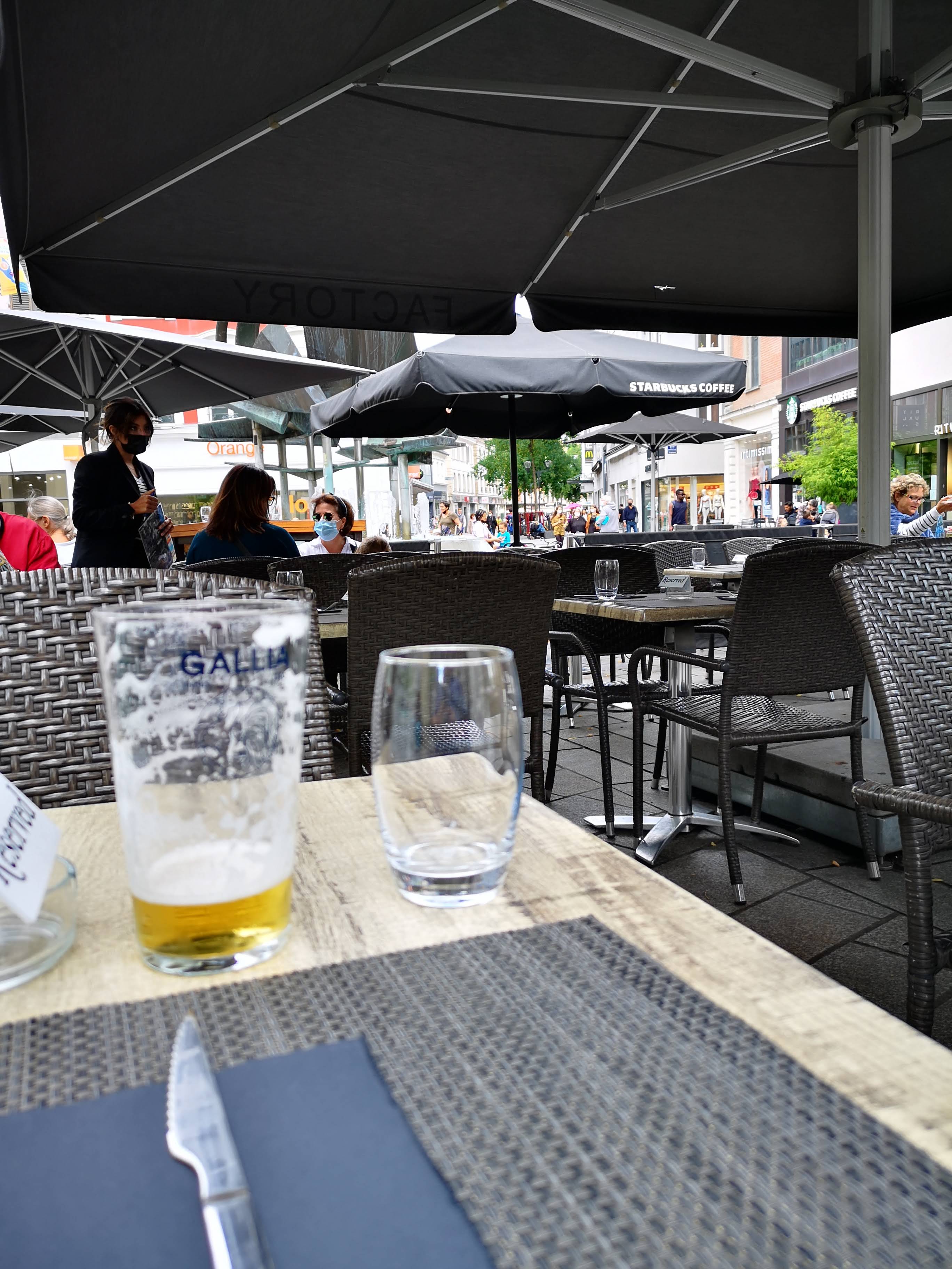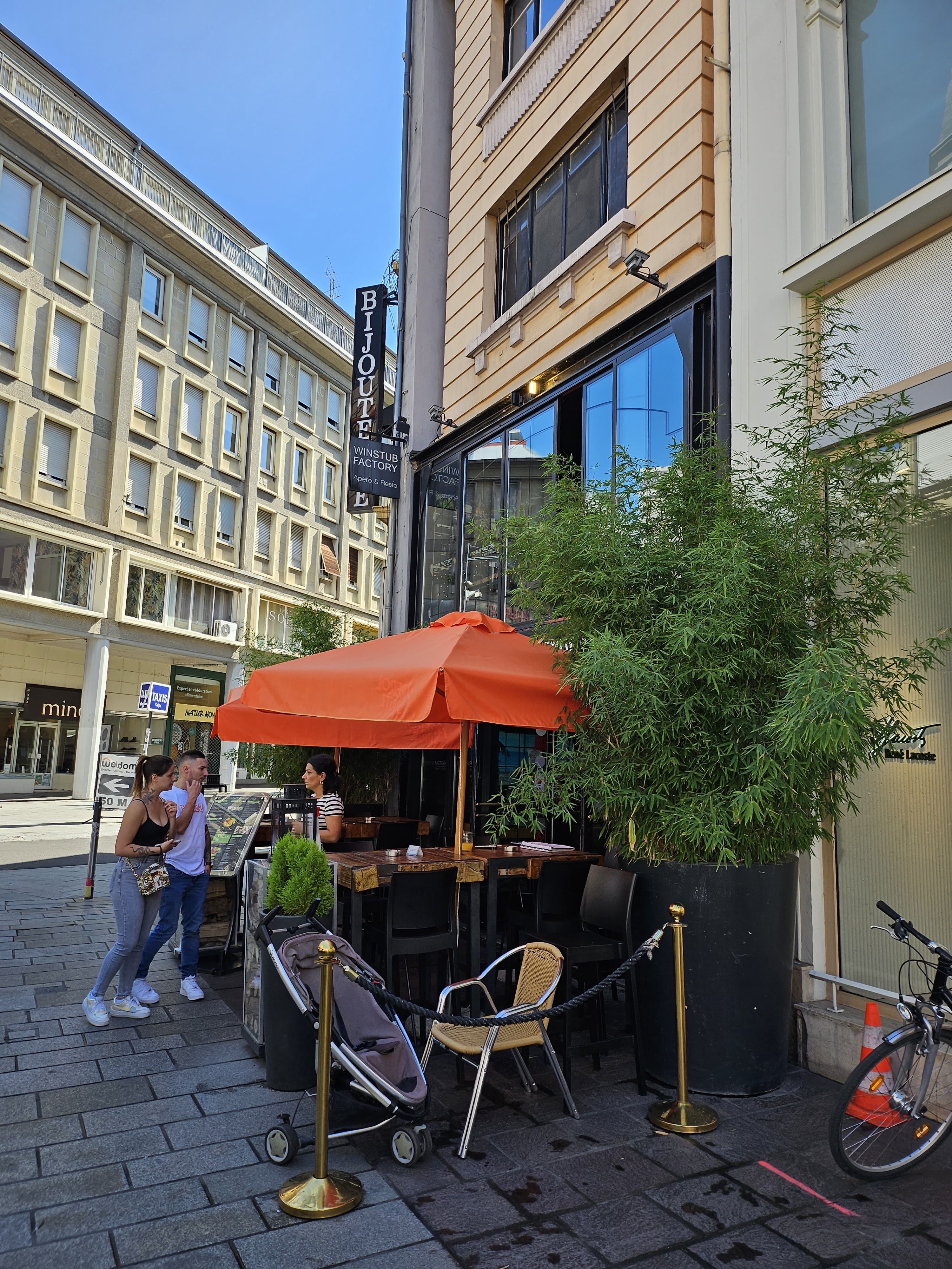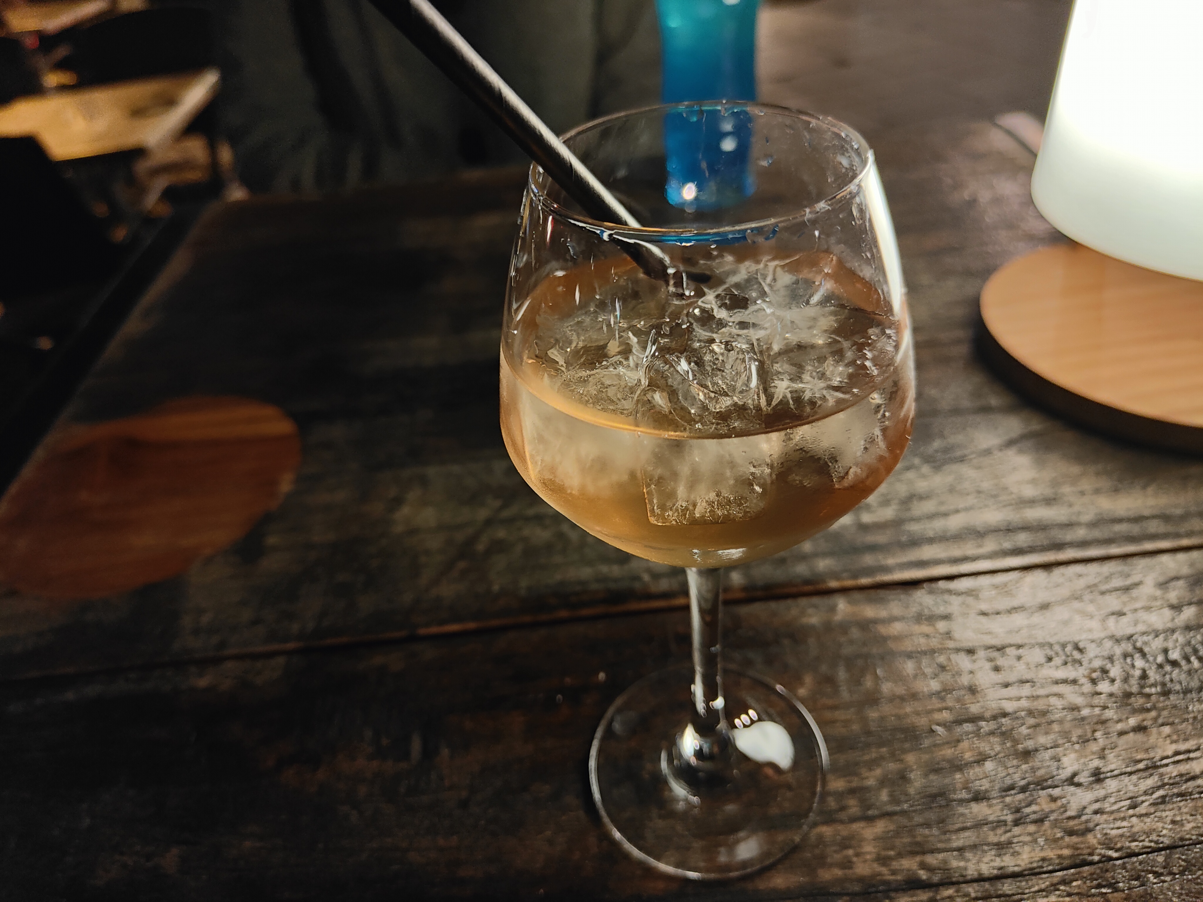 Bar situé à l'embranchement de plusieurs rues piétonnes, boire un verre en terrasse donne l'impression d'être installé sur un rond-point : passages constants de passants dont les vies ne sont visiblement pas assez palpitantes pour happer complètement leur attention sur eux-mêmes. Amateurs de cocktails sans alcool passez votre chemin on m'a servi un verre de jus d'orange décoré d'une tranche de ce même fruit en guise de cocktail qui plus est au prix d'un véritable cocktail en terrasse parisienne. Attente assez longue mais personnel sympathique.