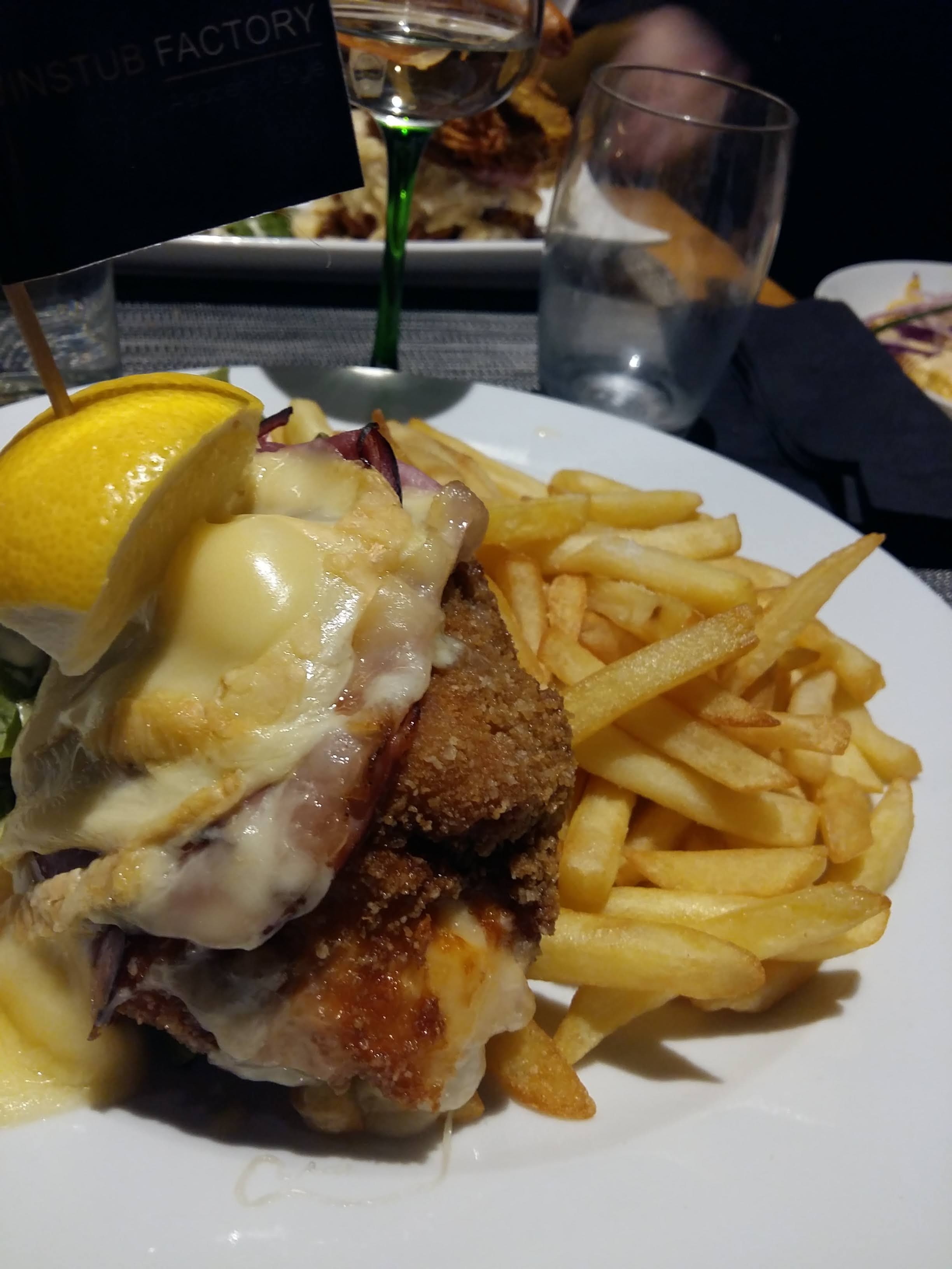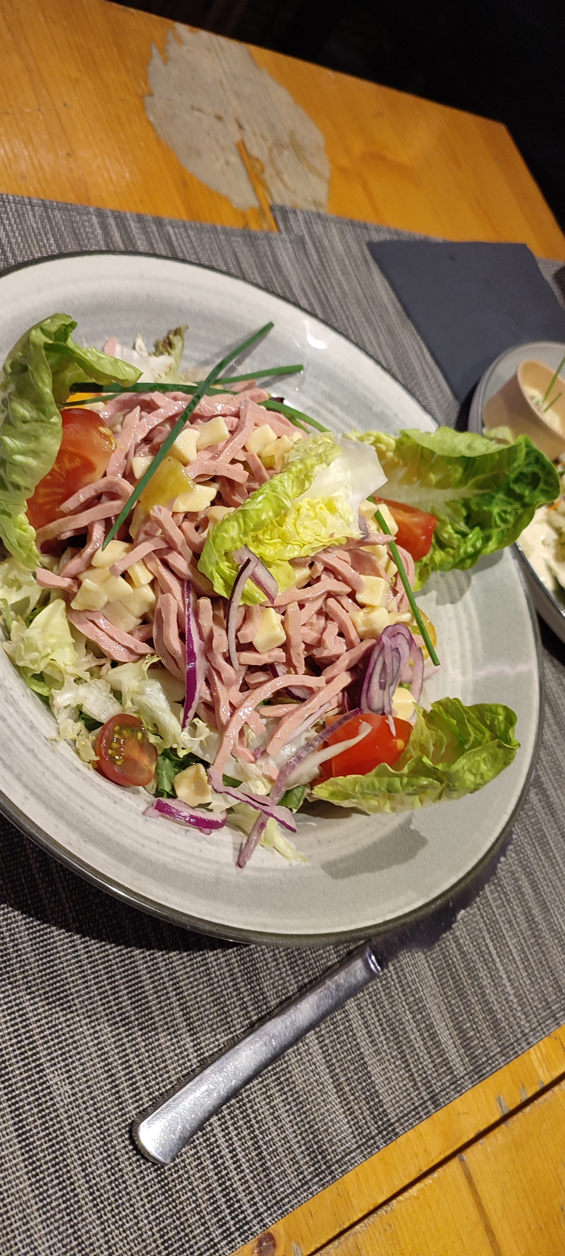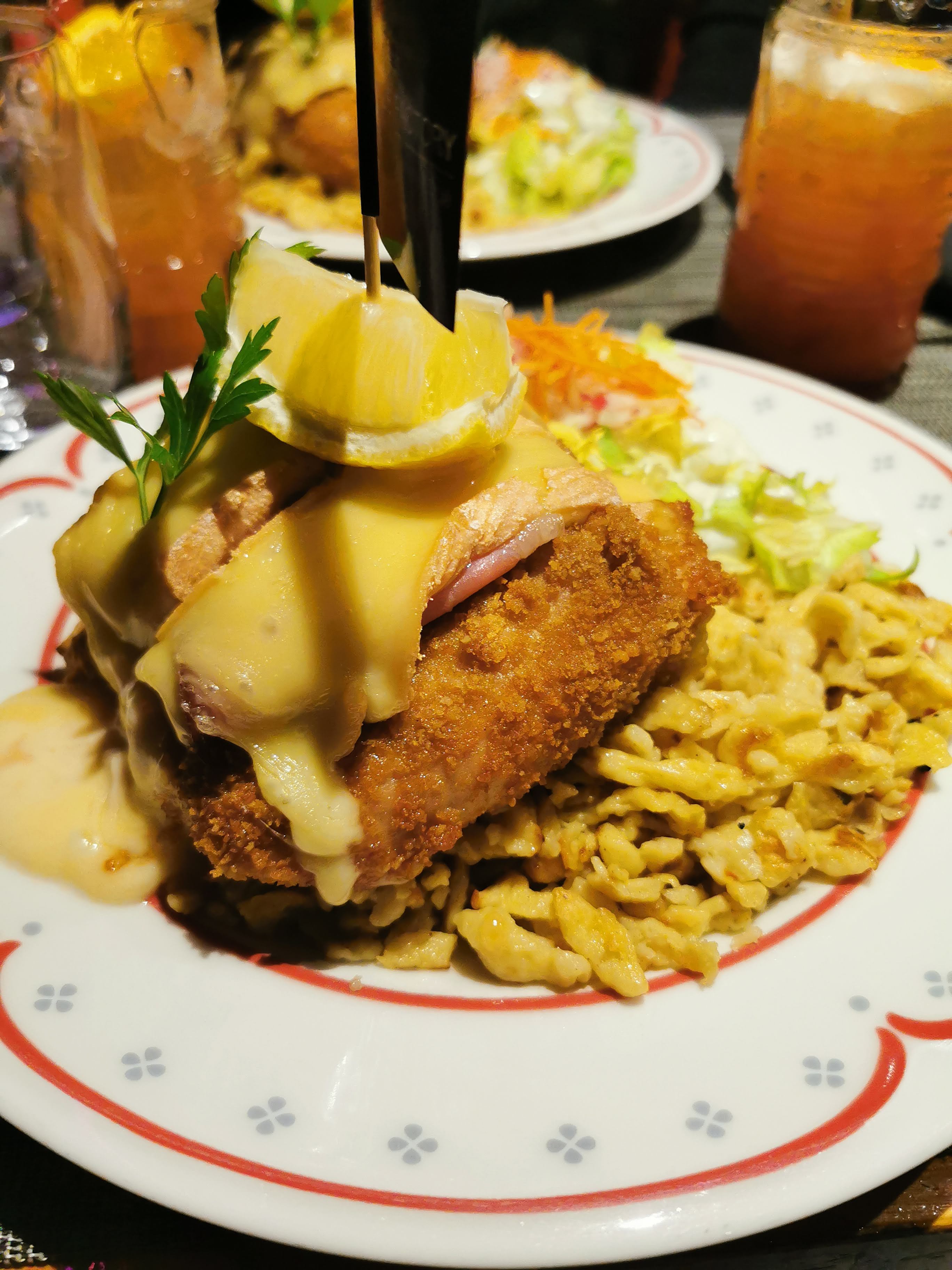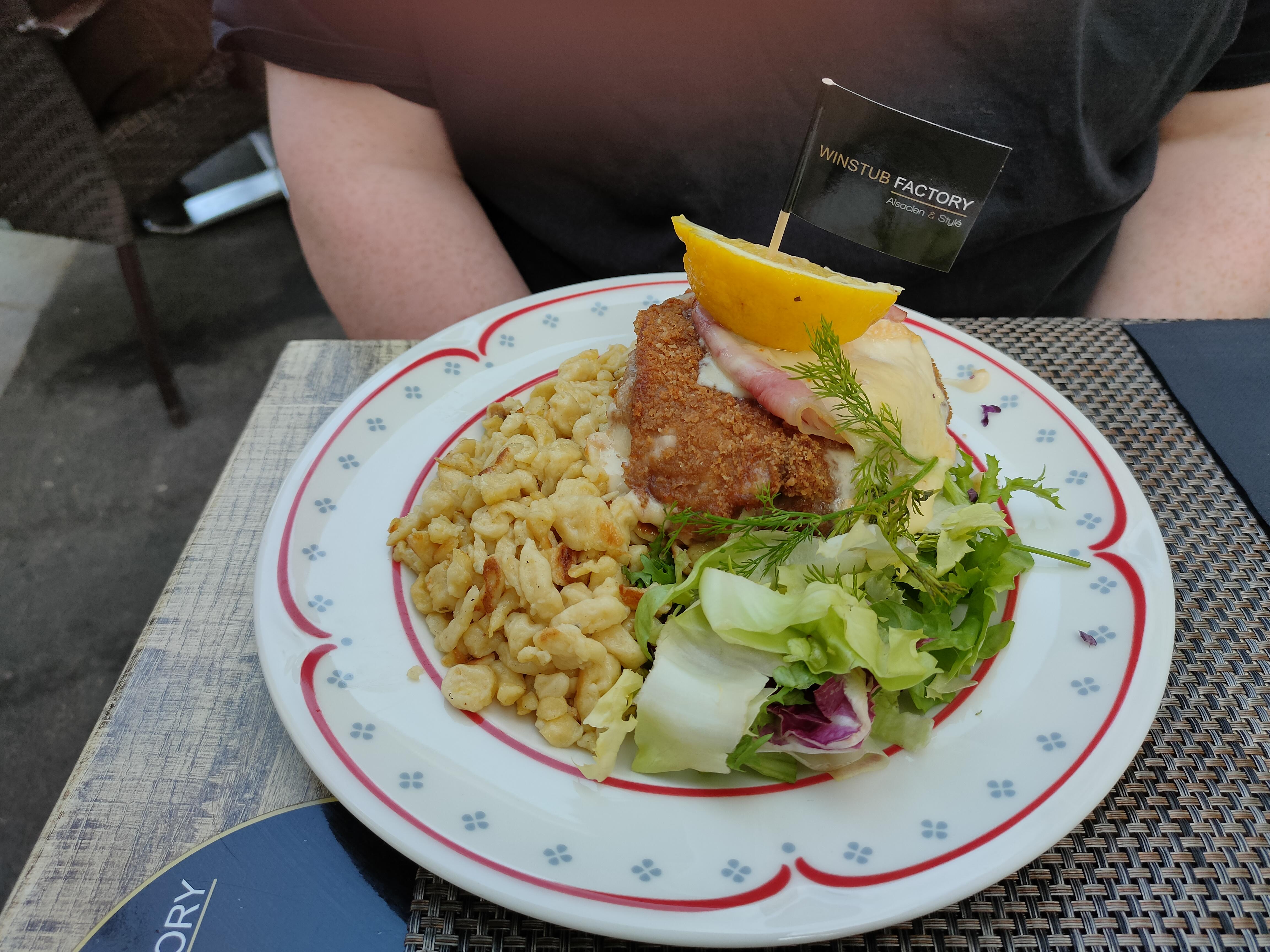 Très bon! Choix des plats variés Cordon bleu suprême très copieux, frites bonnes, assiette bien garnie Spetzeles bonnes, copieuses