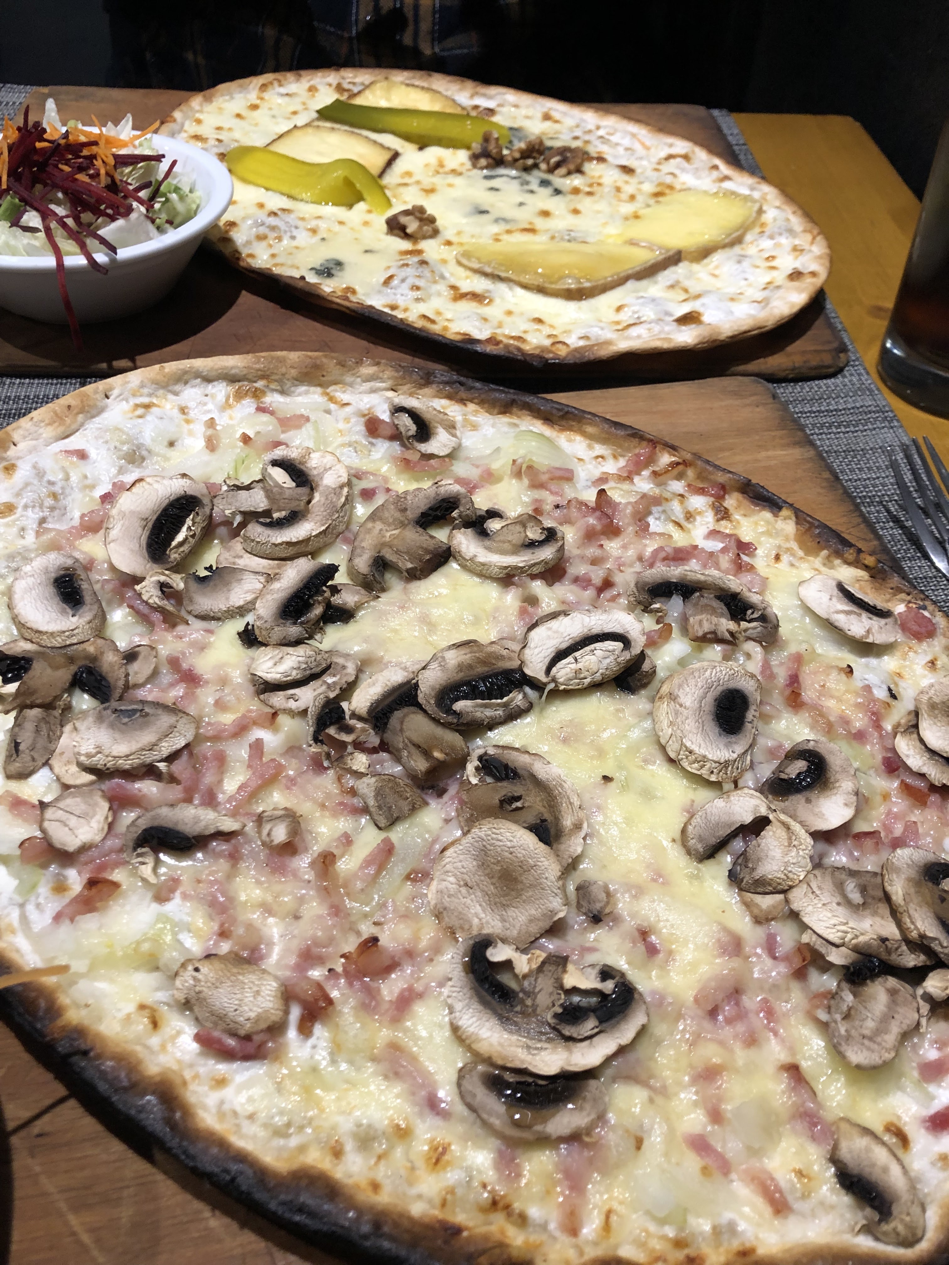 Une ambiance comme on les aime, chaleureuse et conviviale. Des jolies serveuses professionnelles assurent le service dans le rythme. Les flam's sont légères et suffisantes pour remplir agréablement l'estomac. Jolis desserts.