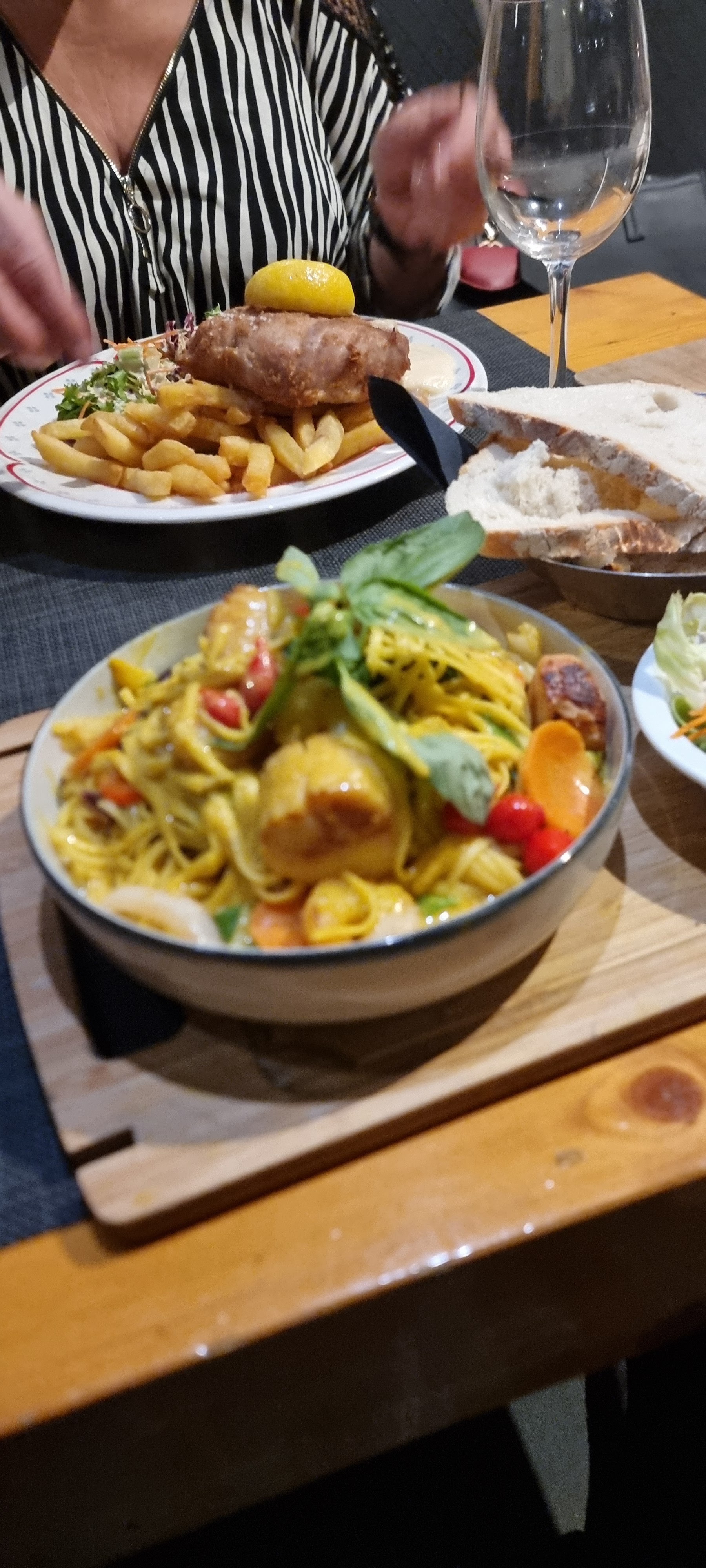 Nous avons déjeuné et dîné le même jour et ce fut un régal. Pâtes alsaciennes au curry avec St Jacques et gambas et légumes croquants ainsi que les tartes flambées. Service et accueil très sympathique. Merci et bravo à toute l'équipe !