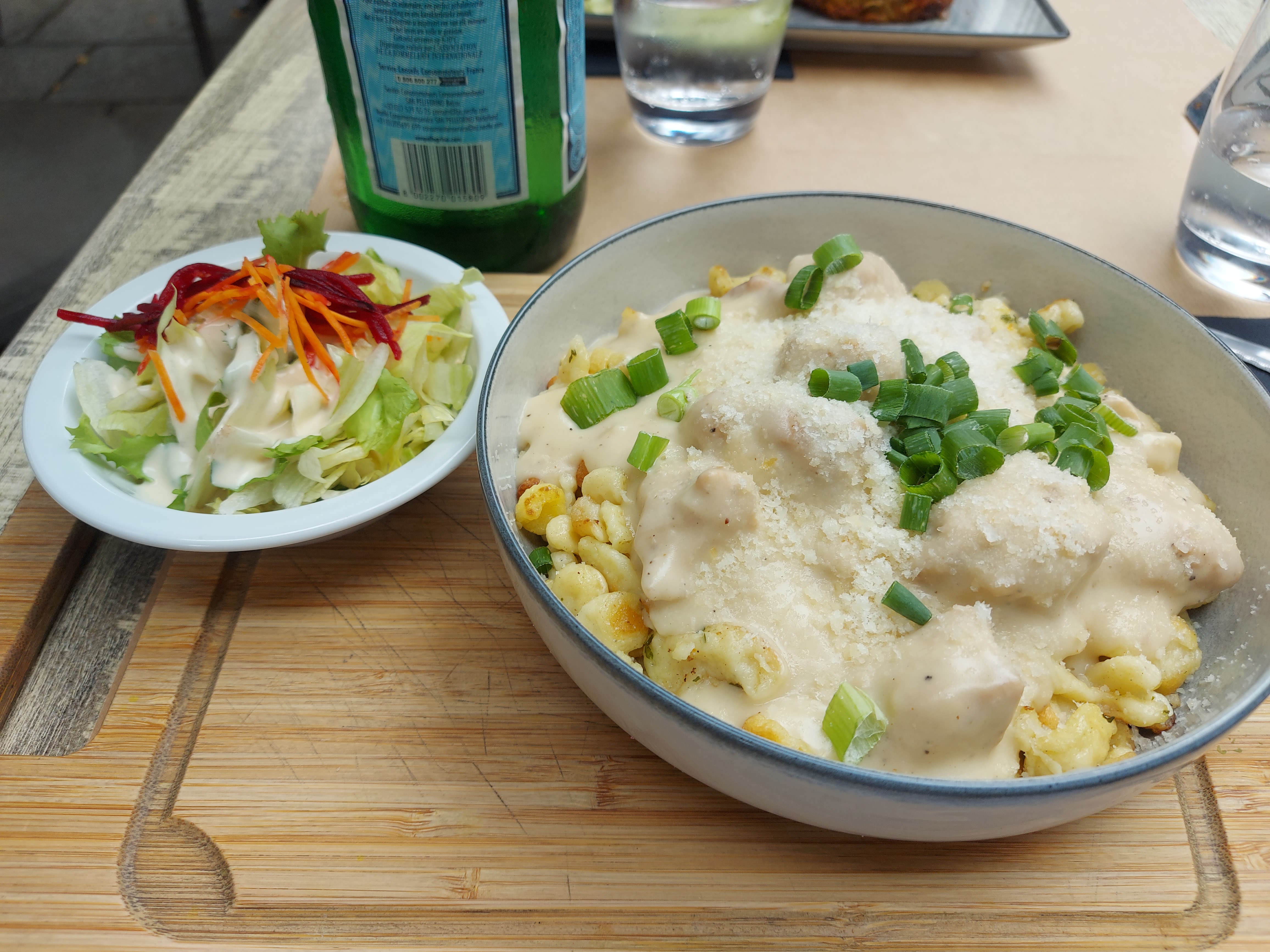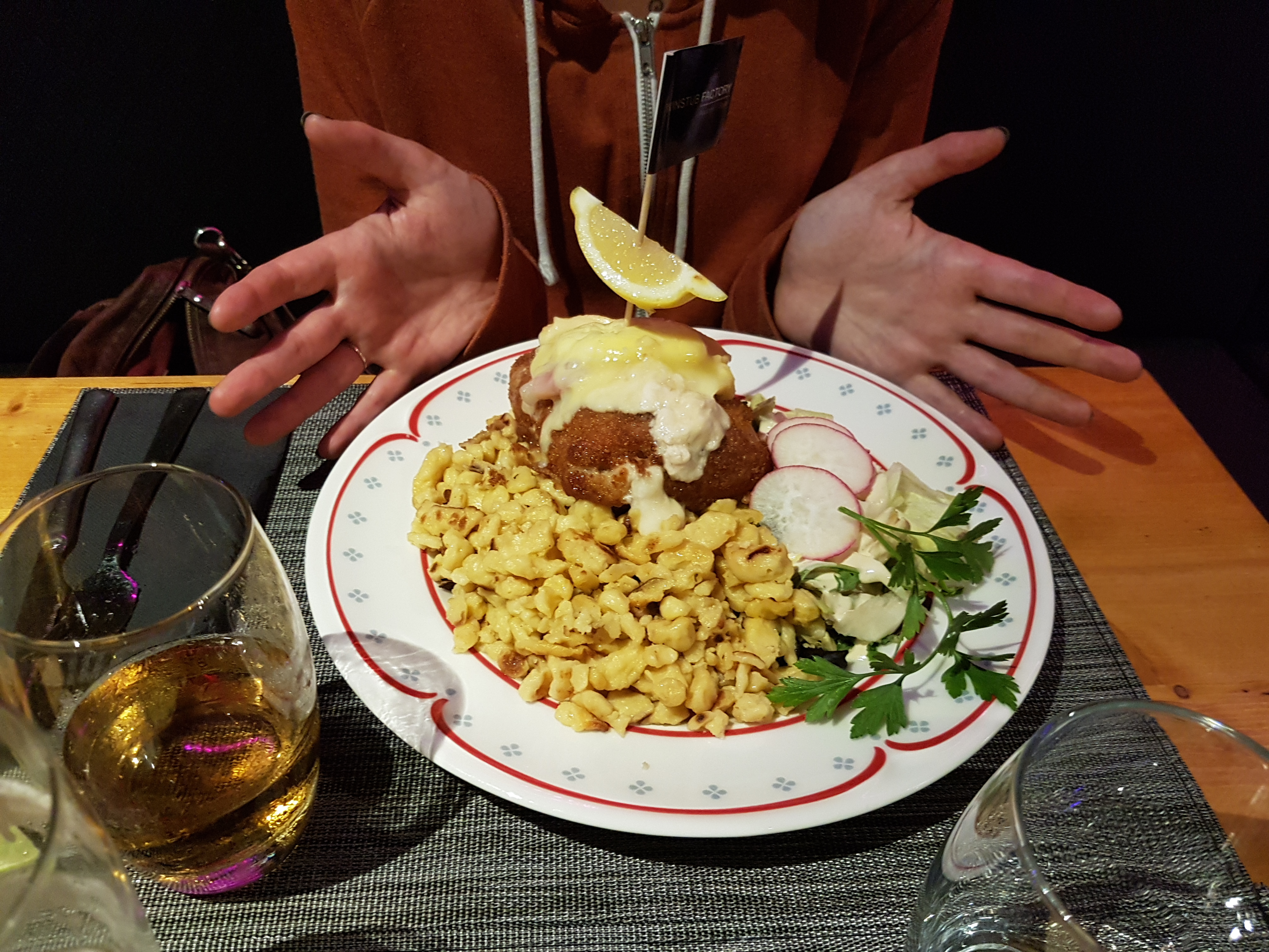 Endroit très sympa pour une soirée détente entre amis. Je crois que je n'ai pas eu de chance avec mon suprême spatzele beaucoup trop salé et très riche en maggi ou son équivalent de bouillon. Les autres assiettes avaient l'air bonnes. Le service est très sympathique et efficace. Le rapport qualité prix correct. Il faudra que je tente à nouveau.