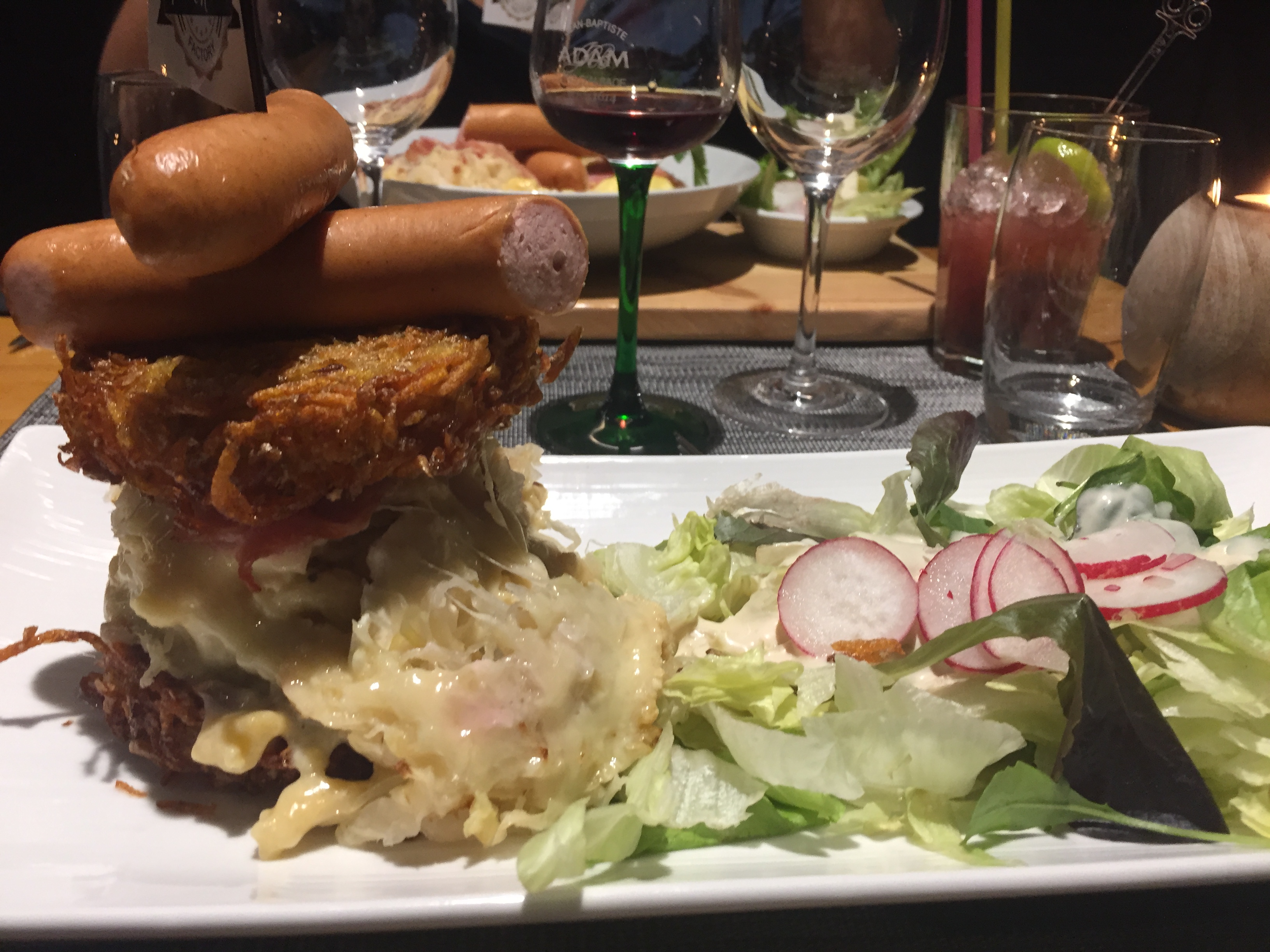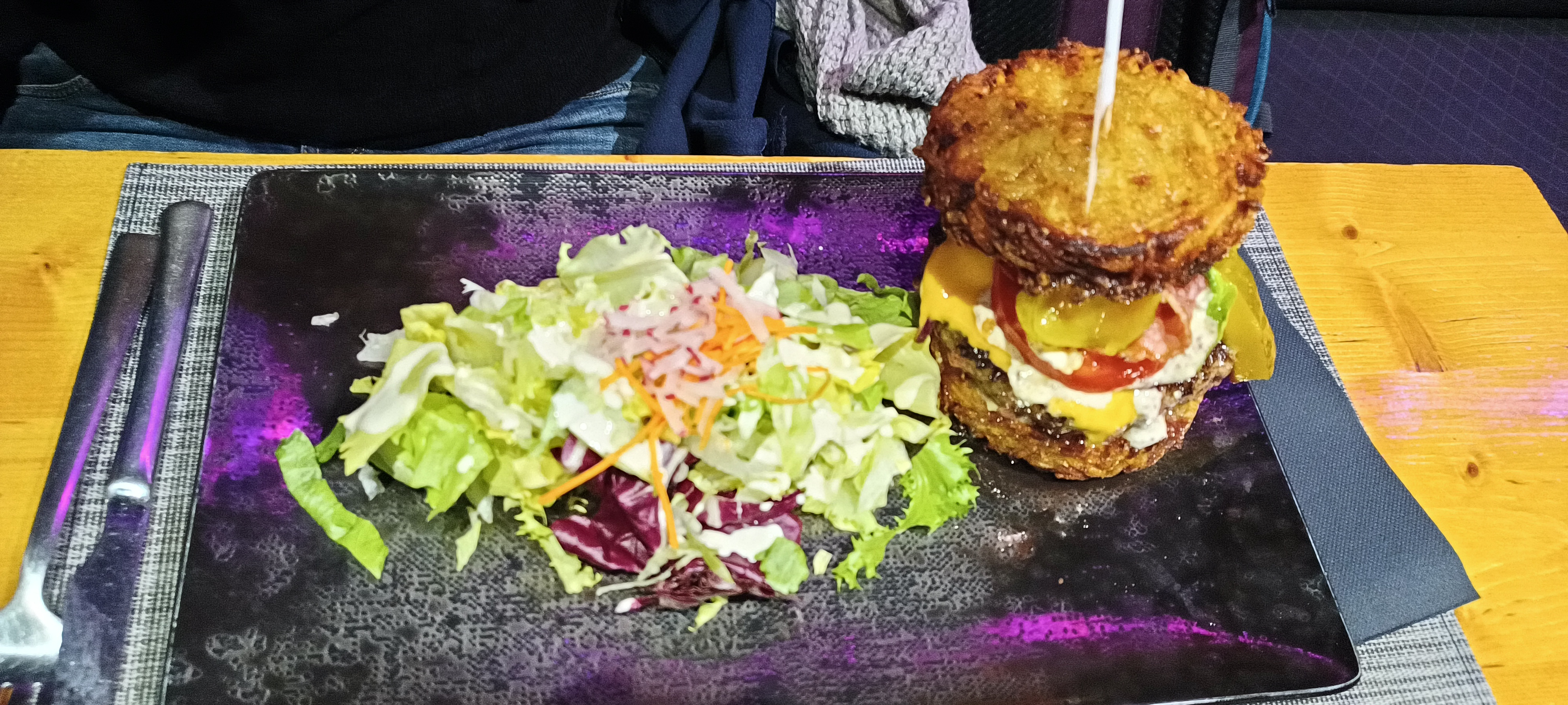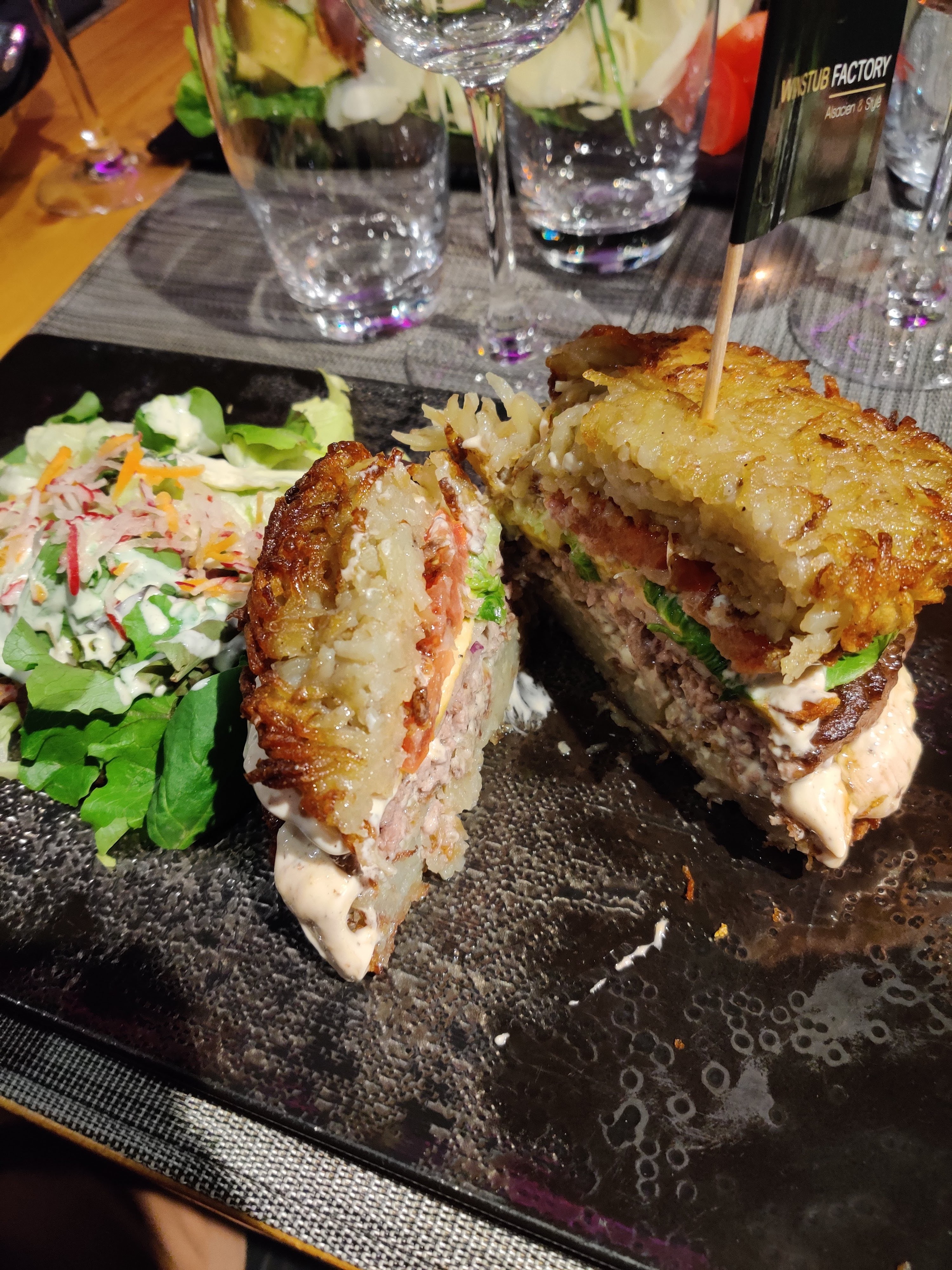 Bonjour les amis je suis allé dans ce Winstub car le Winstub m'a interpellé 🙂 je me suis installé puis passer commande pas mal de choix tartes flambé salade viande burger pâte et bien d'autres pour ma par j'ai pris un burger roestis bacon accompagné de frites je me suis régalé bien avoir l'estomac vide car assez consistant mais particulièrement bon je ne peux que vous le conseiller