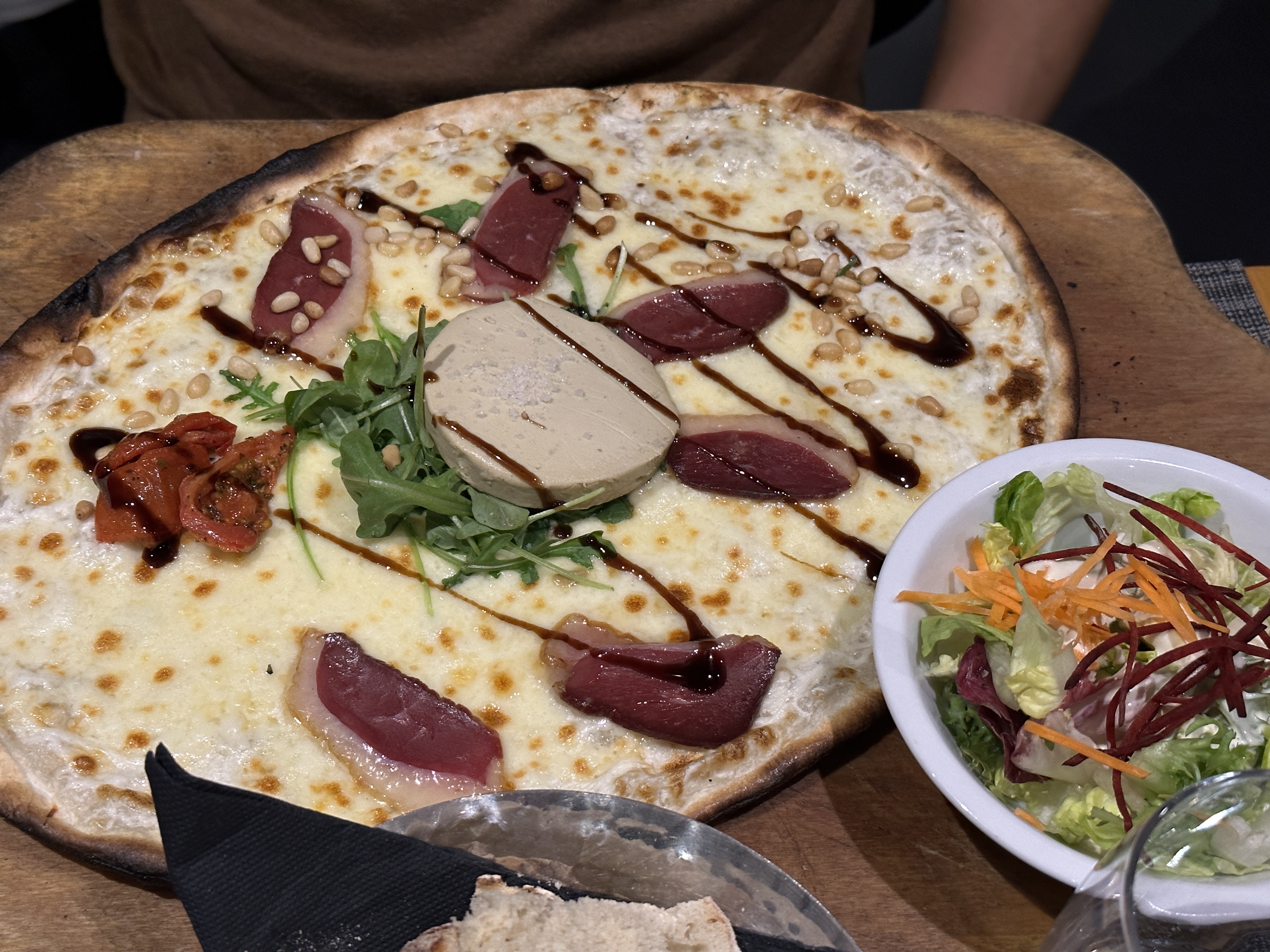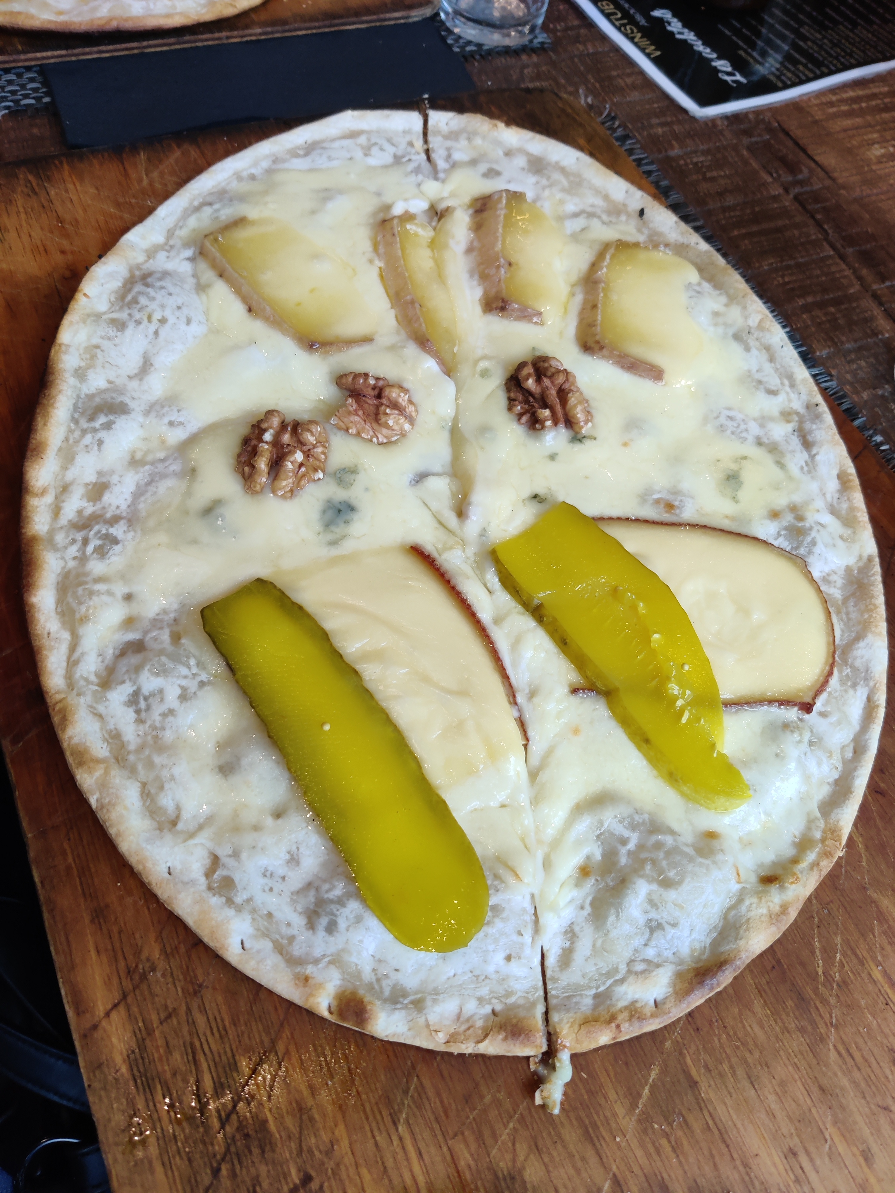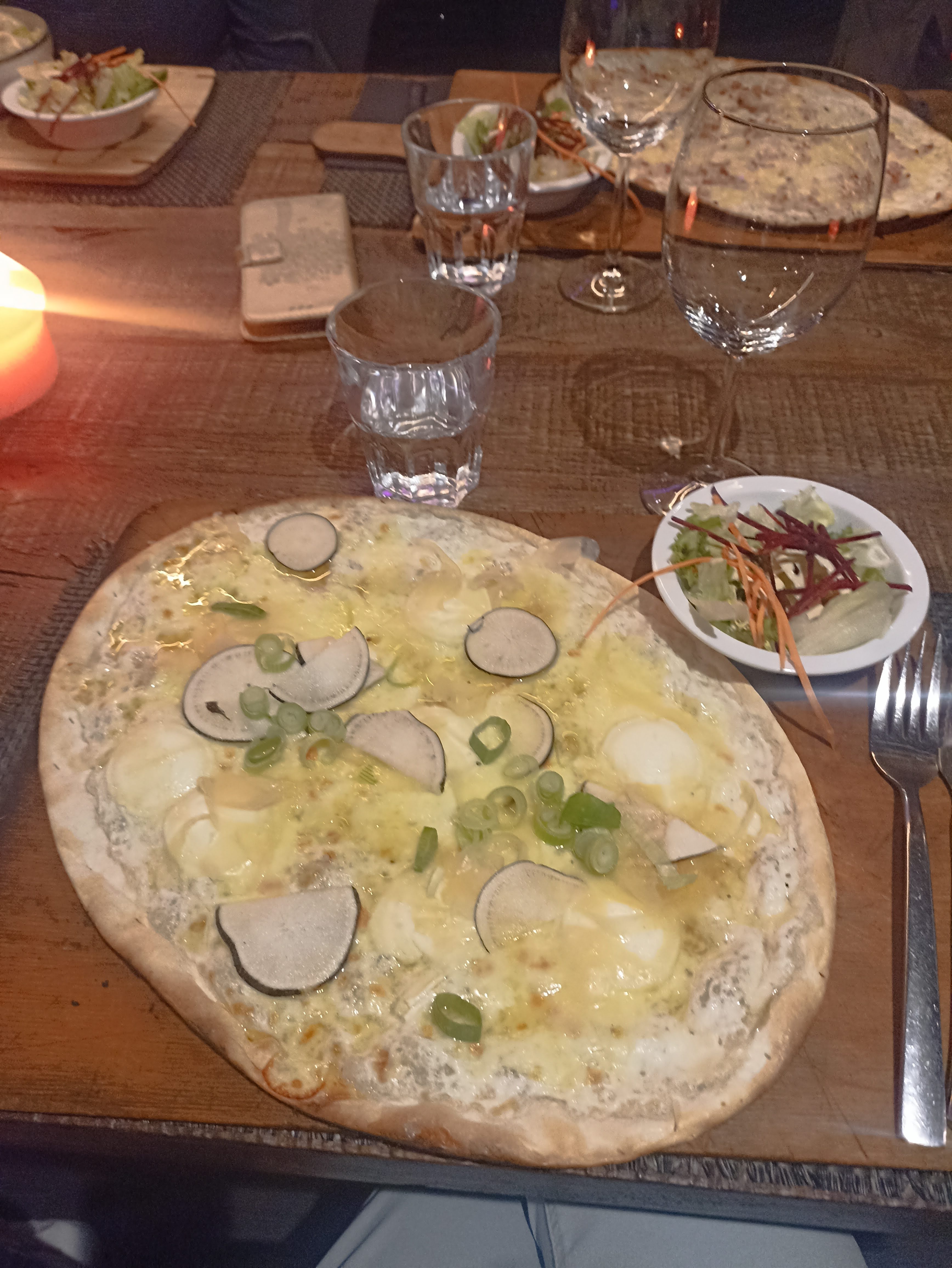 Accueil chaleureux, dynamique et séduisant. Tarte flambée périgourdine incroyablement délicieuse ! Un régal ! Juste la petite salade d'accompagnement qui avait beaucoup trop de sauce (personne n'a dit qu'il est facile de doser..). Belle expérience, je reviendrai !