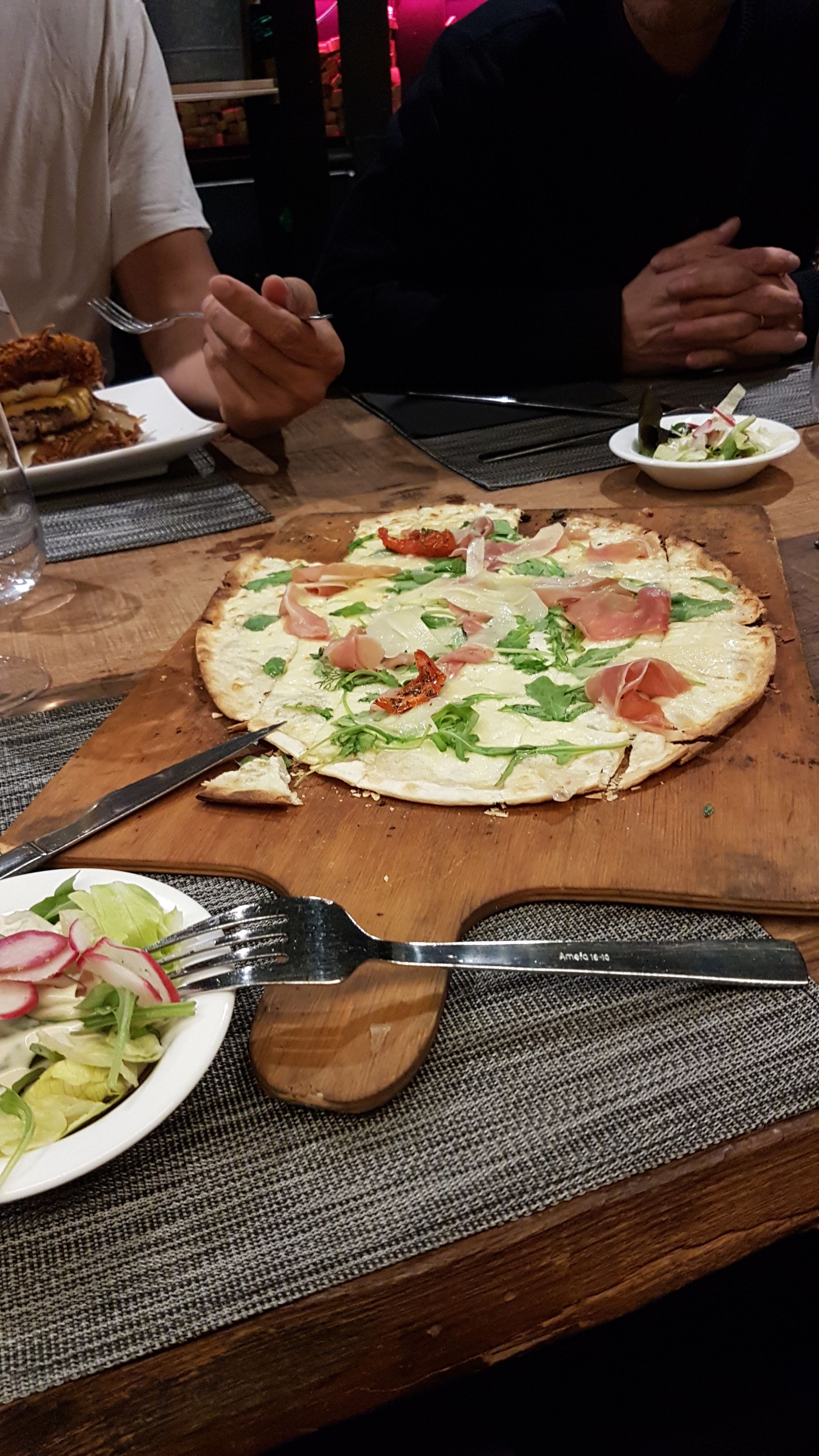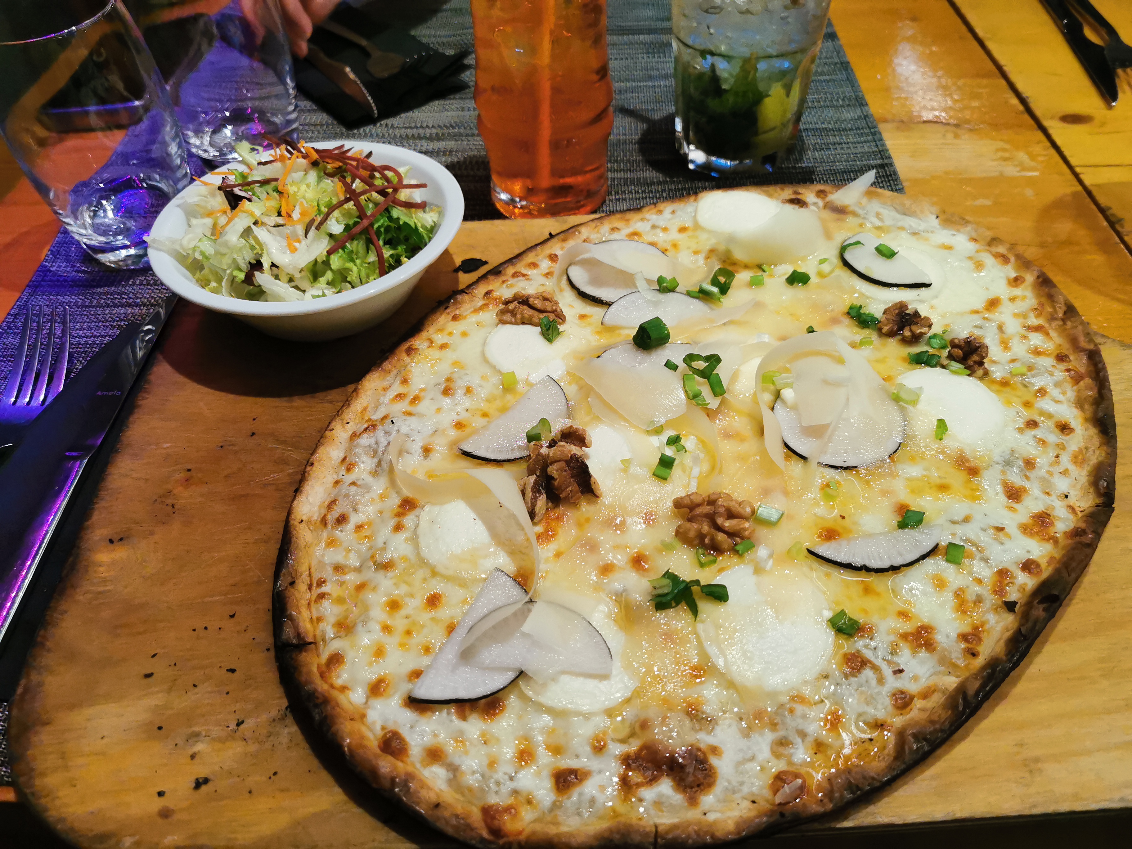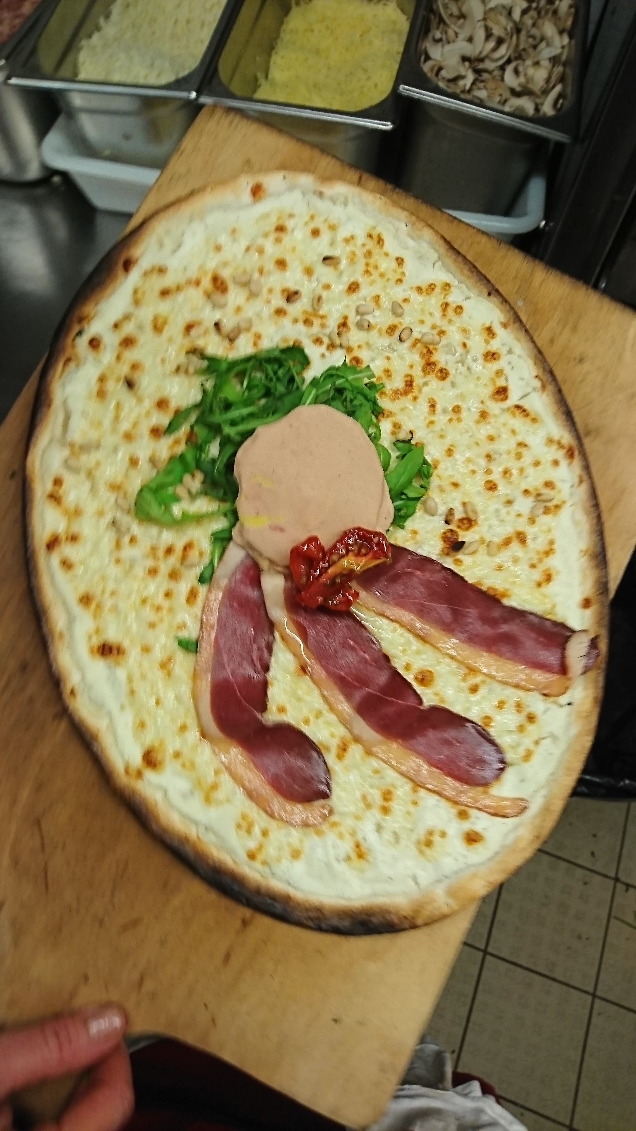 Accueil chaleureux, dynamique et séduisant. Tarte flambée périgourdine incroyablement délicieuse ! Un régal ! Juste la petite salade d'accompagnement qui avait beaucoup trop de sauce (personne n'a dit qu'il est facile de doser..). Belle expérience, je reviendrai !