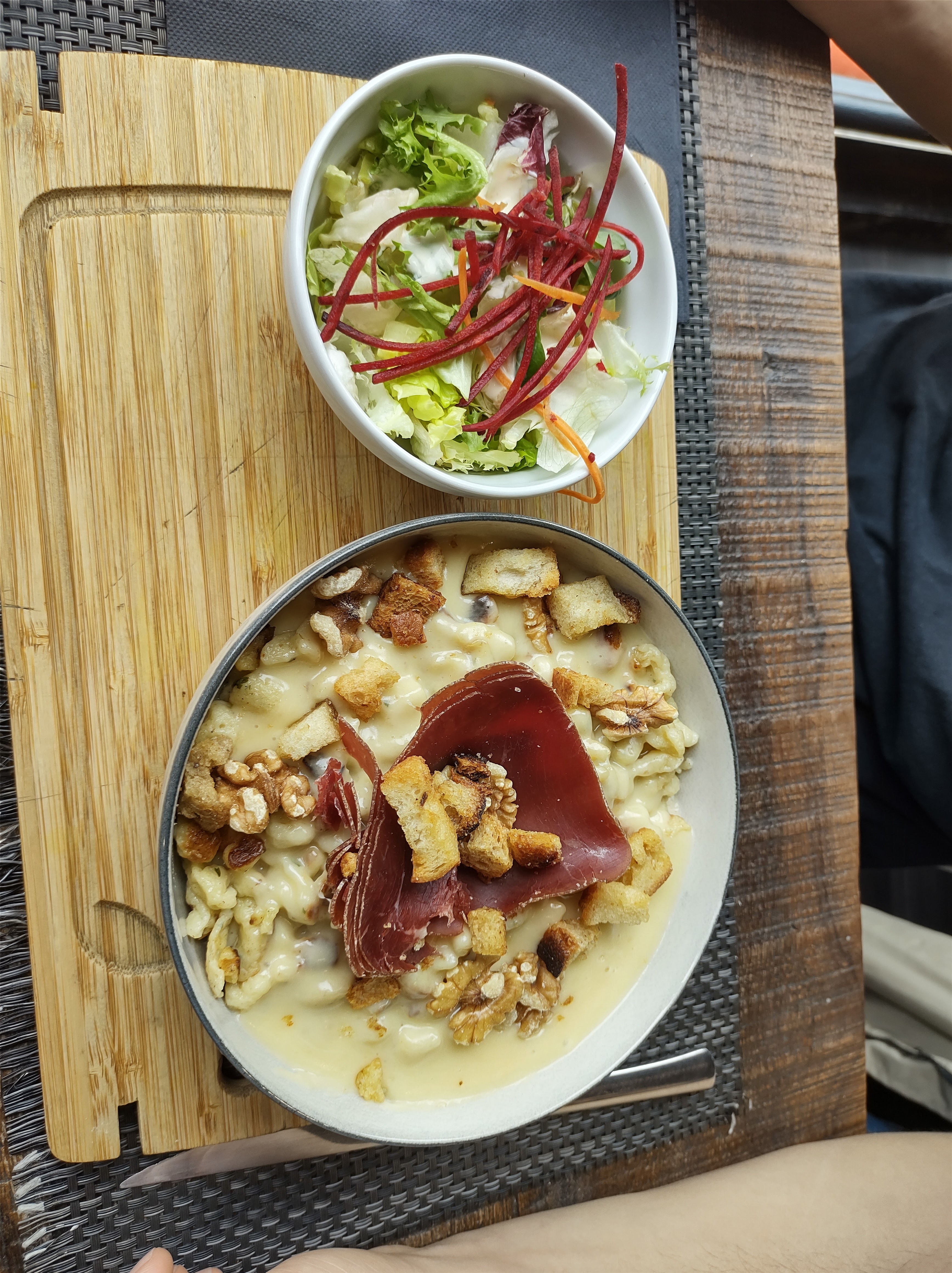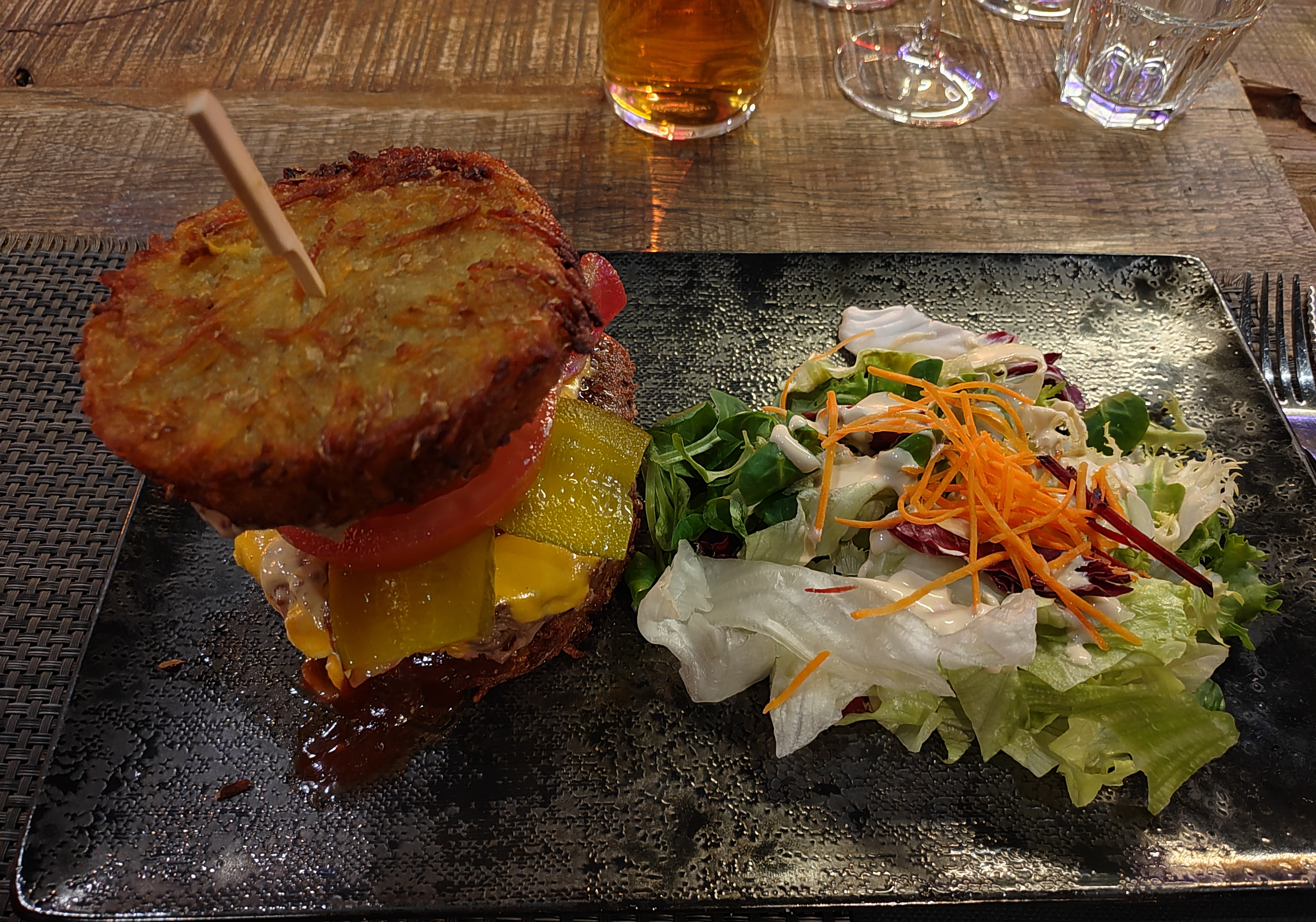 Arrivée à 12h30, en plein rush et servie en à peine 10/12mn. L'équipe est chaleureuse et le service rapide. J'ai opté pour le rösti burger au poulet, un vrai régal. Cela dit, je me laisserai bien tenter par les spatzles maison la prochaine fois. J'oubliais ... les produits sont de qualité et les plats faits maison 👍