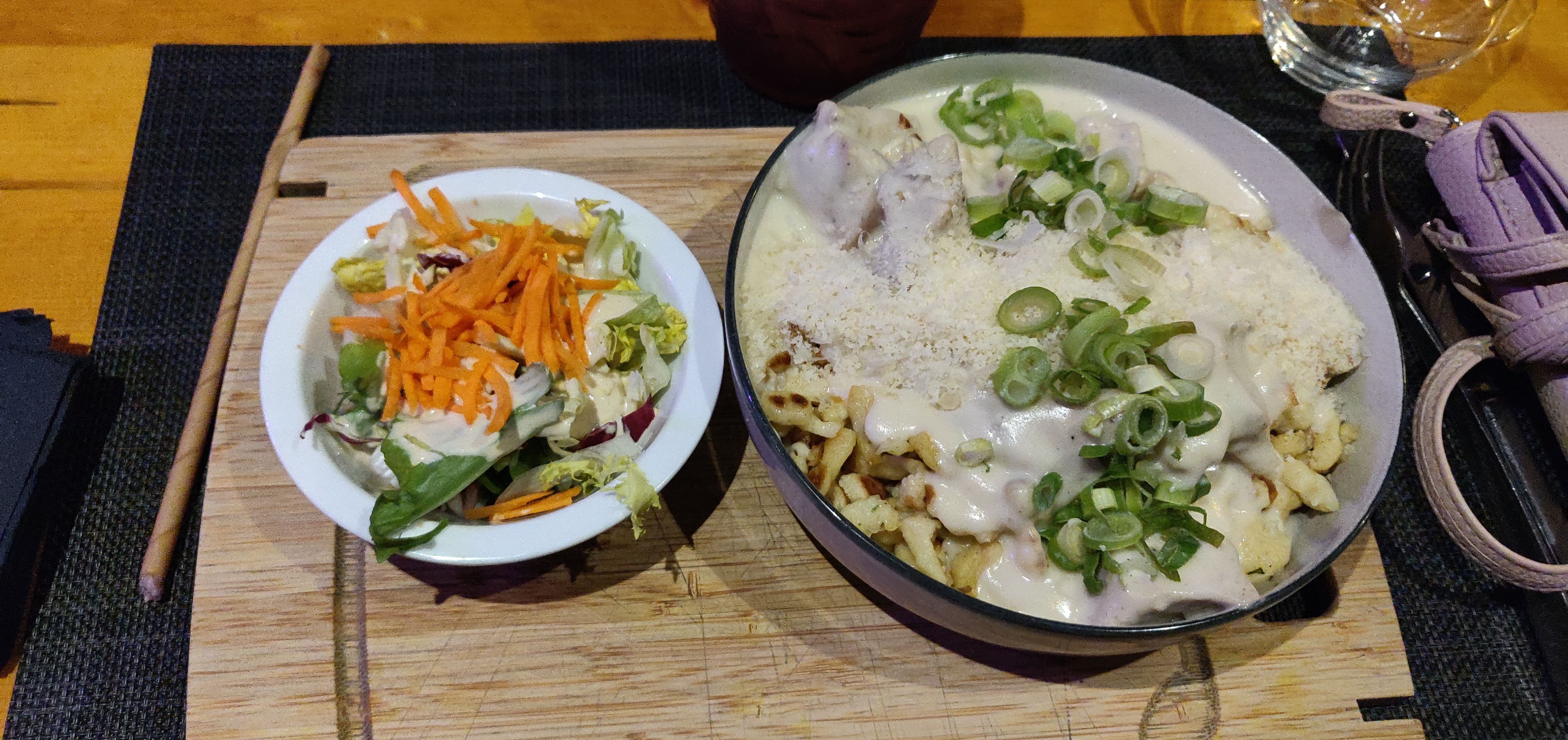 Super Restau pour goûte les Spatzles ! Une régal', nous avons goûté les Spatzles poulet / choucroute et fromage+grison, toutes étaient délicieuses !