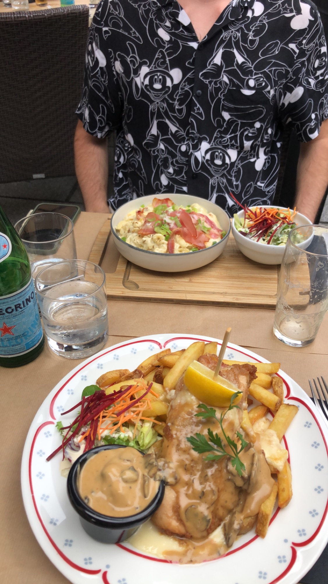 Nous sommes arrivés à une heure forte de fréquentation, nous n'avions pas réservé, et nous avons tout de même eu la chance d'être installé en table extérieure. Mon cocktail était parfait. Notre nourriture délicieuse et le service était attentionné. J'avais réclamé un cordon bleu accompagné de spazle. Le restorant était remplie, les serveurs étaient débordés. Ils se sont trompés et m'ont apporté des frites. Nous leur avons signalé leur étourderie et m'ont immédiatement apporté le plat désiré sans même remettre en doute mes anciens dires. Je recommande grandement !