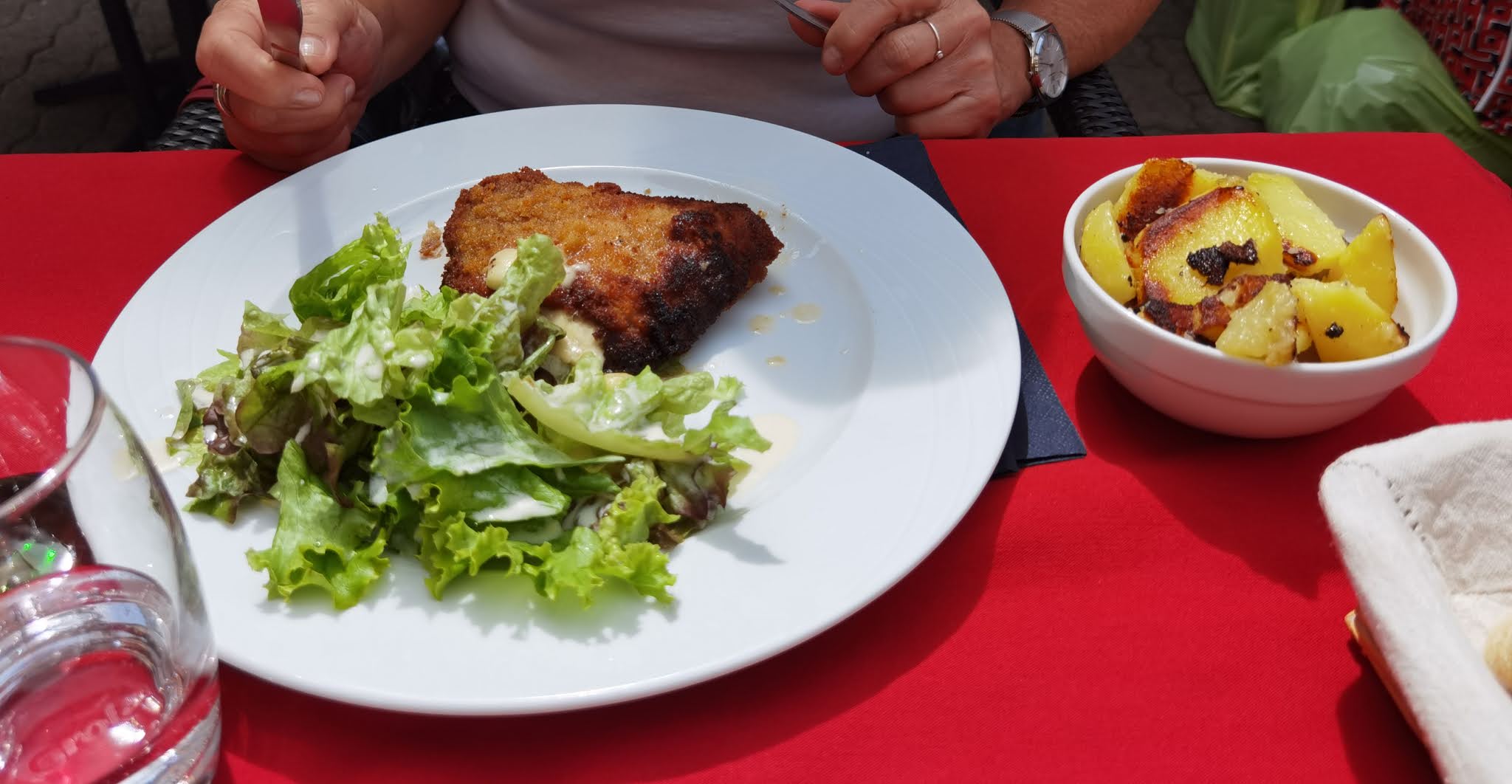 Cordon bleue très gras. Choucroute très ordinaire rien d'exceptionnel. Eau plate facturée 3.00€.
