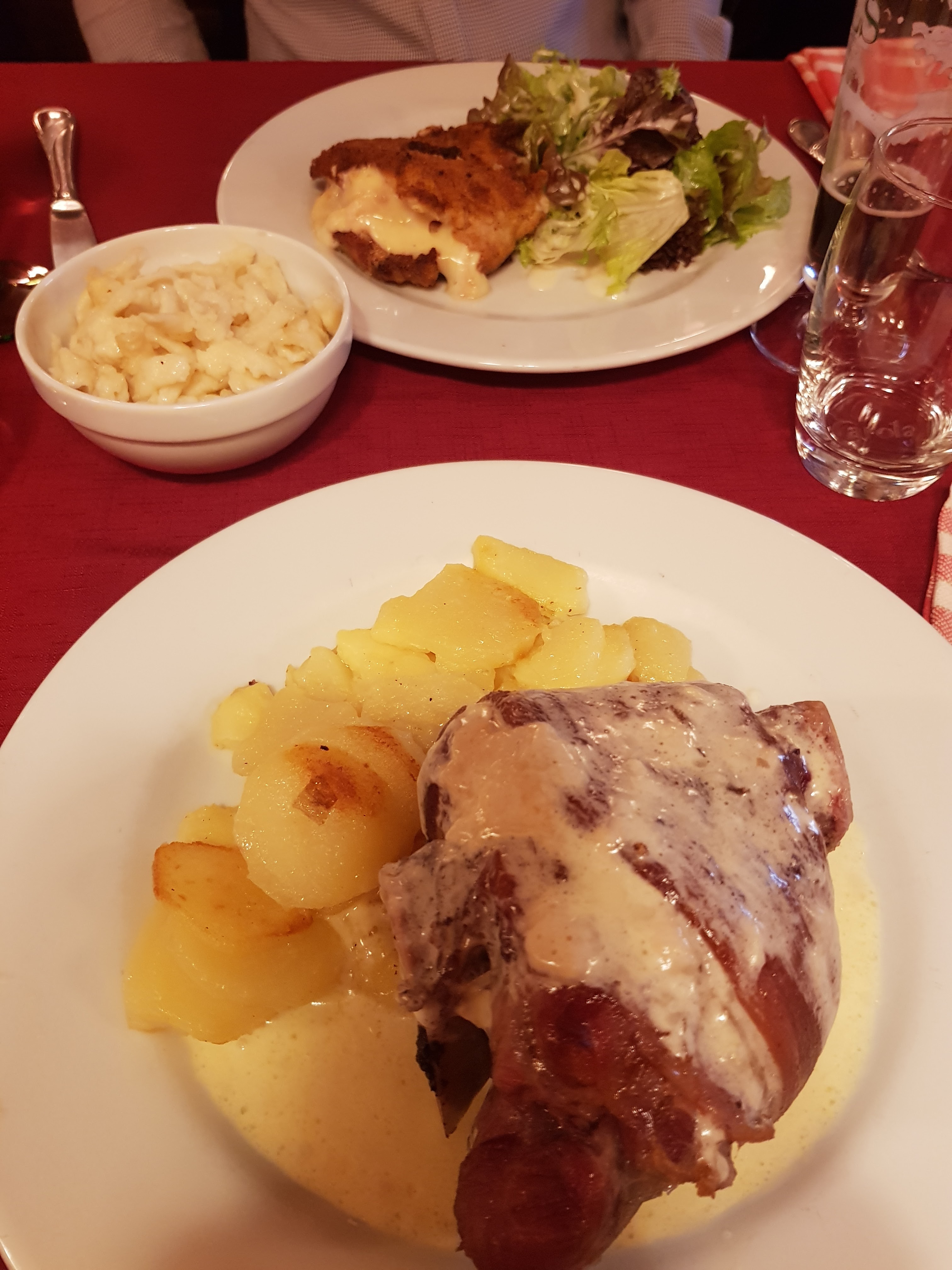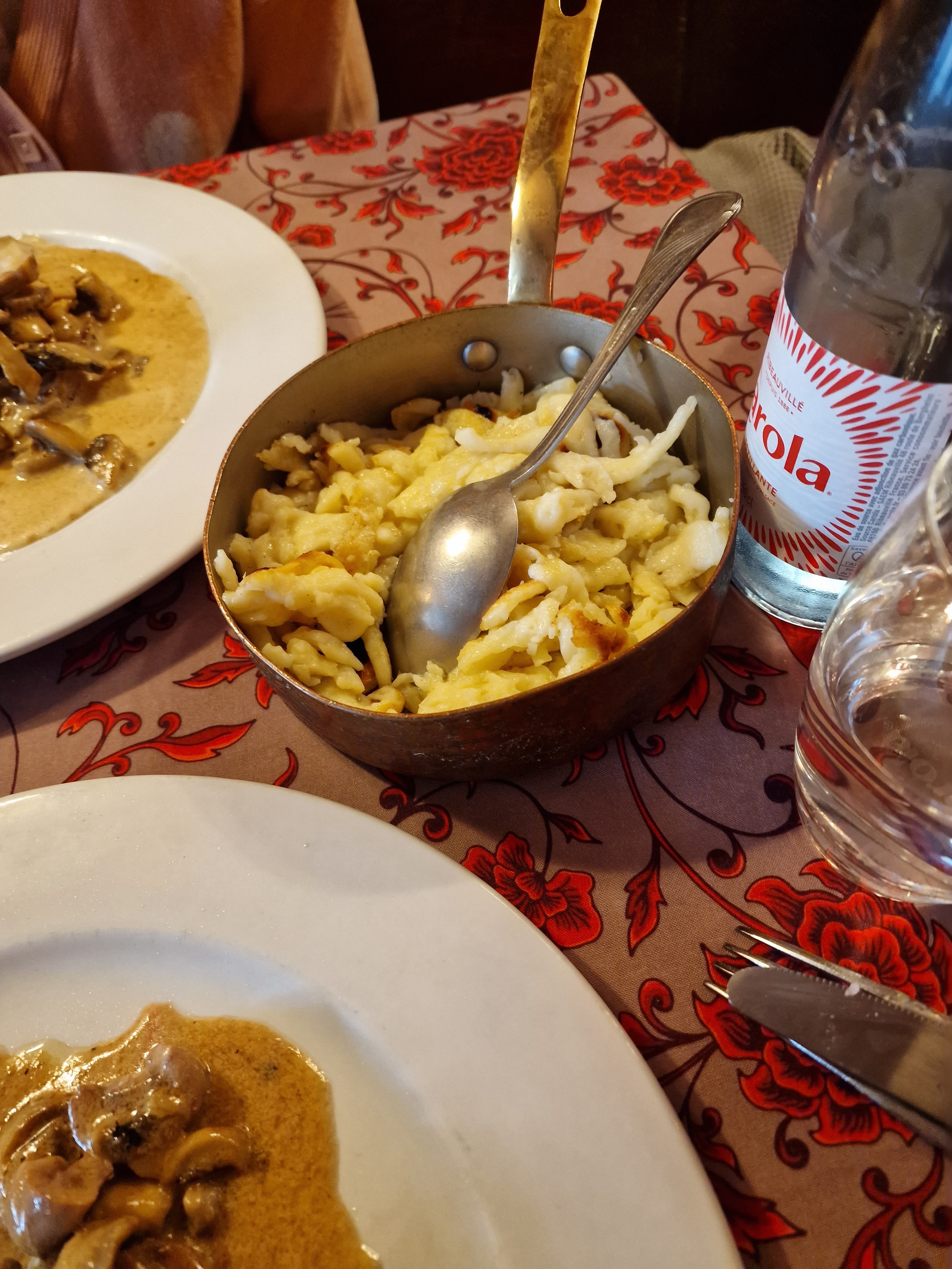 Expérience moyenne: - Service express, le serveur a peine installé nous demande à 2 reprises d’avoir fait un choix en l’espace de 5’ (samedi soir…!) - Serveur et serveuse très peu souriant et peu agréable… quel dommage - Petite carte mais pour autant pas de spaetzle maison Point positif : bon dessert Du vite fait bien fait qui ne donne pas envie de revenir…
