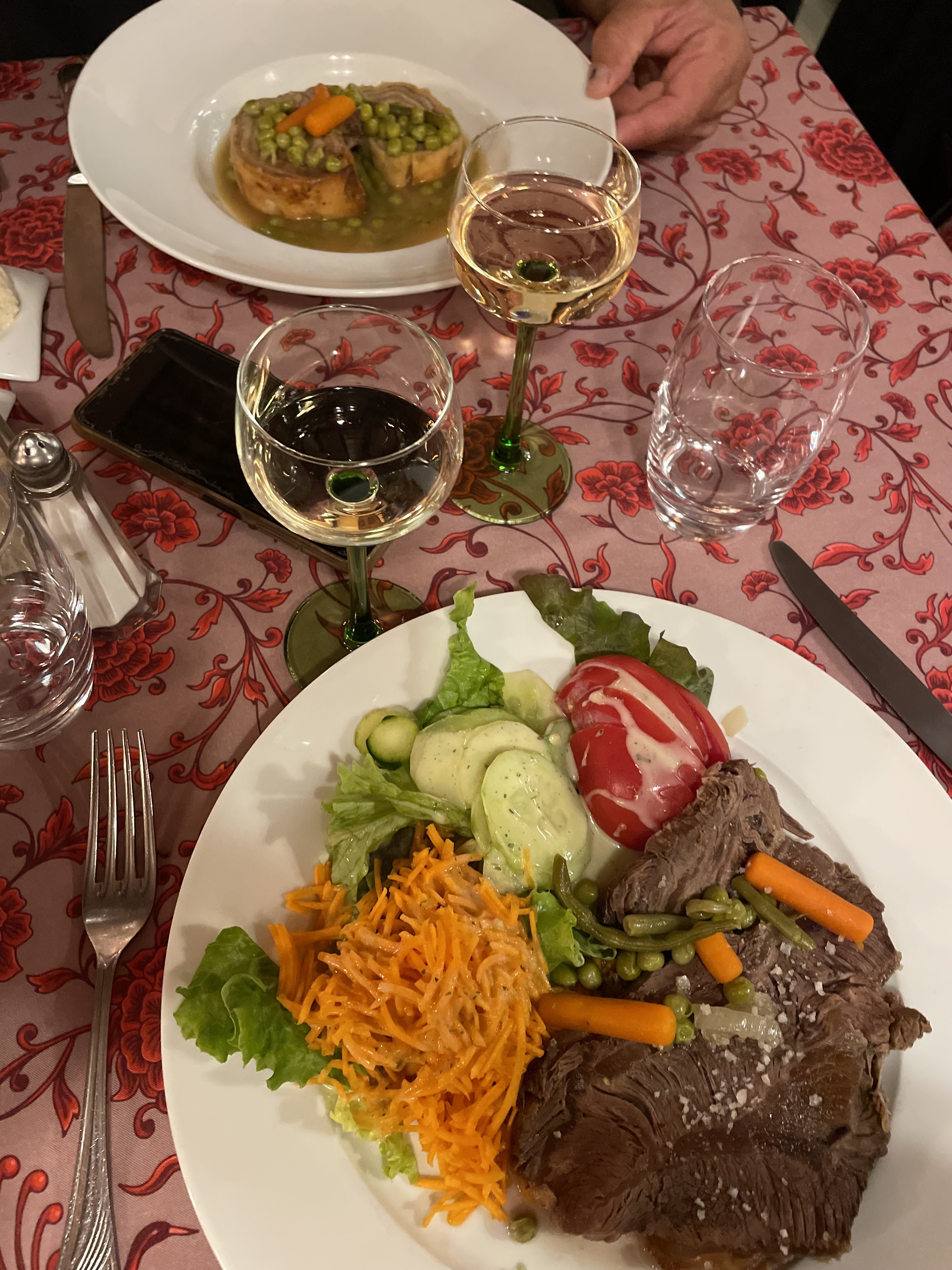 Déjeuner en couple, très bel acceuil, service attentionné avec le sourire, ambiance familiale, belle nappe et décor. Carte régionale, prix correct tant pour les plats que les verres de vin, assiettes généreuses et goûteuses. Que du bon, à refaire sans faute.
