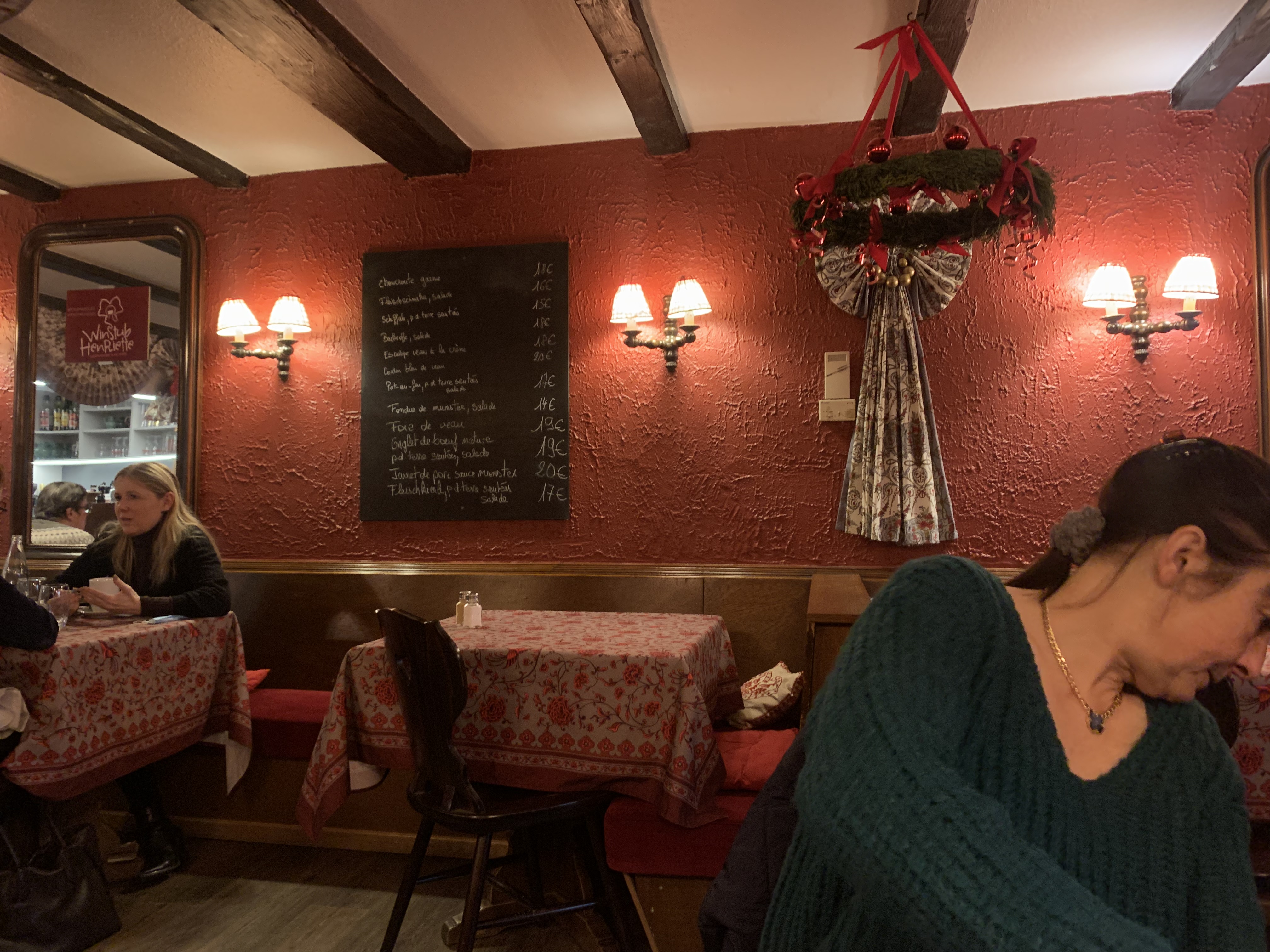 Par une froide journée de décembre, avons trouvé accueil chez Henriette Winstub par pur hasard -- qui fait très bien les choses. Quel lieu merveilleux et chaleureux ! Quelle cuisine délicieuse et réconfortante ! La prochaine fois, nous dirigerons le hasard et reviendrons exprès chez Henriette Winstub.