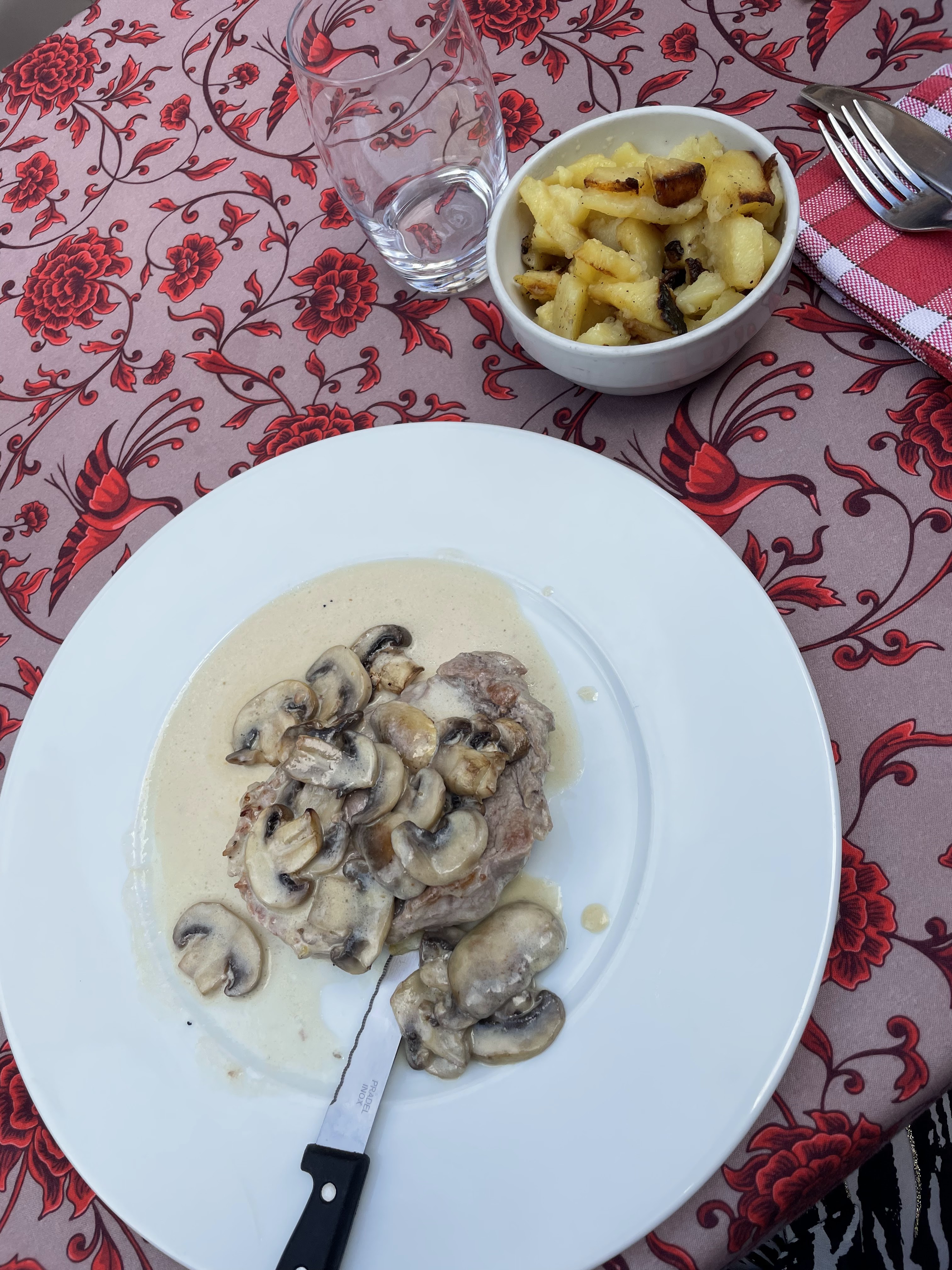 J ai pris une Escalope à la creme.c était la plus petite que l on ne m a jamais servi dans un restaurant. Un peu déçu des quantités. Mais le goût était bon ça rien à redire. Mais je pense que un effort au niveau des portions serait appréciés surtout que je ne suis pas le plus grand mangeur.