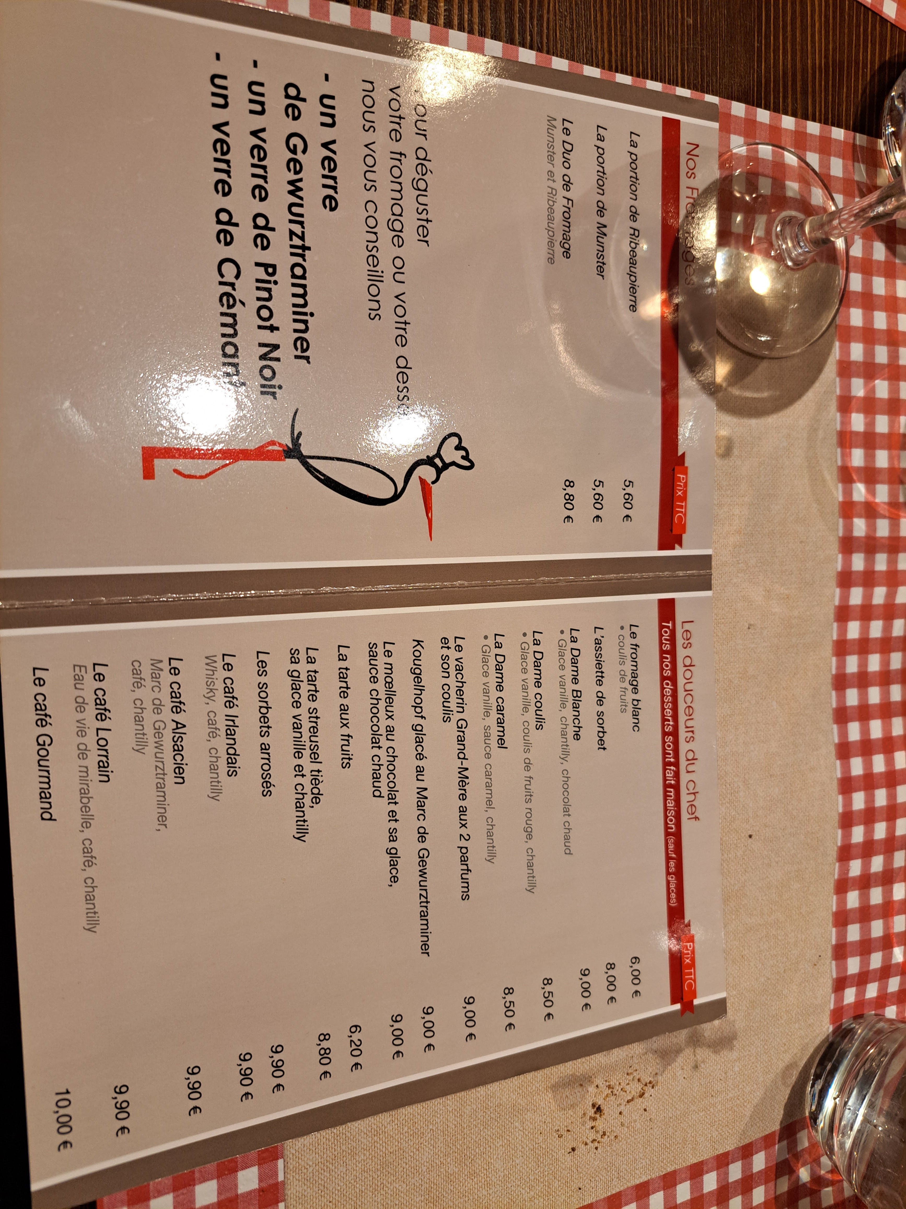 Nous sommes venues durant les vacances de la Toussaint à 4. Nous avons été bien accueillis et le service était rapide. Les produits du terroir sont étaient tous délicieux. La déco est charmante et typique de la région. Nous recommandons si vous êtes de passage à Ribeauvillé.