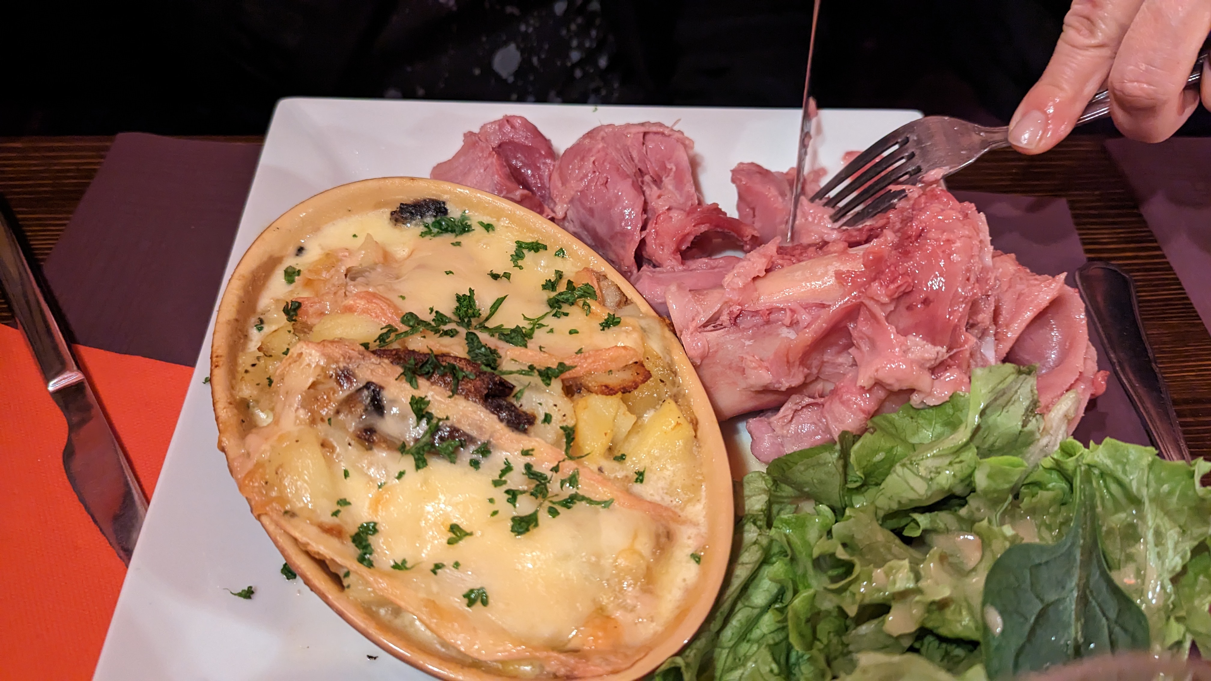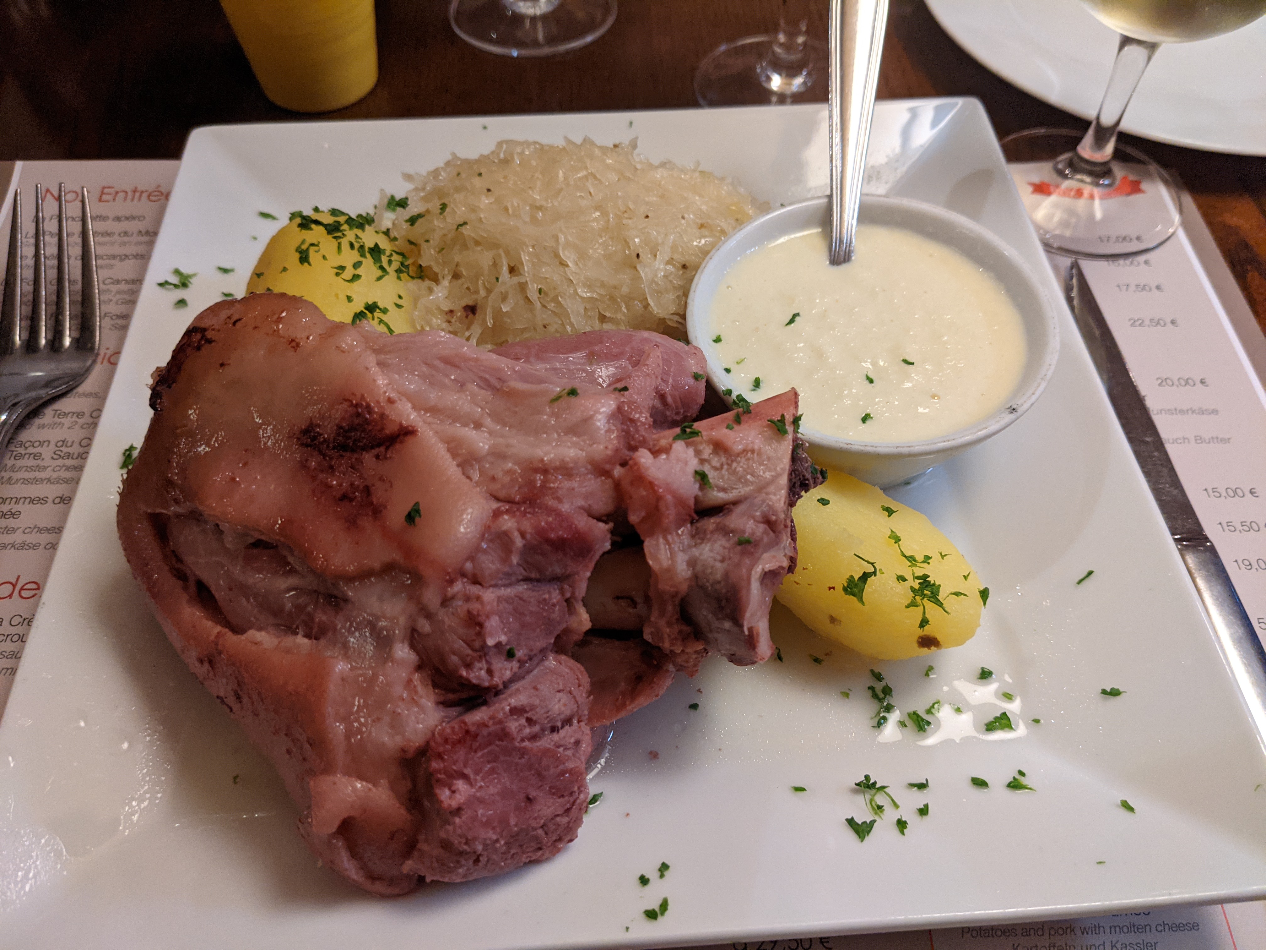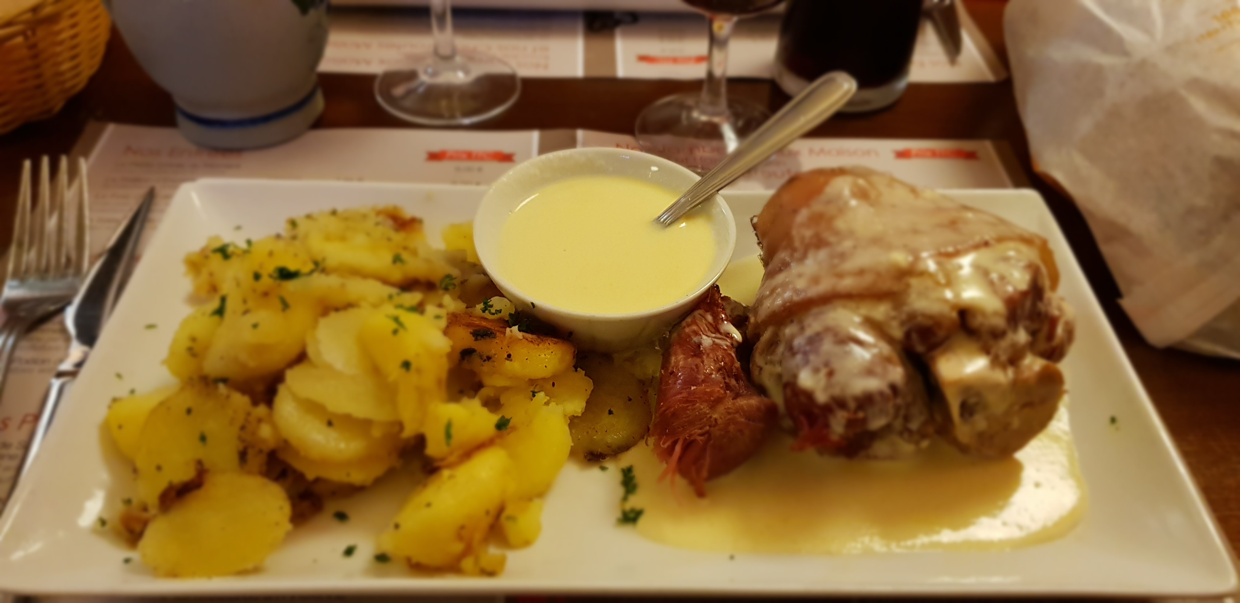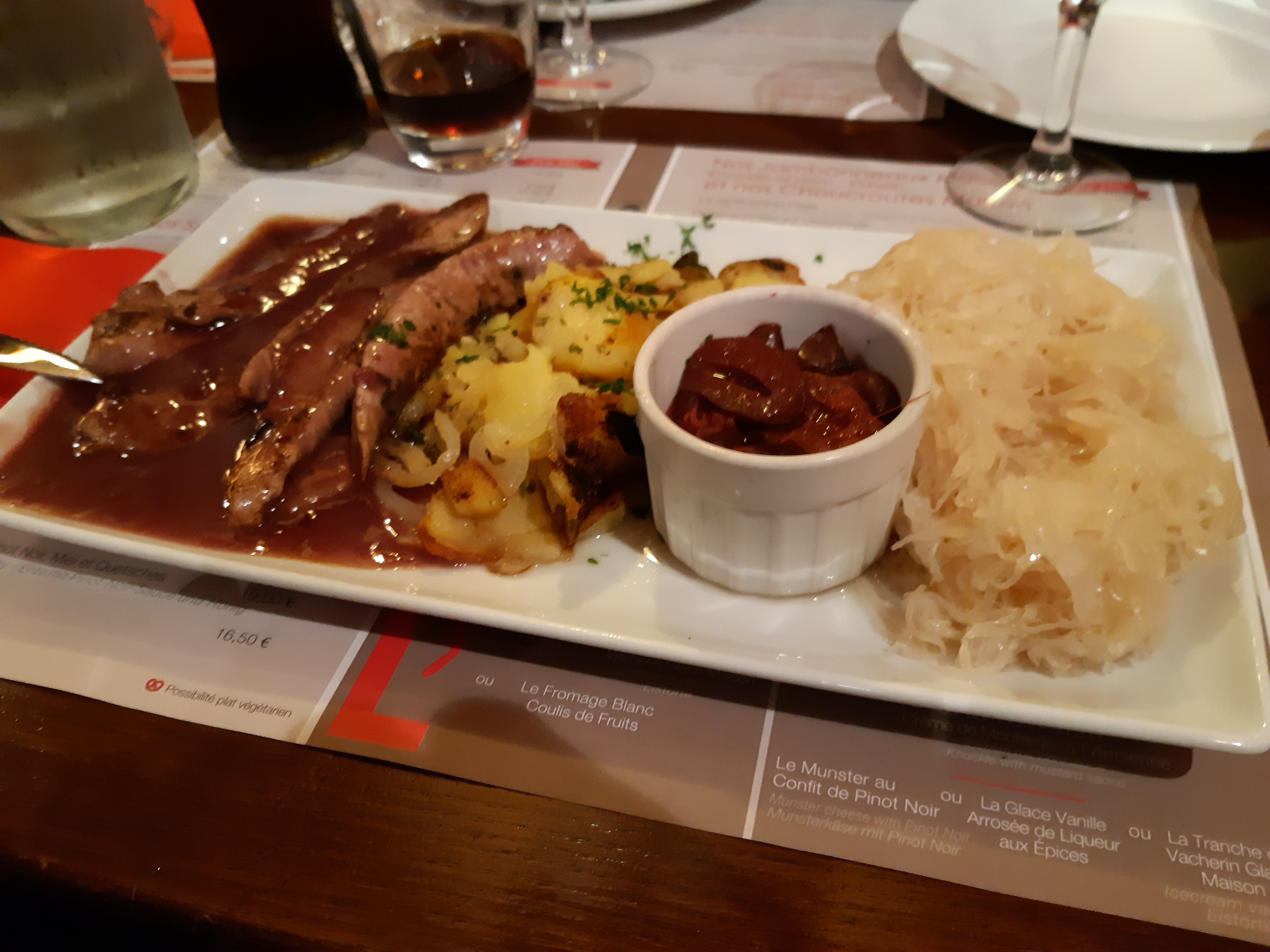 Une très bonne adresse pour déguster les spécialités alsaciennes, notamment le waedele (jambonneau) à toutes les sauces servi avec choucroute, un régal. Puis nous avons craqué pour le vacherin et son coulis de myrtilles.