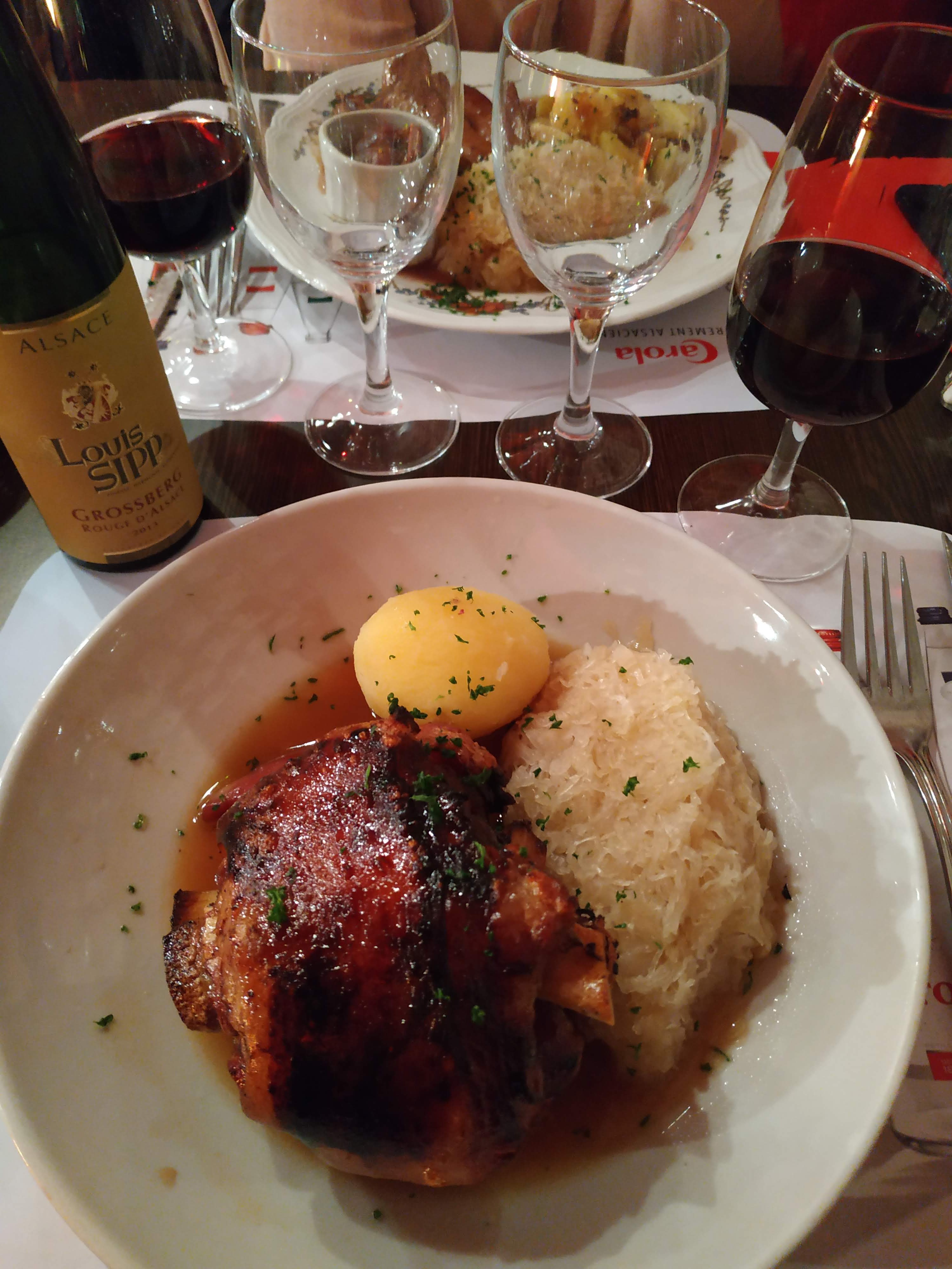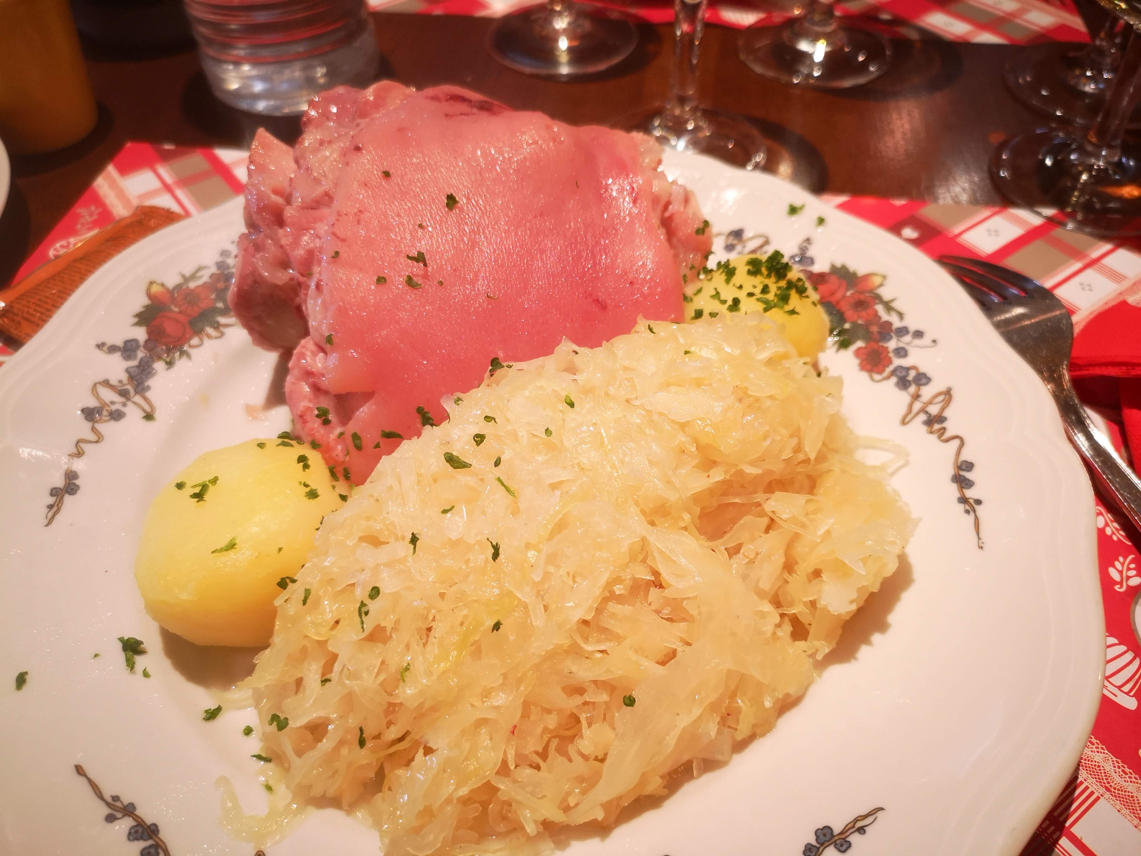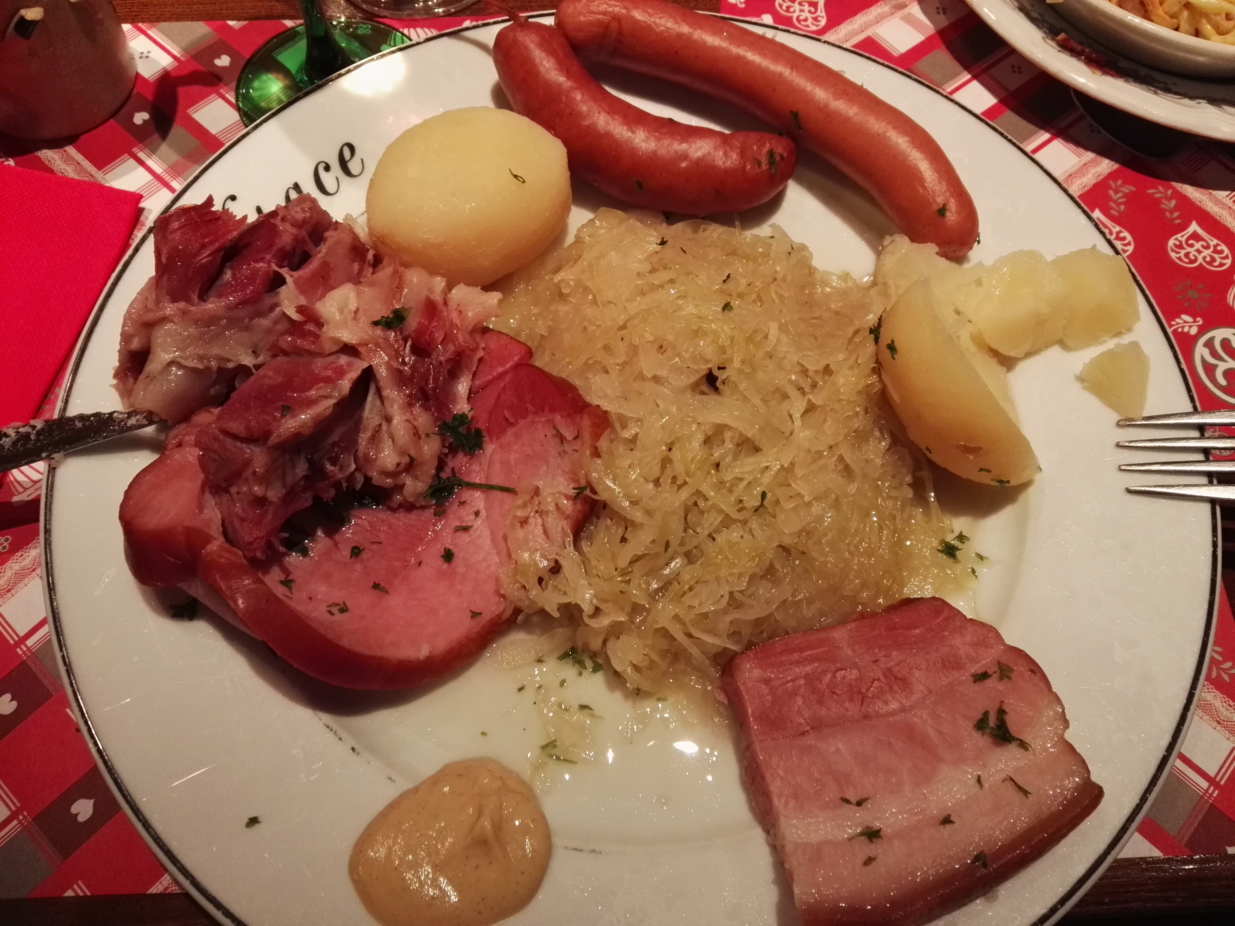 Lieu incontournables pour déguster les spécialités Alsacienne. La choucroute est un régal, le jambonneau excellent, idem pour la saucisse du menu enfant. Deux mentions spéciales : Une pour le spetzel aux pommes de terre et munster Une pour la tarte aux quetsches Miam-miam ! En plus le personnel est accueillant, et notre serveuse particulièrement agréable. Bref, foncez !
