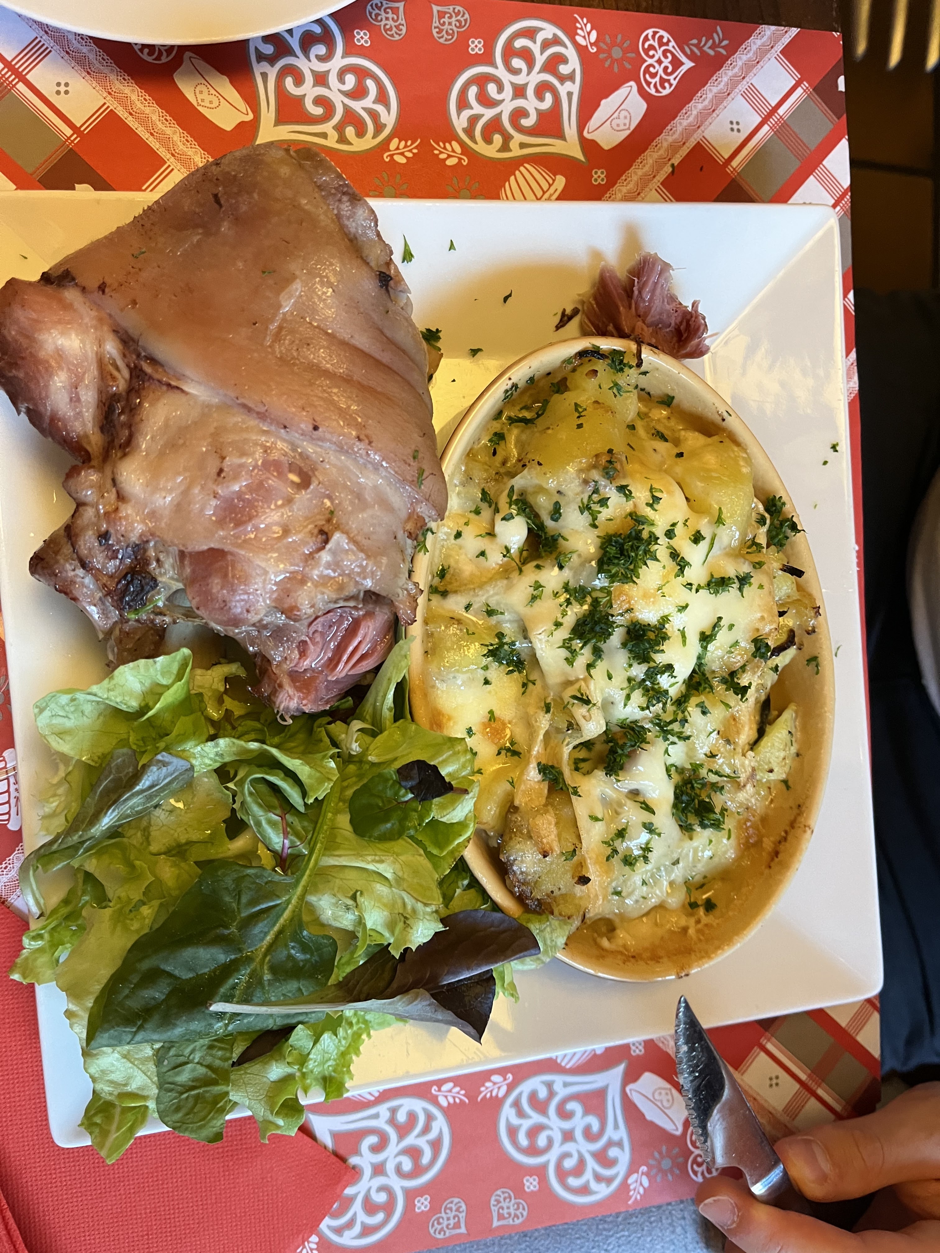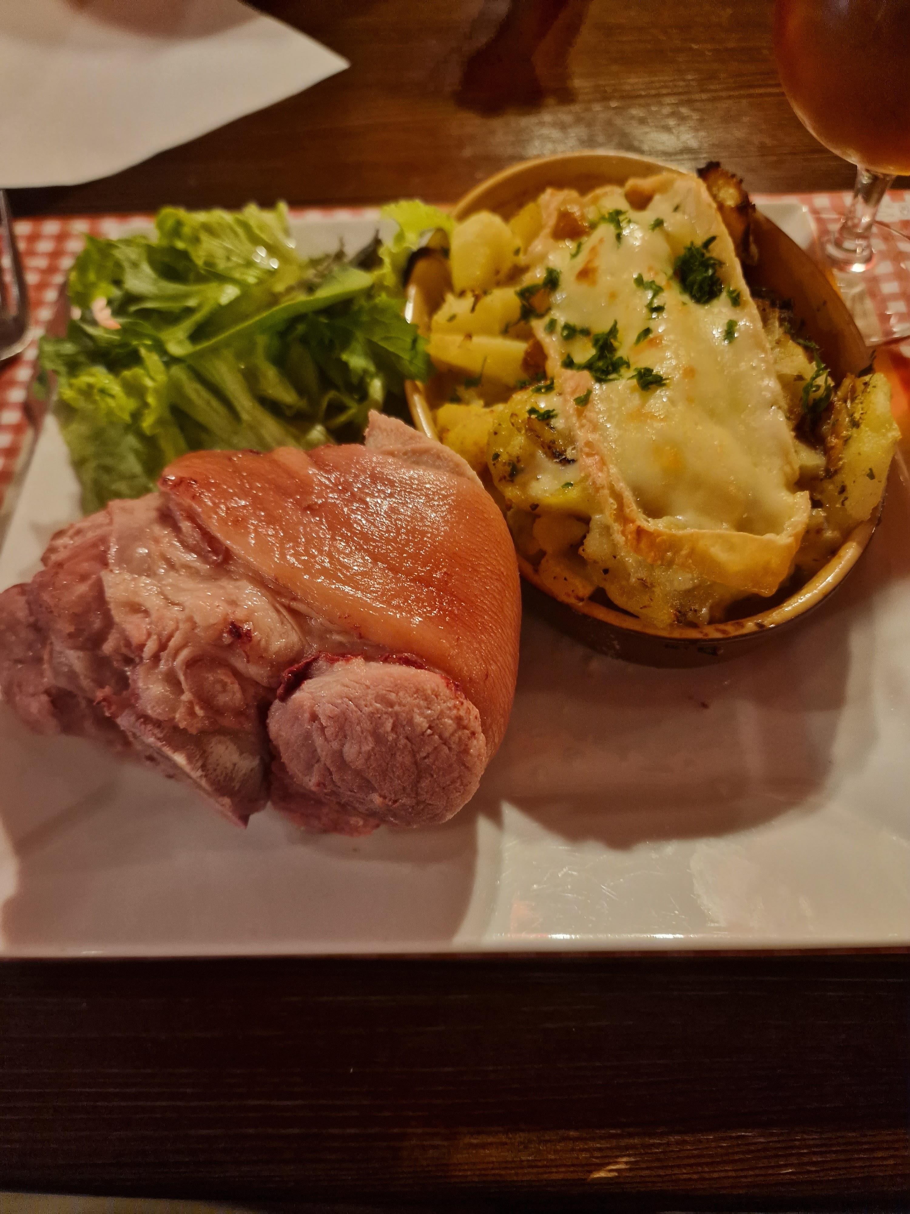Très chouette winstub avec les plats attendus, personnel impeccable et chouette ambiance. J'ai mangé un jarret beurre maître d'hôtel en plat et du foie gras de compétition en entrée 😁