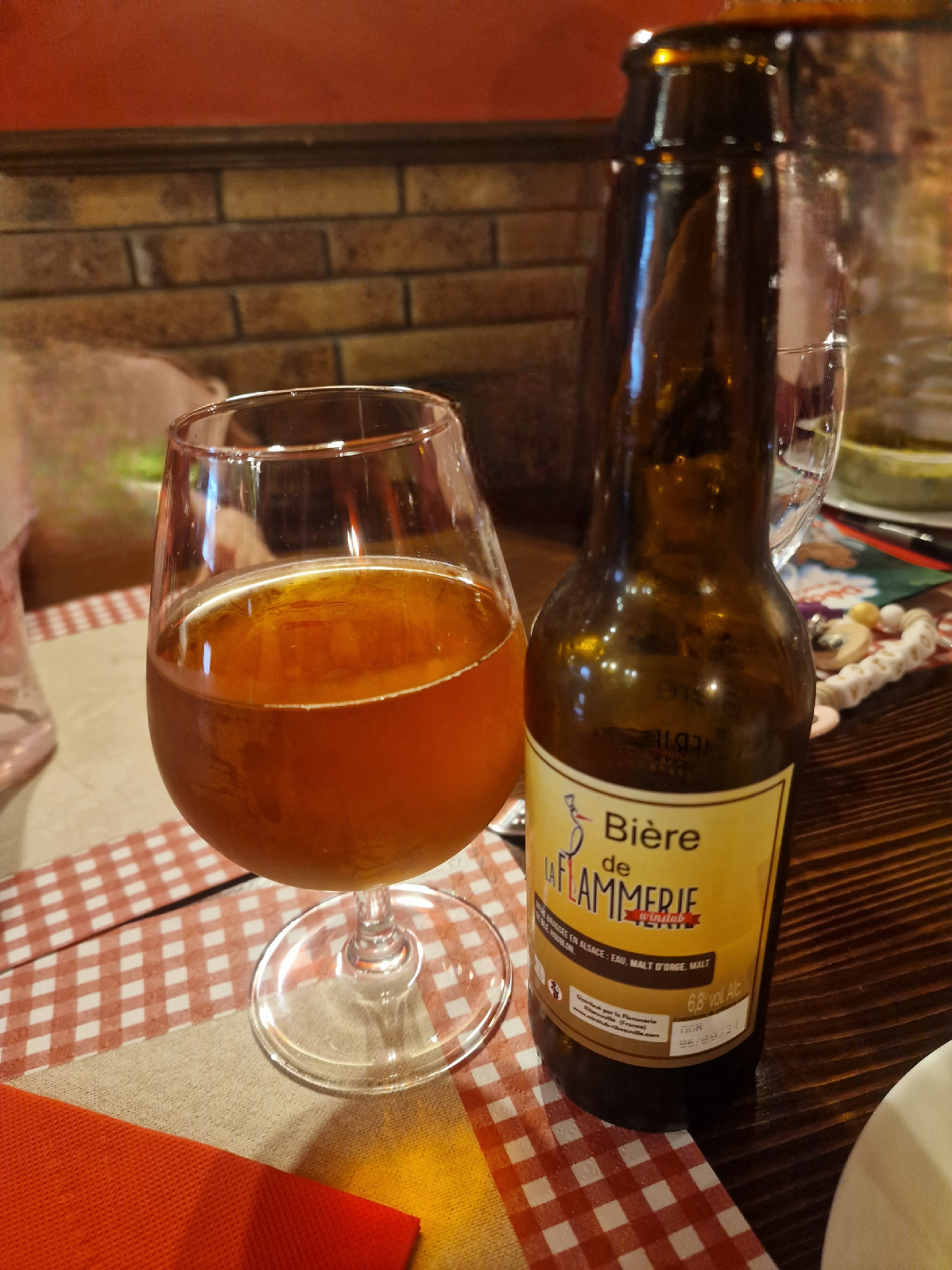 Nous avons passé un excellent moment à la flammerie ! Nous avons été acceuilli chaleureusement; servis rapidement (mais sans pression); le repas était délicieux ! J’ai essayé le Jambonneau à la choucroute maison et au raifort. En dessert j’ai savouré ma première griottine avec plaisir. Merci beaucoup et à bientôt !