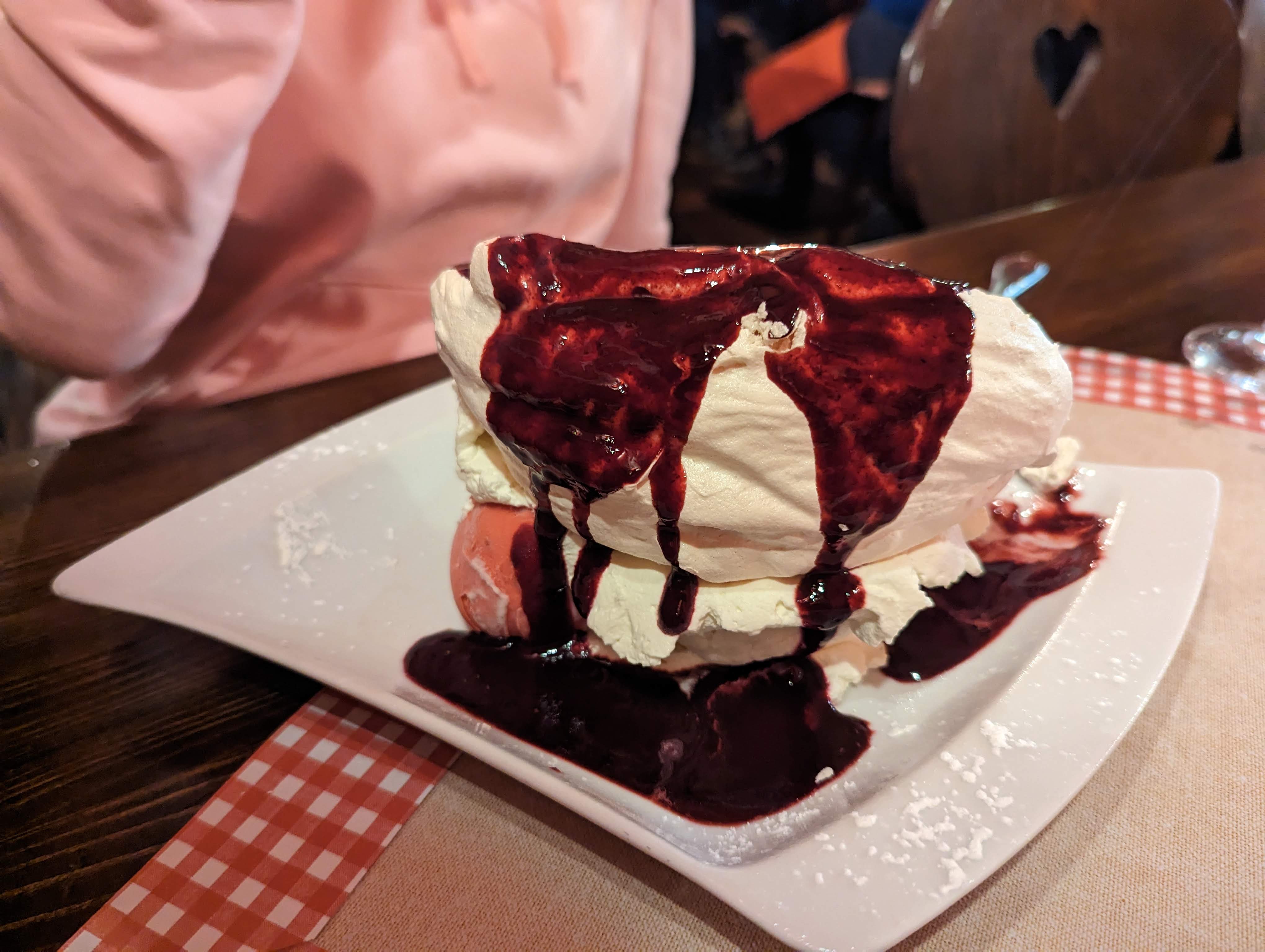 Super service et très bon repas choucroute poisson et tarte myrtilles. Mon vacherin Extra Merci ,👍