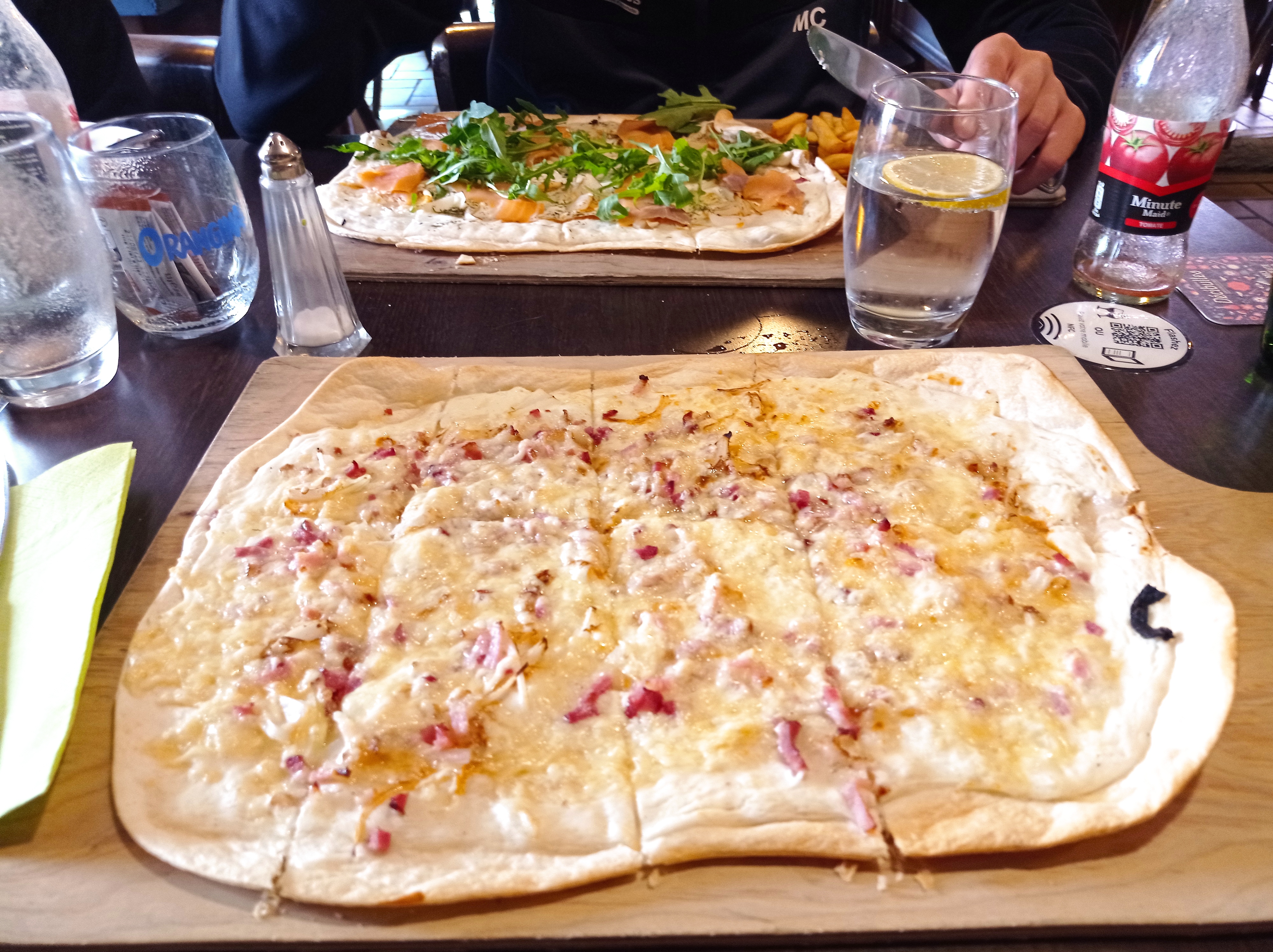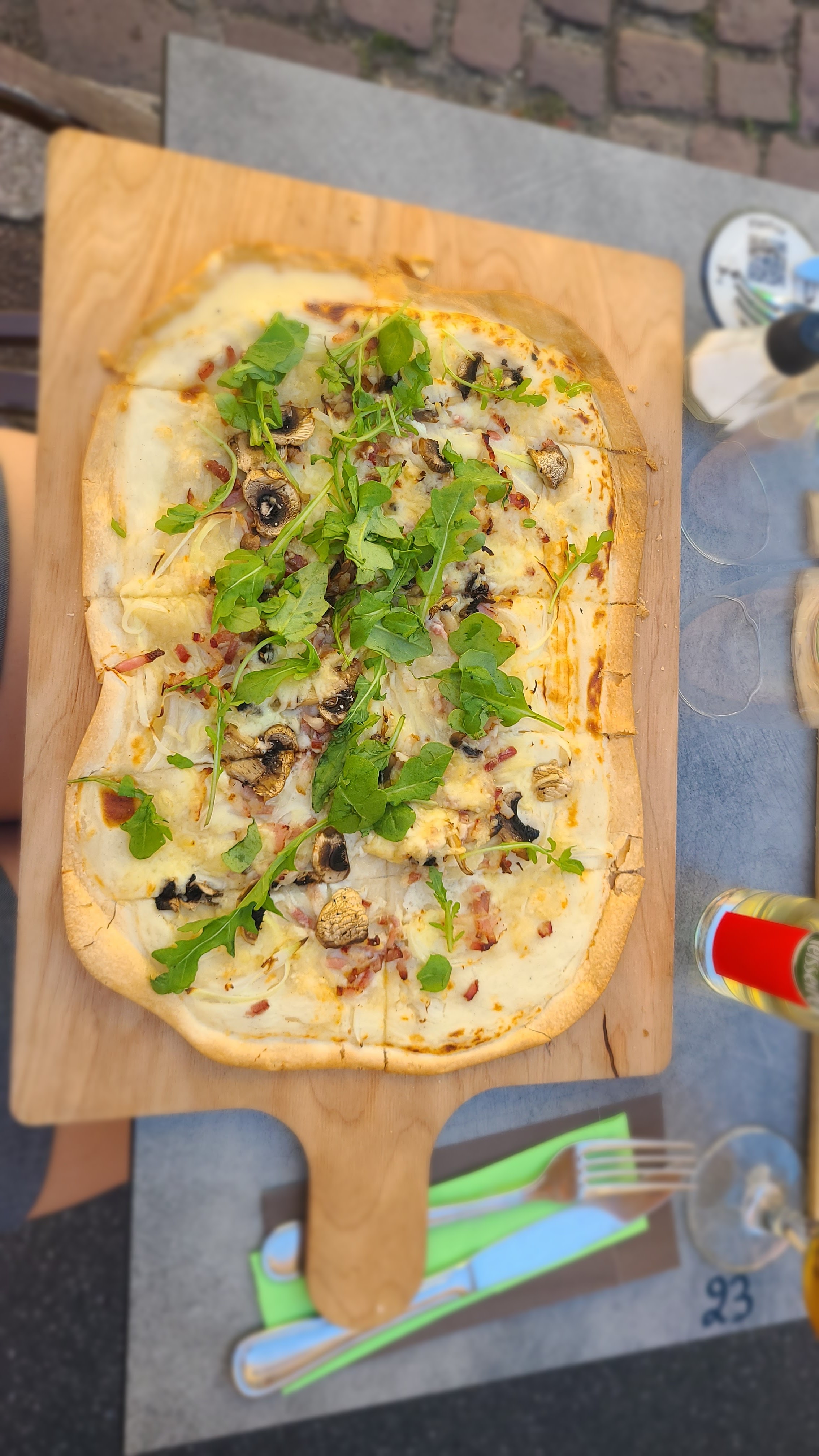 Après avoir fait tous les resto du centre de Colmar, le seul dispo était celui -ci. Nous arrivons et on prend notre commande assez rapidement finalement… Après 1h20 d’attente pour notre plat (menus enfants + 2 flams au saumon!!!) Mon fils se permet de demander si c’est normal cette attente !!! Le serveur répond qu’il nous a « OUBLIÉS ». Mon agacement était sans surprise. Il nous demande si on souhaite quand même manger là…. Moi je répond non mais mon mari dit si car les enfants avaient très très faim. On mange sans faim mais bon… Au moment de payer l’addition j’attendais un minimum de geste commercial et le serveur me propose de me payer le café ☕️. La blague ! Je demande une prise en charge des apéros et il me la refuser. Dernière fois qu’on mange là mais je souhaite surtout que cet avis vous serve à vous améliorer car c’est vraiment très désagréable !