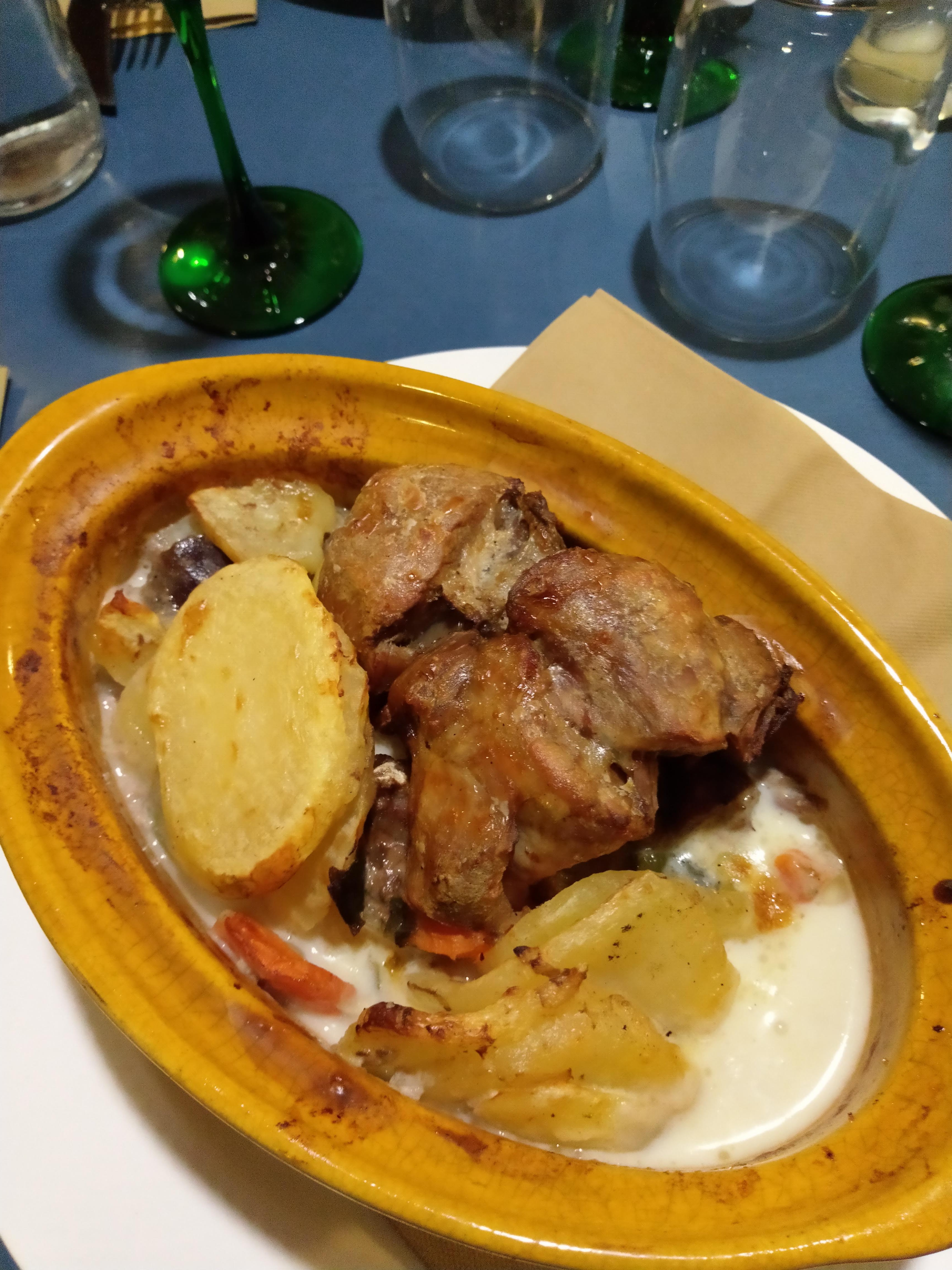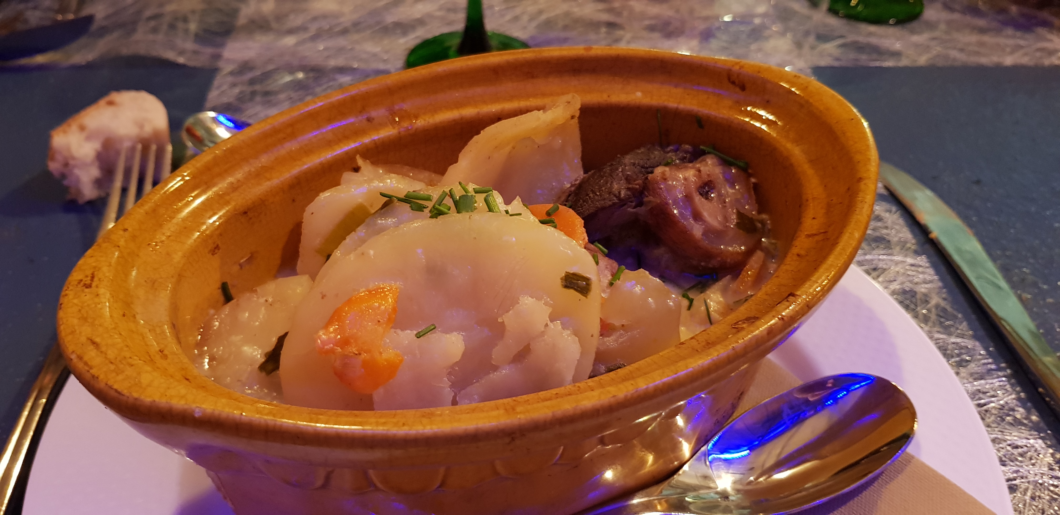 Entree 16,90 euros rapport qualité prix catastrophique saumon et céleris la photo parle d'elle même pas de beurre de sel ... Plat baeckeoof 20,90 premiers services arrivé du plat présentation simpatique ouverture de la cloche la photo parle d'elle même brûlé 2 eme service le plat était meilleur mais l'envie n'était plus là malgré les effort des serveur nous n'avons pas tenu pour un dessert un digestif a était proposé mais le dégoût était trop présent pour restée je pense qu'un changement de cuisinier dois être envisagée les prix sont trop cher l'établissement porte bien sont nom la taverne un retour vers l'âge de pierre était bien présent dur d'être optimiste dans des conditions pareille