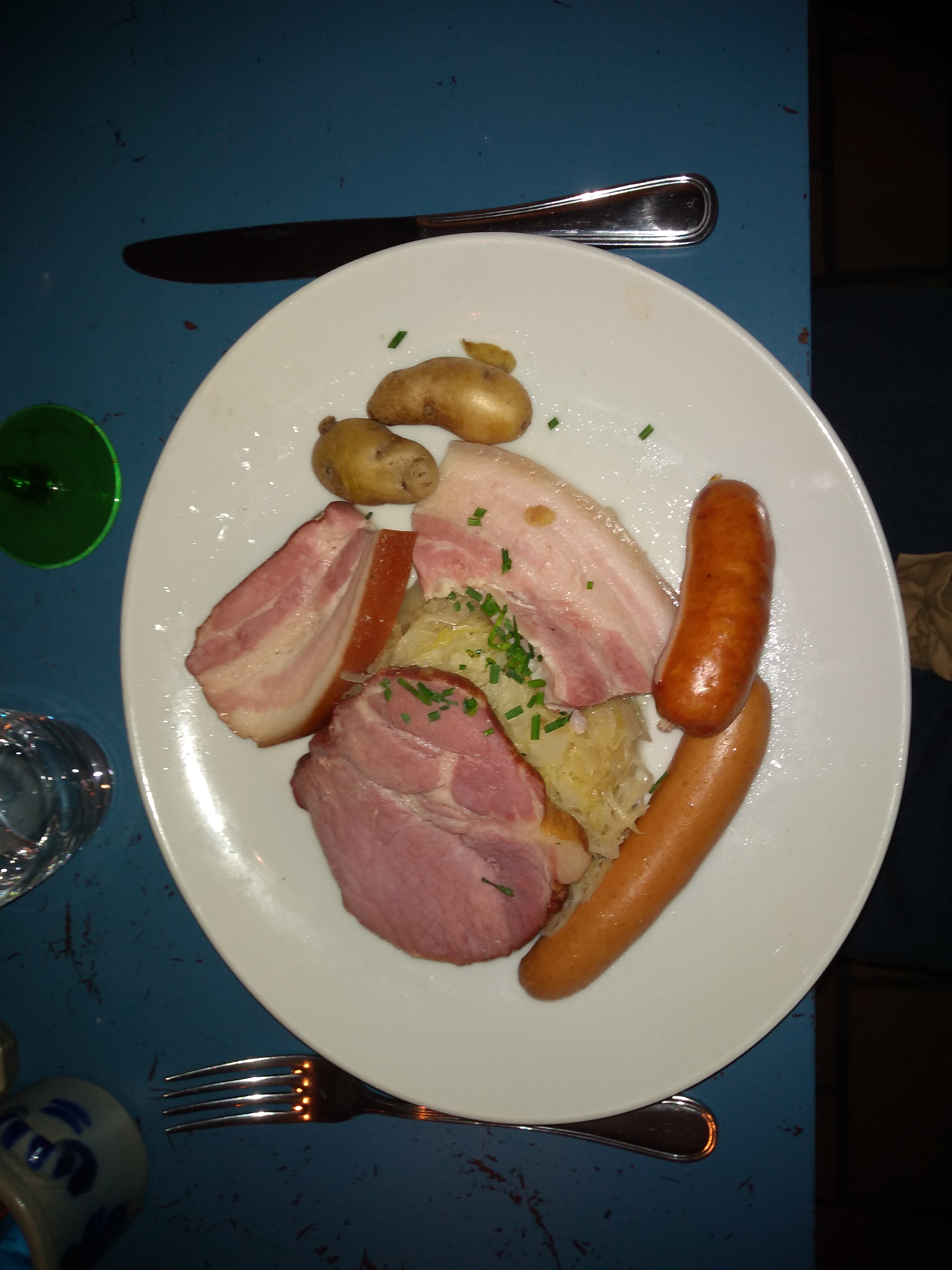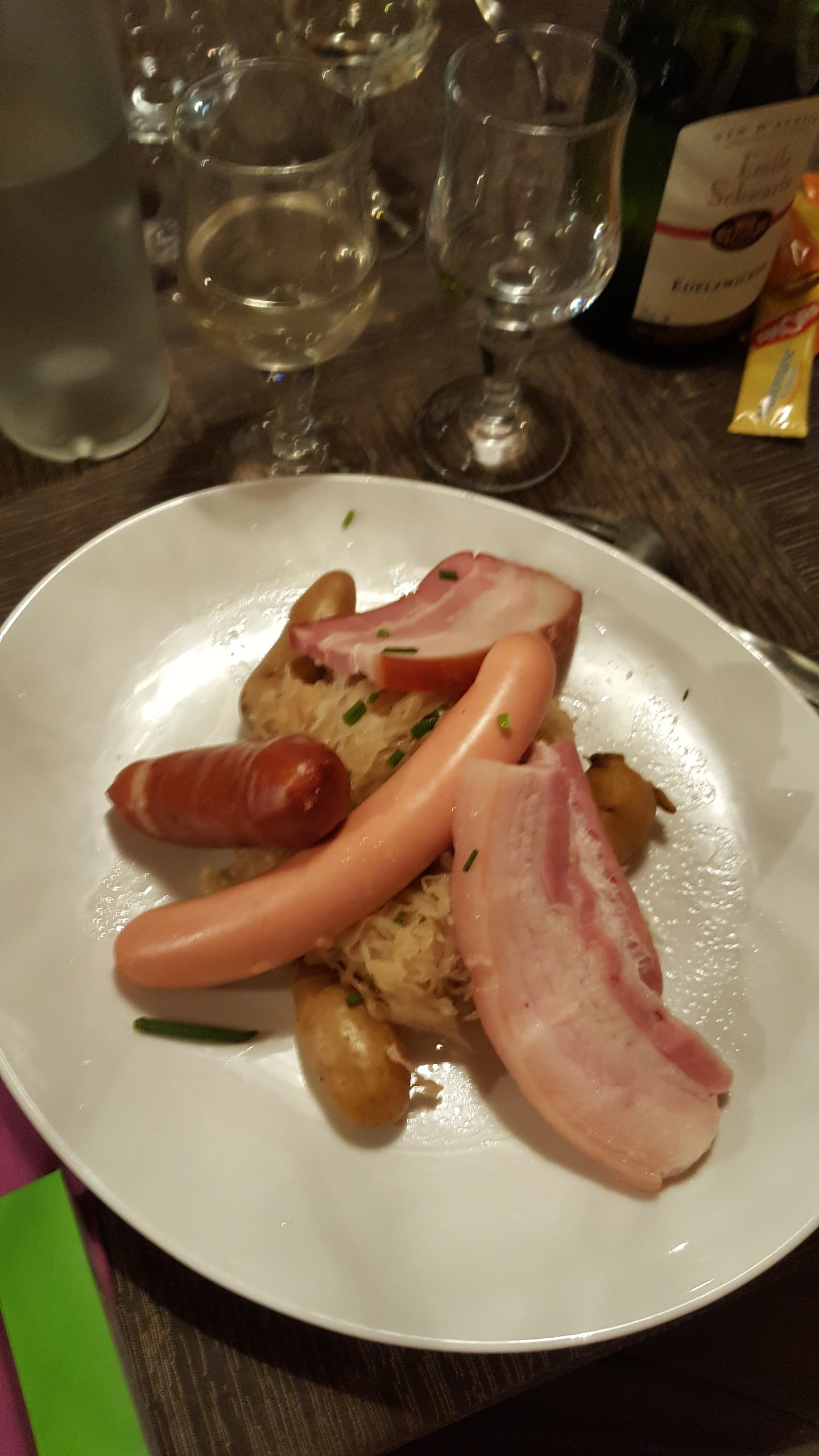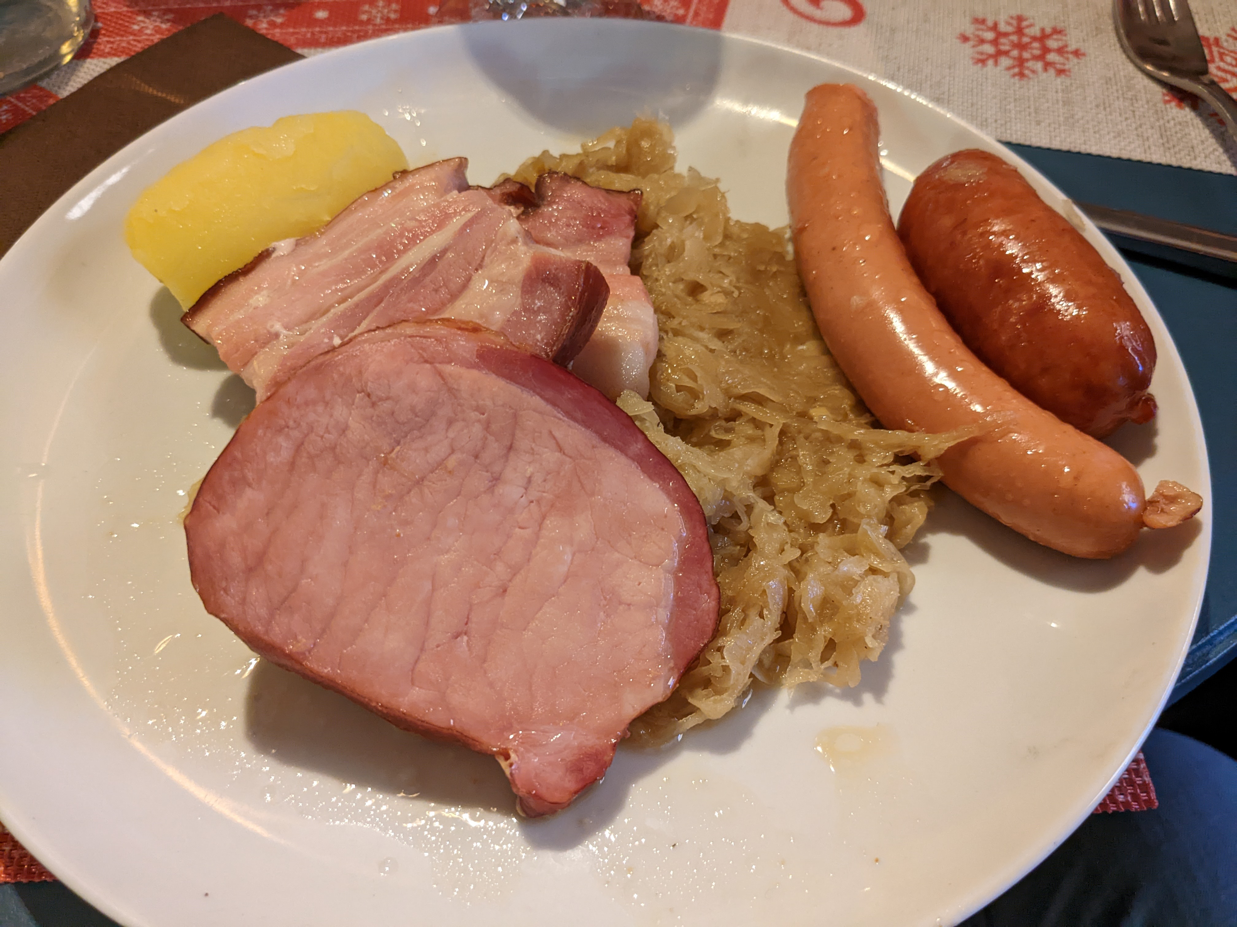 Arrêt impromptu a la Taverne un jour bondé de Marché de Noël à Colmar. C'est le seul établissement à avoir encore une table libre, après avoir échouer dans de nombreux restaurants. Au menu une choucroute d'assez bonne facture. Au vu de l'affluence record, l'équipe s'est bien débrouillée.
