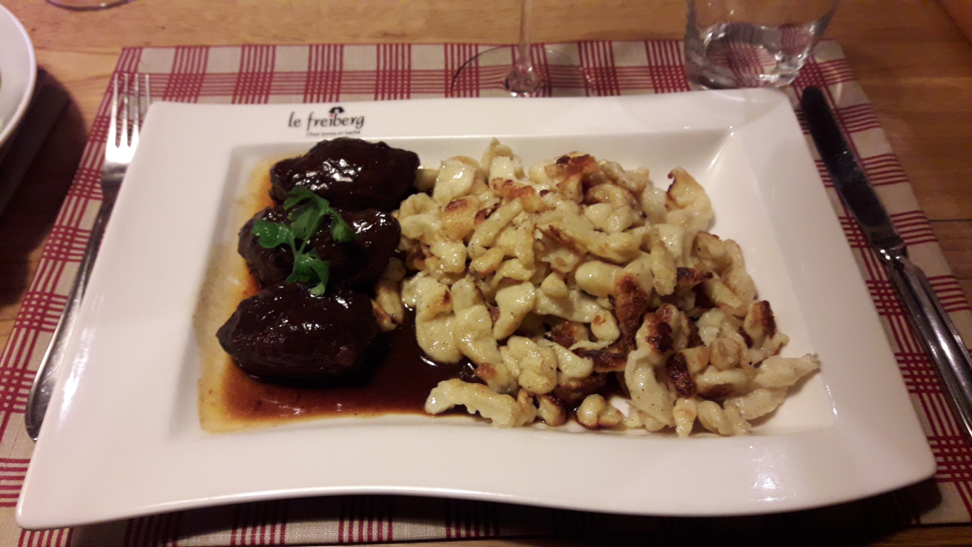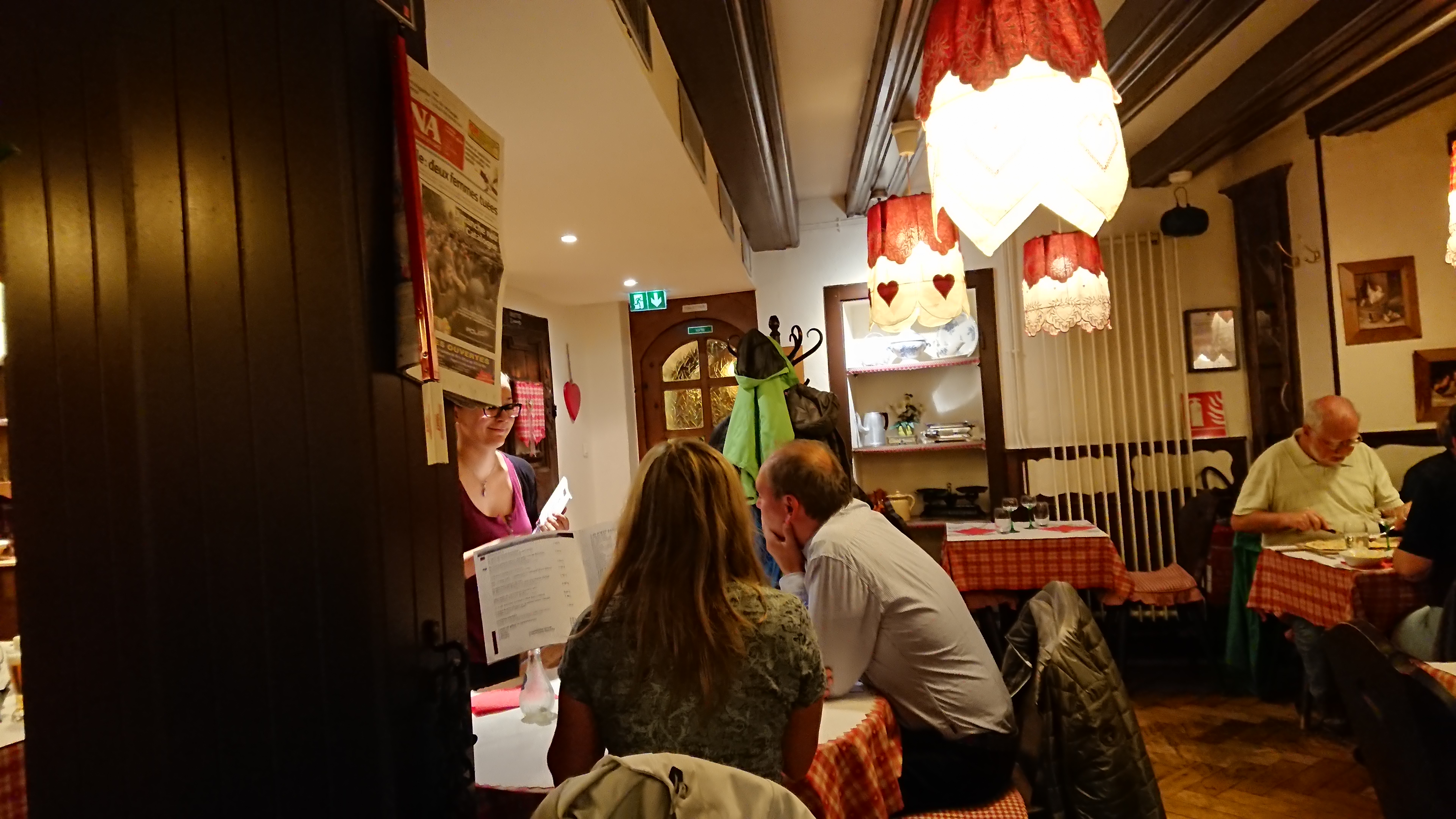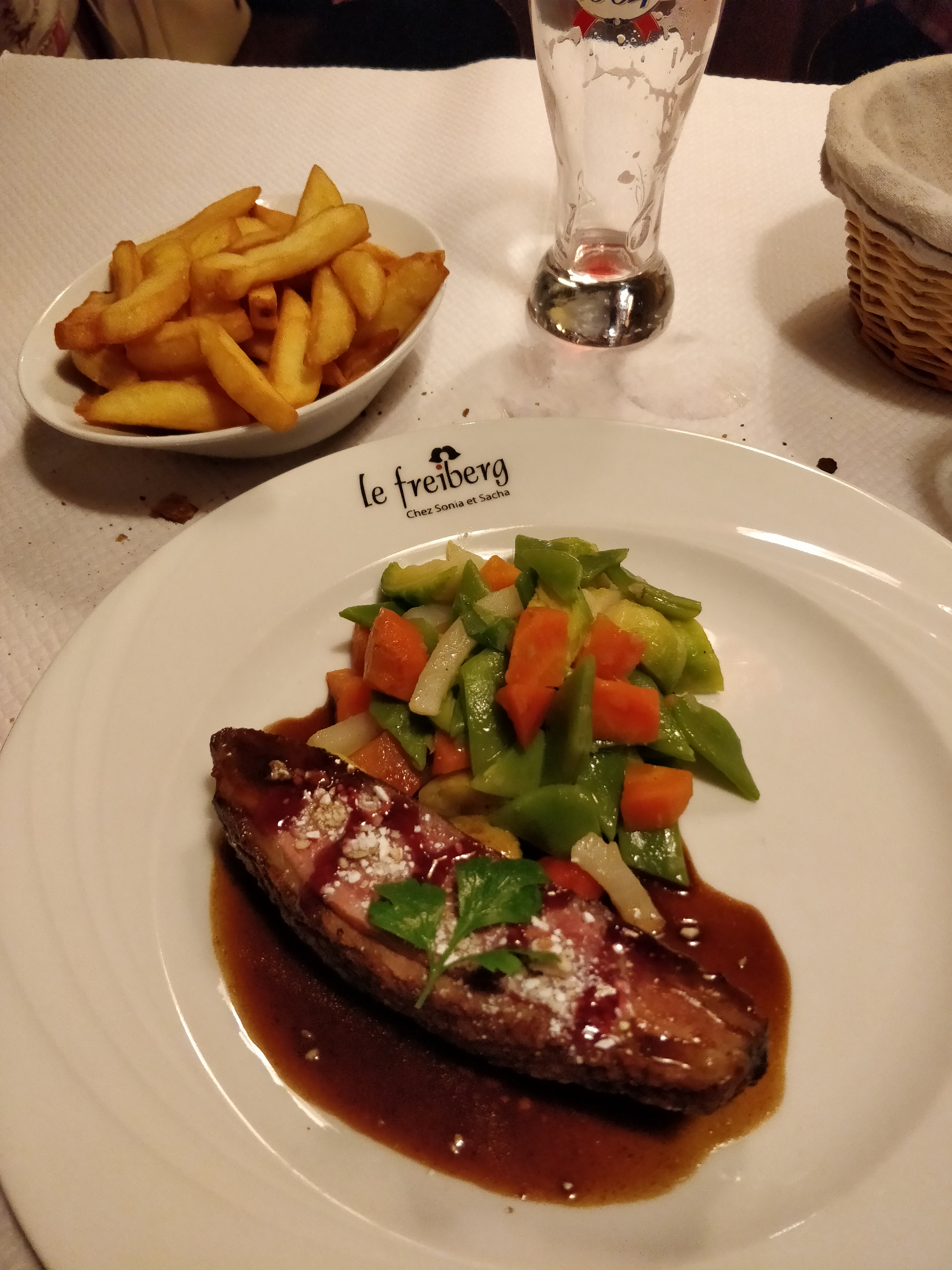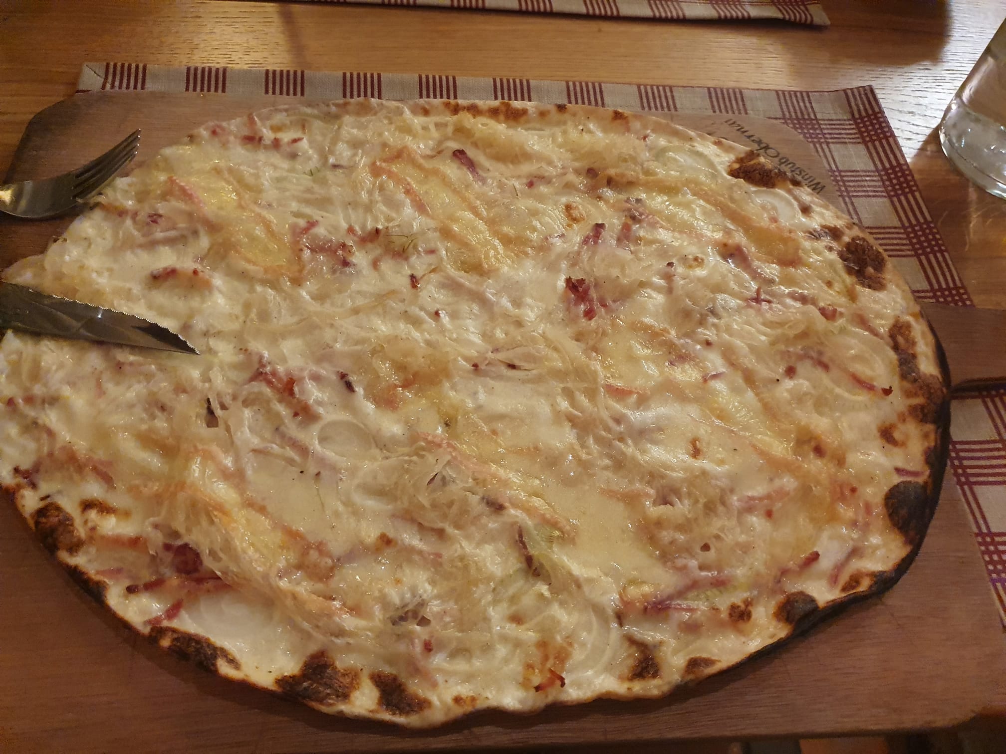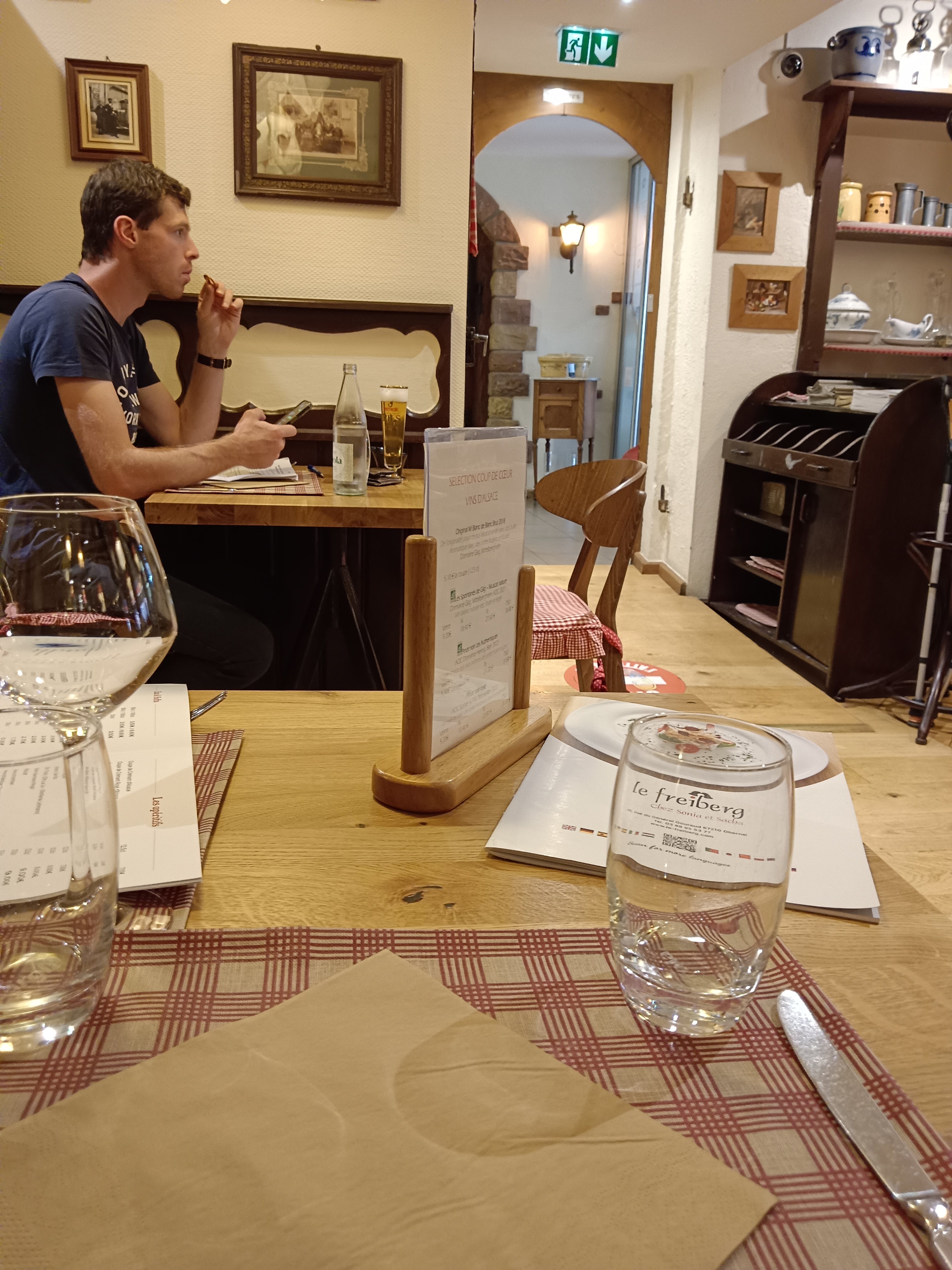 Cuisine traditionnelle et cadre chaleureux pour un tarif tout à fait raisonnable ! Attention, les tartes flambées n’étaient disponibles que le soir lors de notre visite.