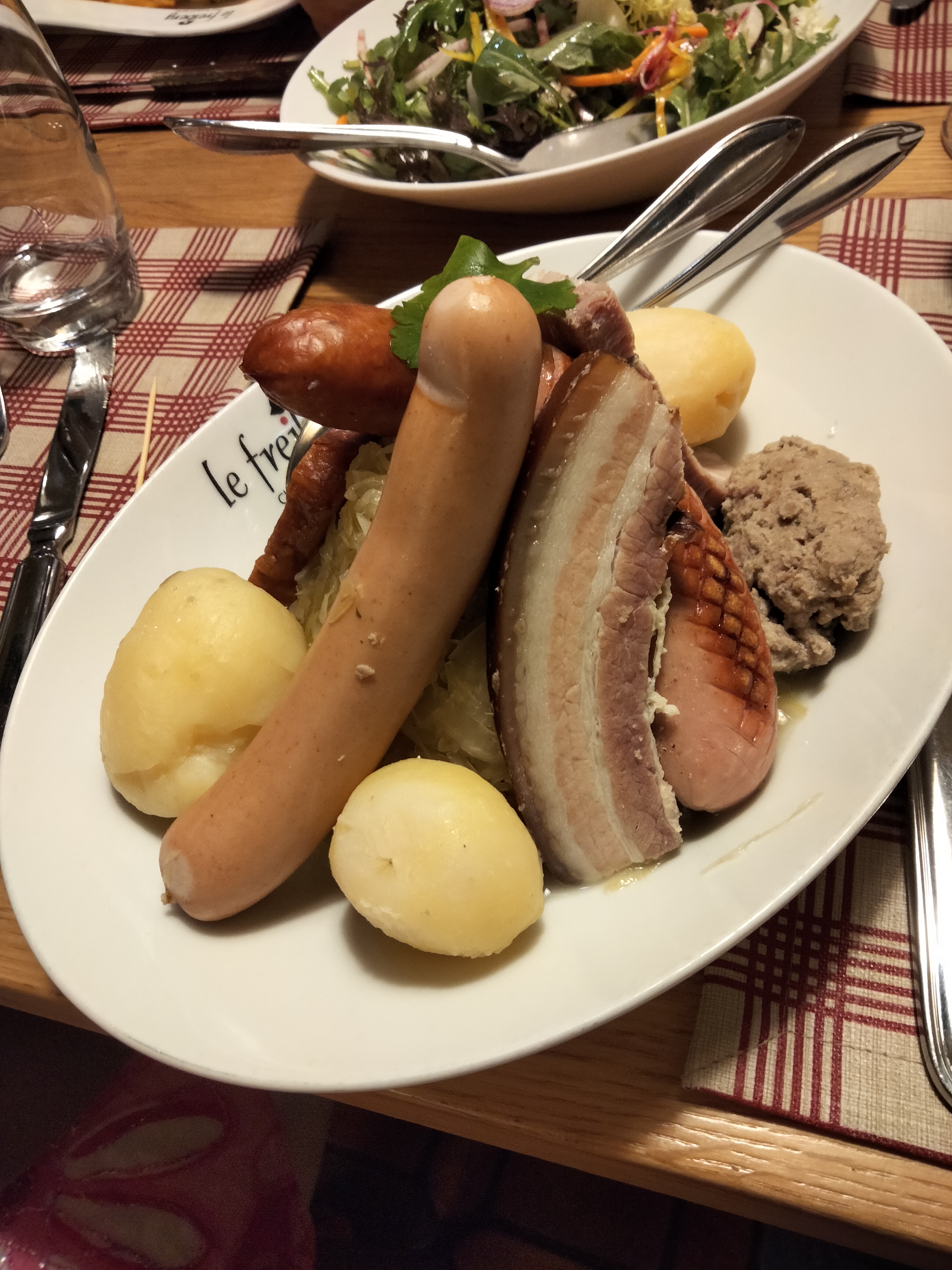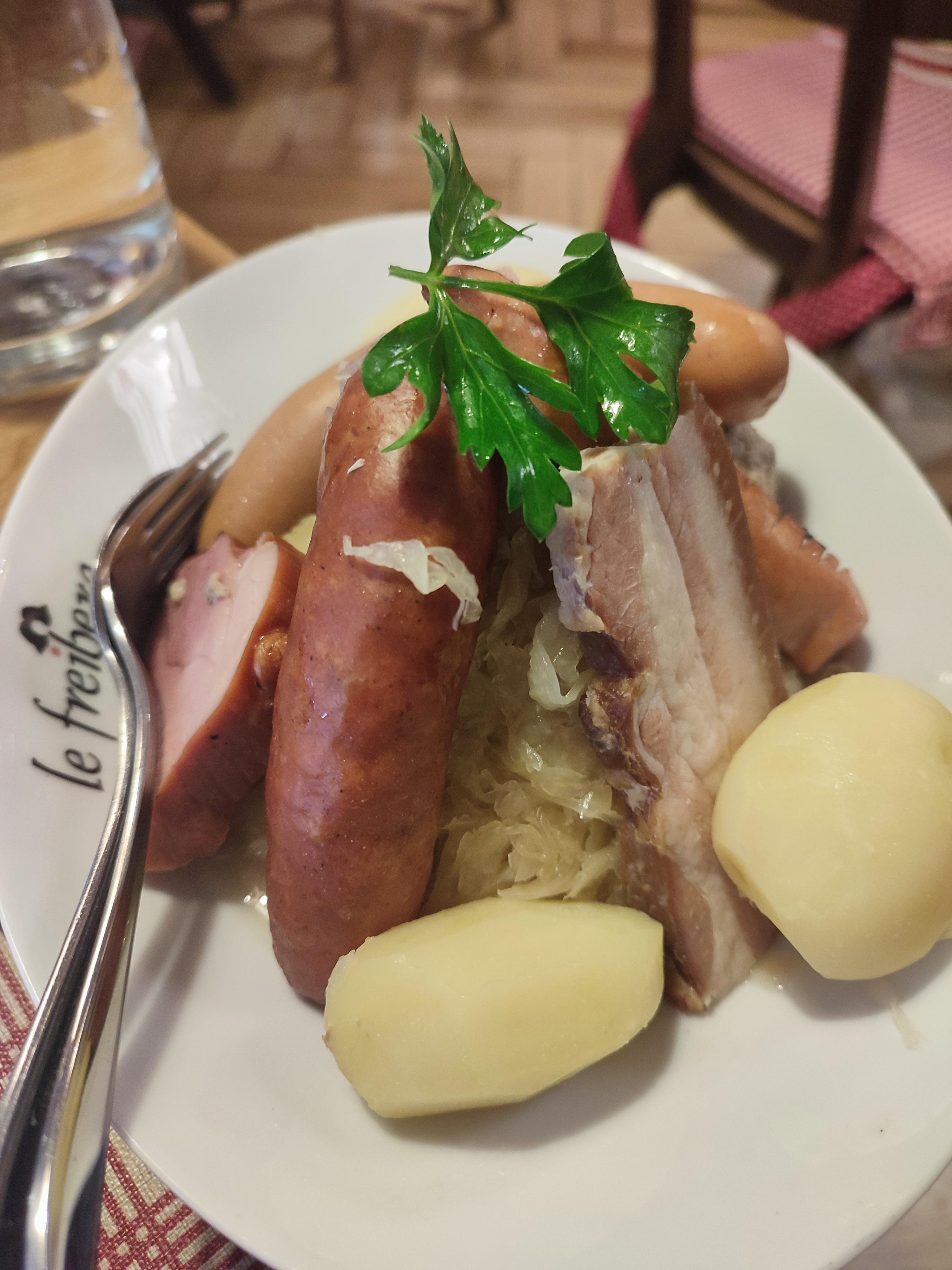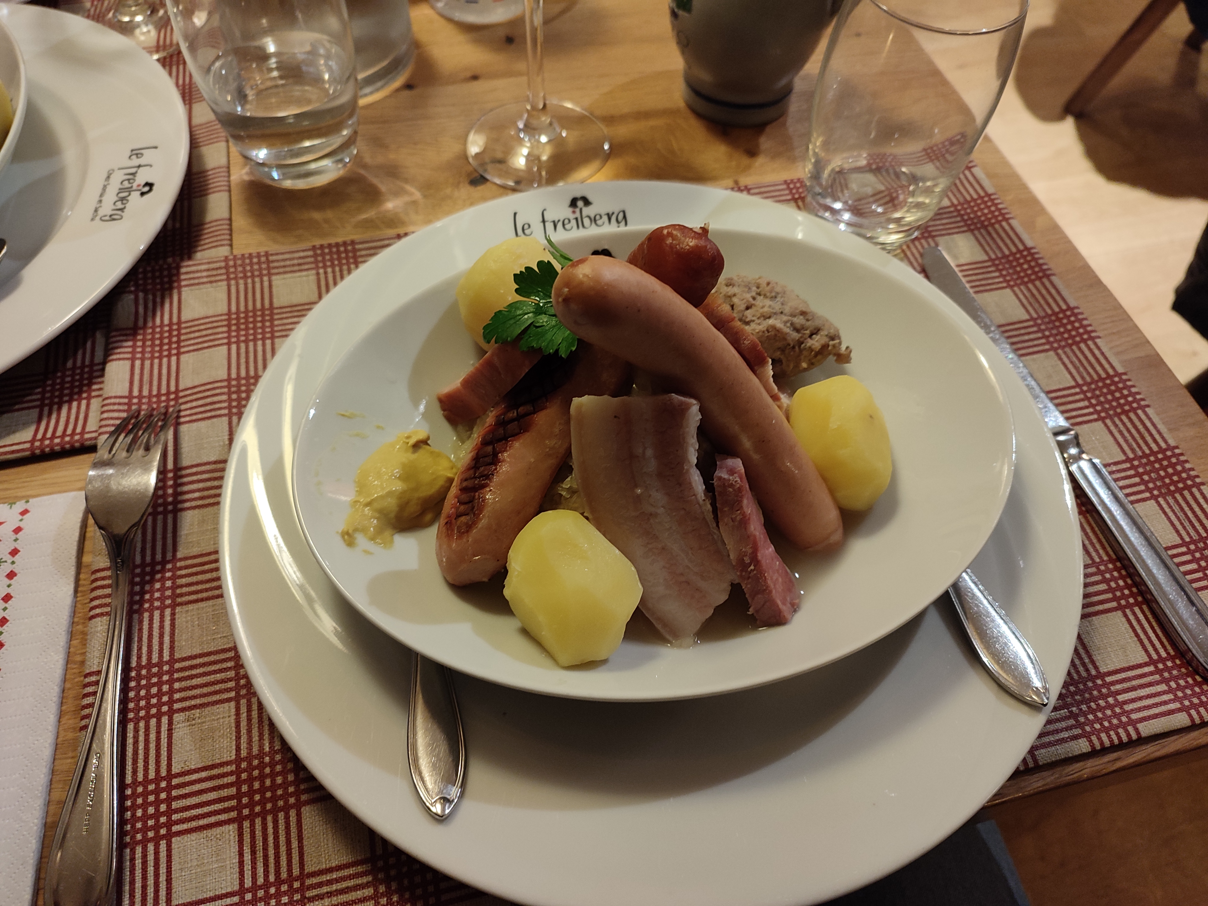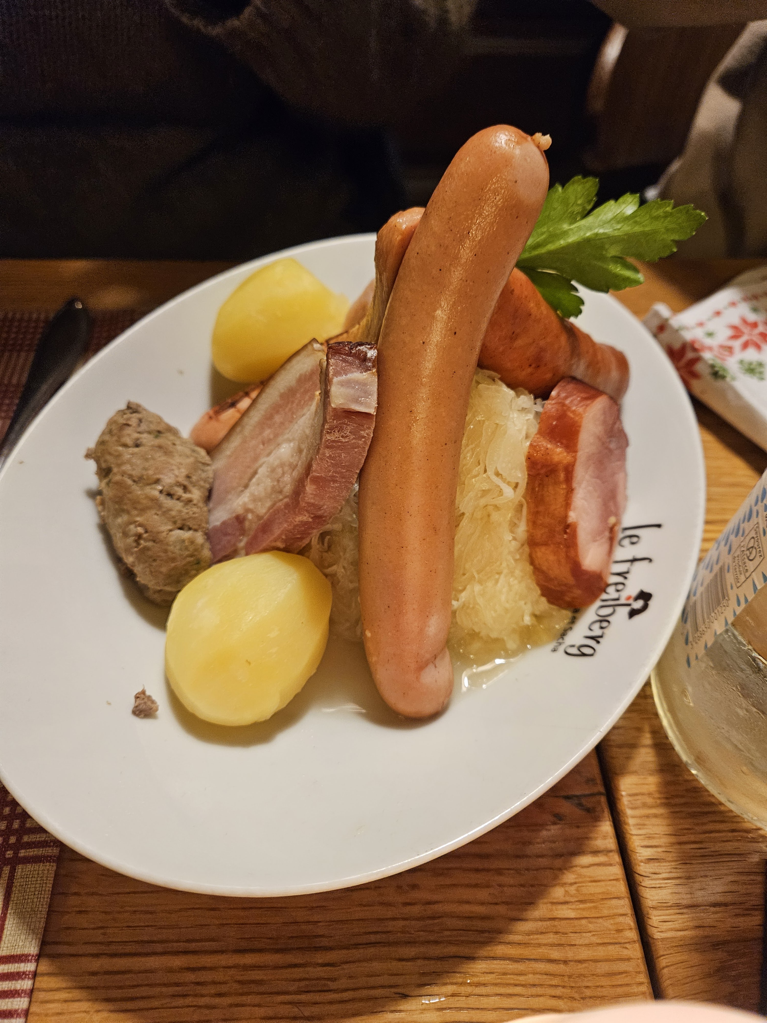 Tout était parfait. Plats alsaciens extrêmement bien faits, à la fois simples, bons et avec un vrai souci du détail. Le service en salle était particulièrement accueillant, gommant toute difficulté et rapide. Très bon pinot. Belle salle avec de l'espace entre les tables. Accueil des enfants parfait.