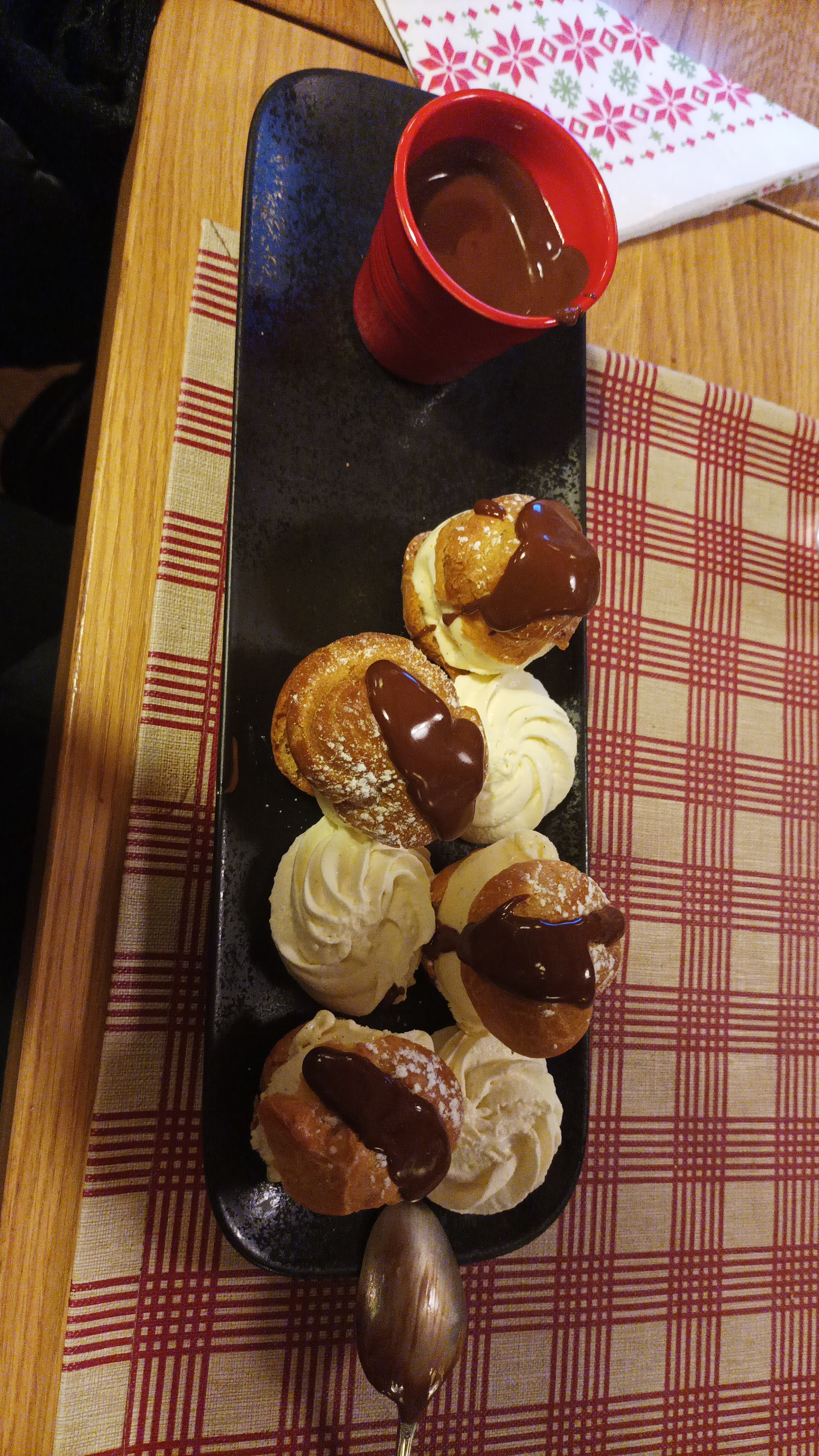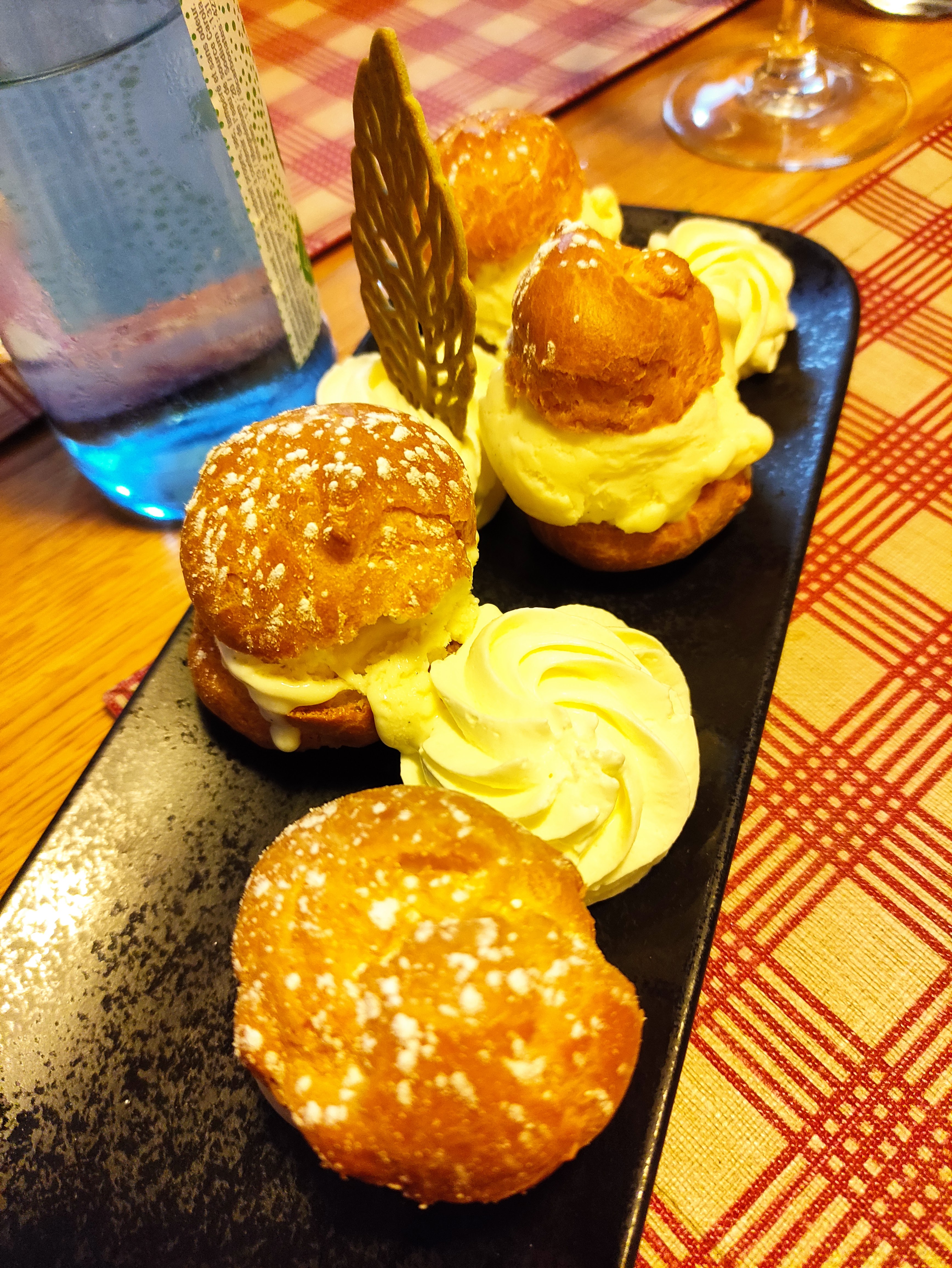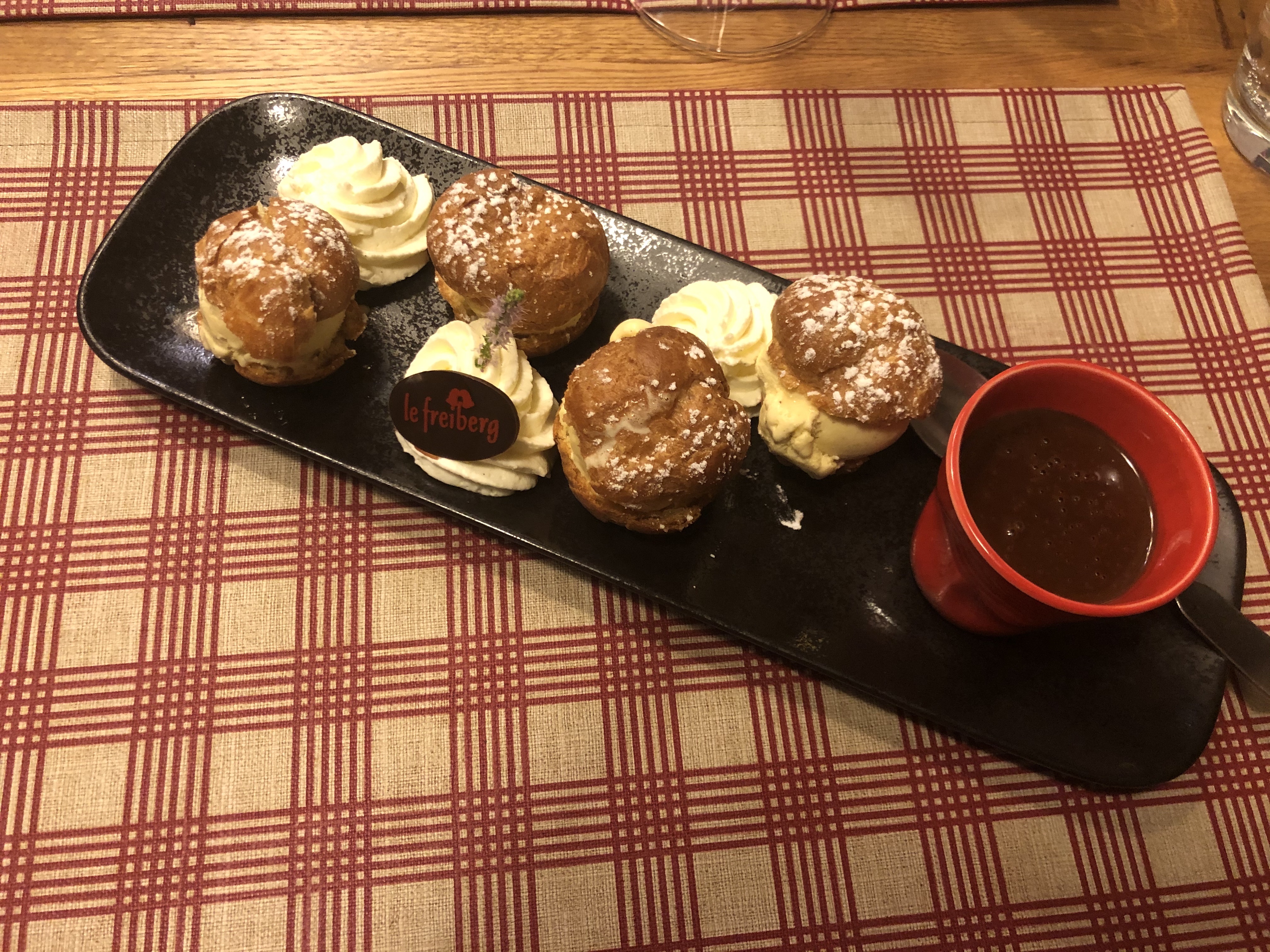 Petit restaurant sympathique avec une bonne cuisine et les serveuses souriantes. En photo le menu Winstub : escargot en entrée, magret de canard en plat et dessert au choix à la carte (excepté café gourmand... Dommage...) Du coups profiteroles. J'y repasserais si je suis à nouveau dans le coin d'Obernai.