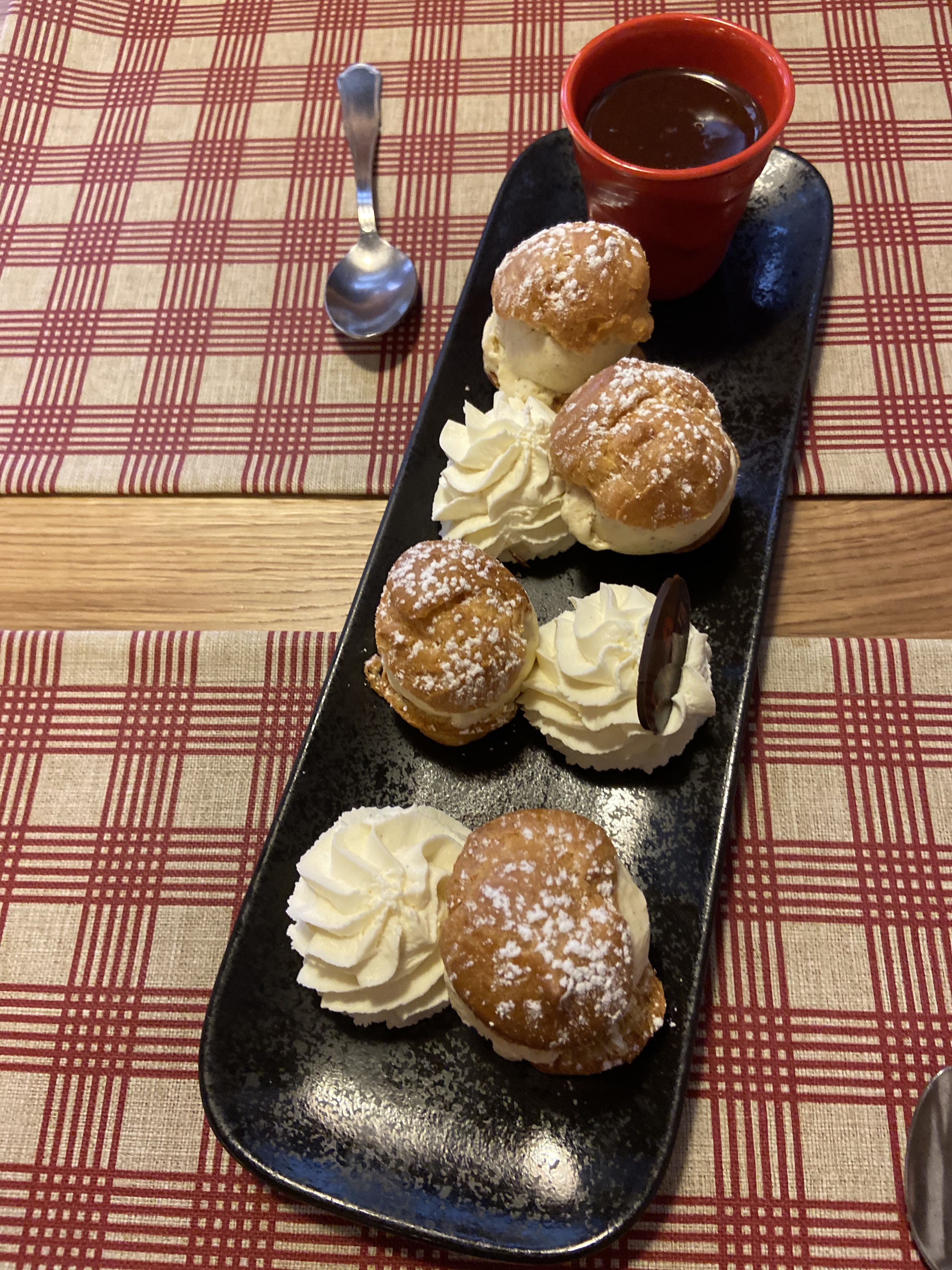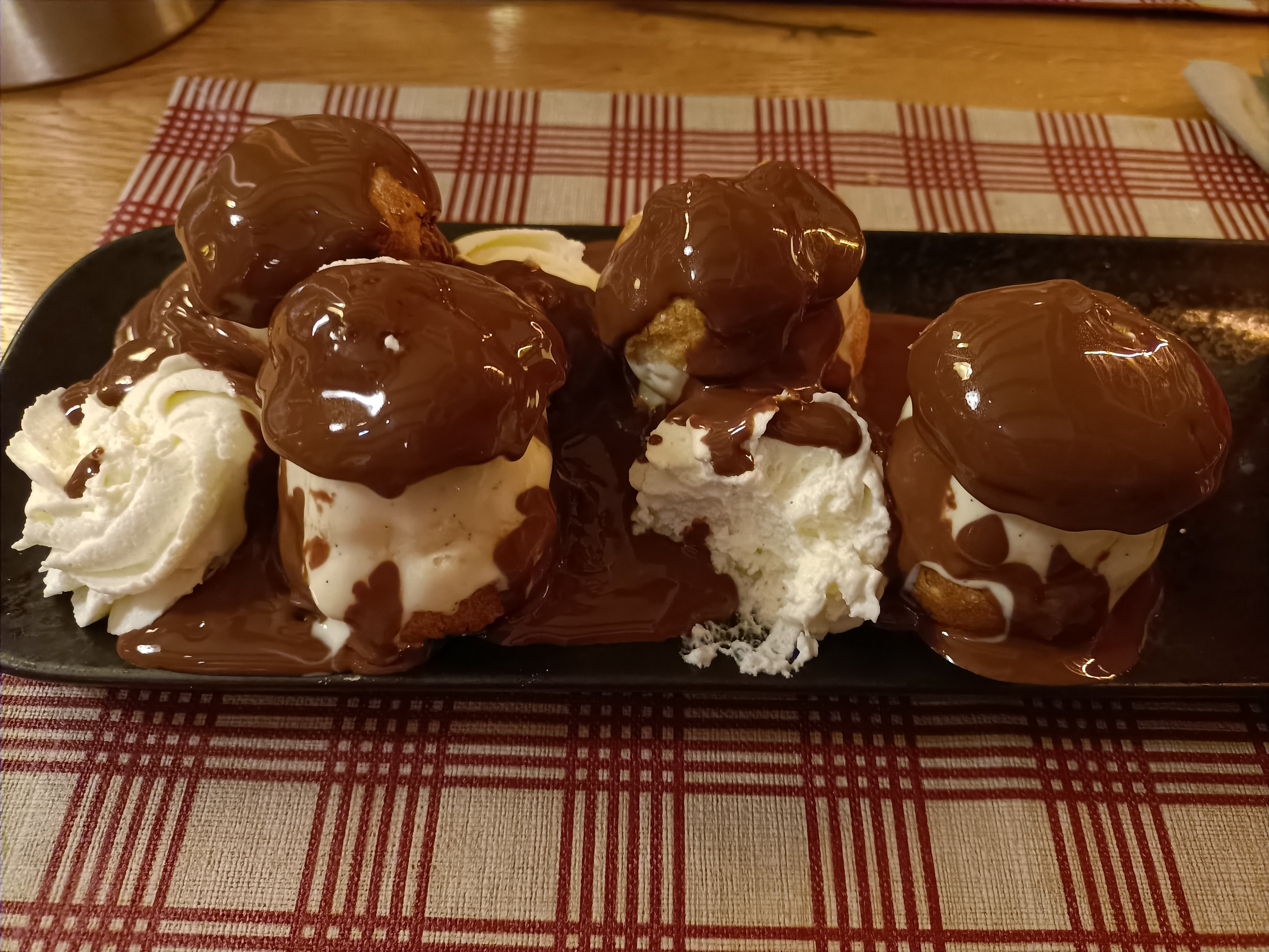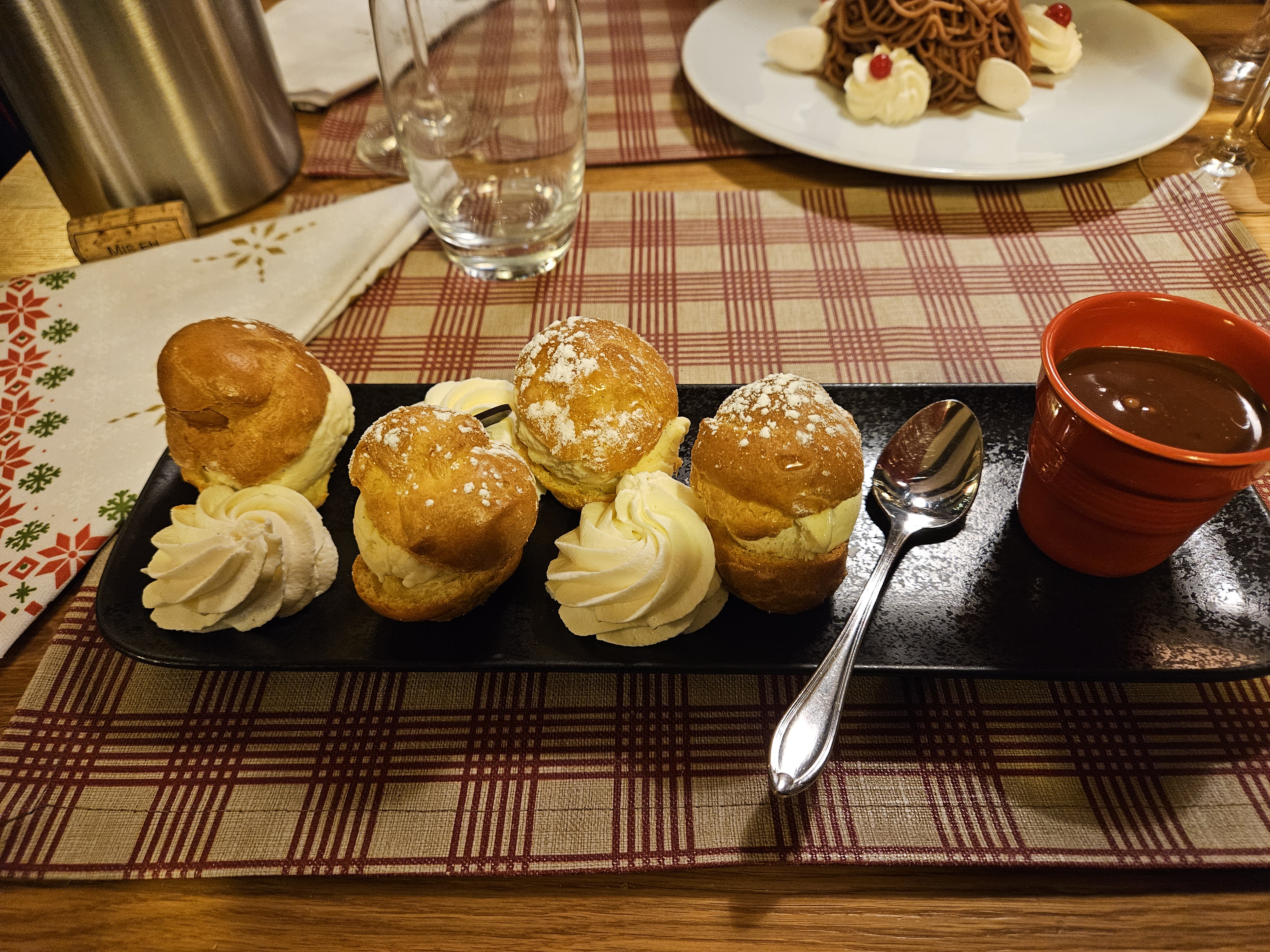 Petit restaurant sympathique avec une bonne cuisine et les serveuses souriantes. En photo le menu Winstub : escargot en entrée, magret de canard en plat et dessert au choix à la carte (excepté café gourmand... Dommage...) Du coups profiteroles. J'y repasserais si je suis à nouveau dans le coin d'Obernai.
