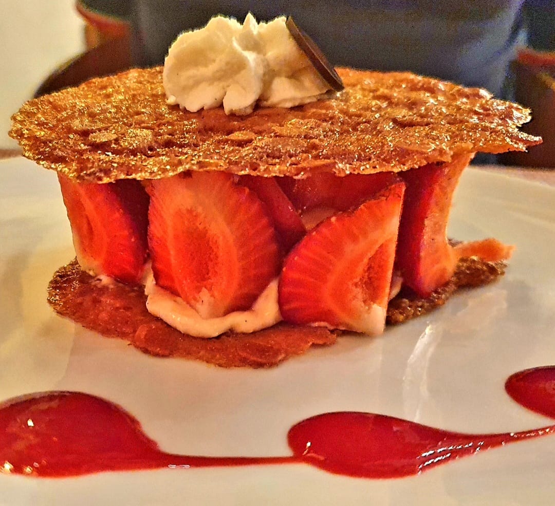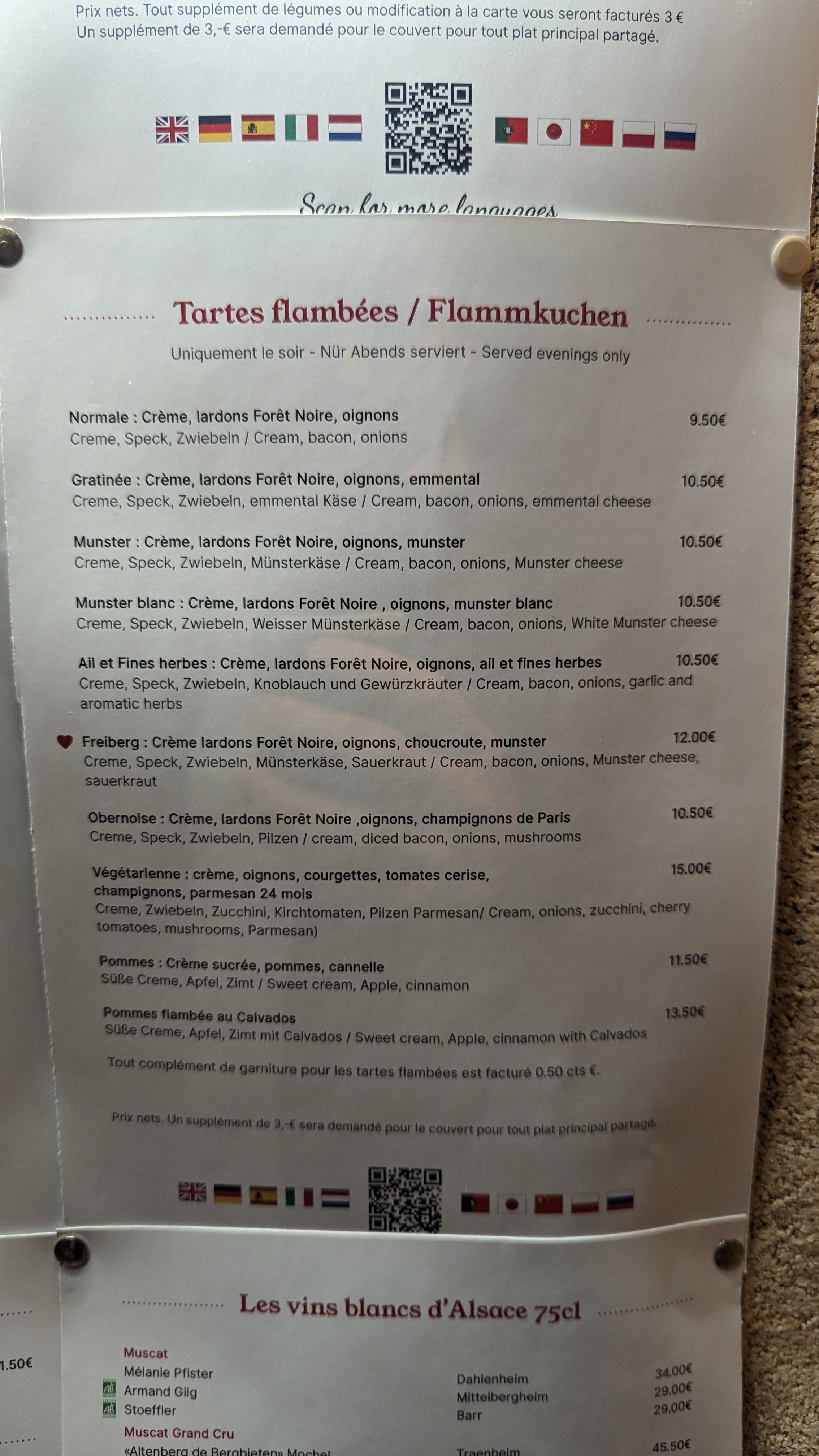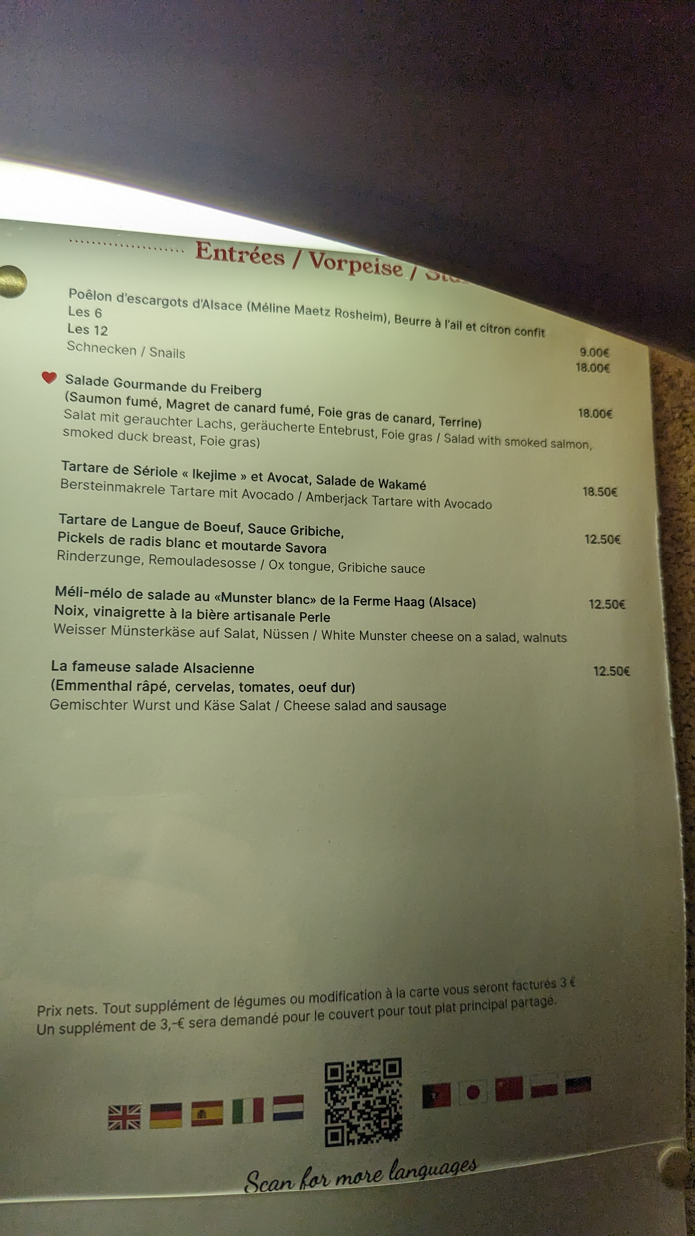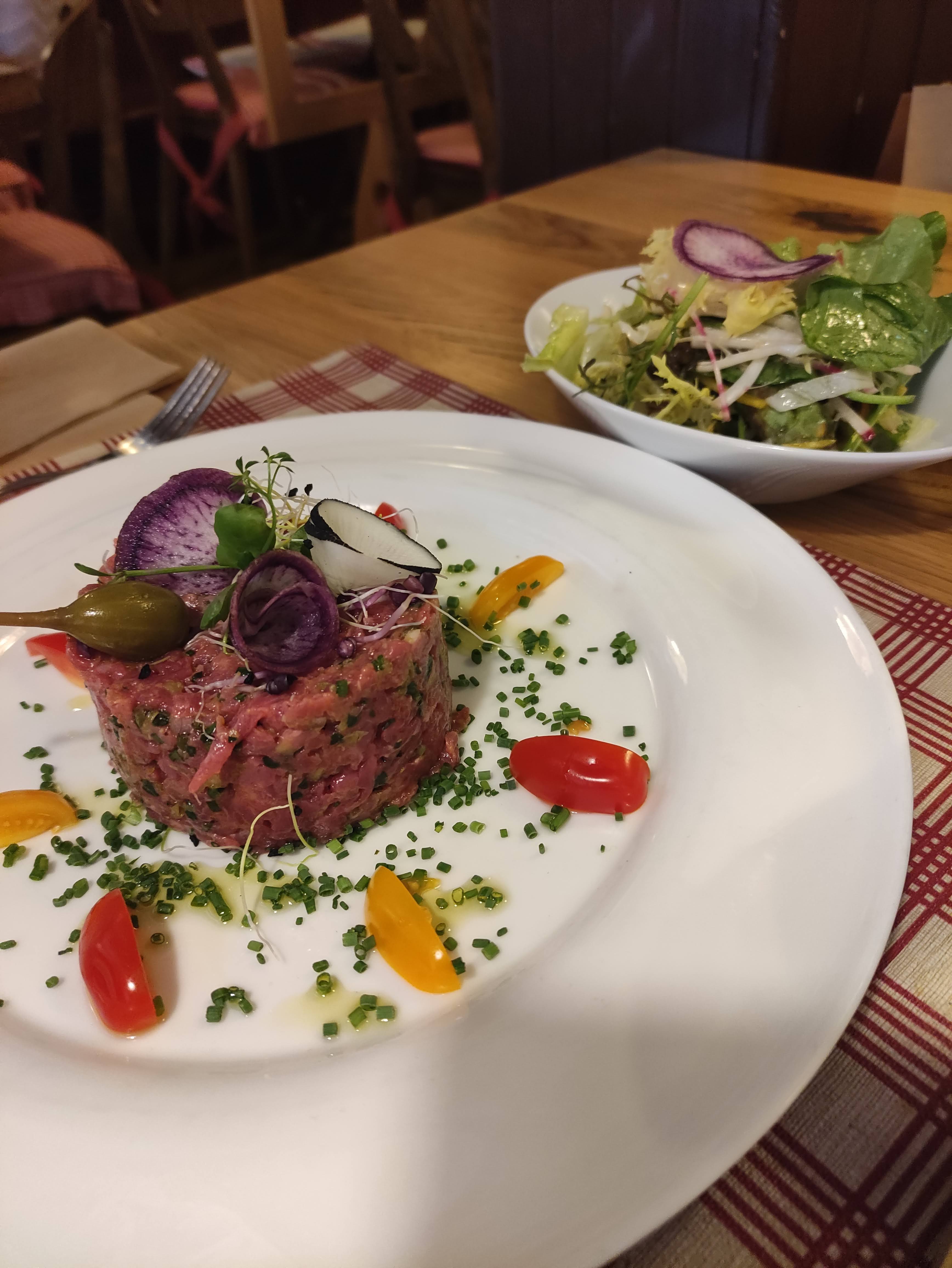 c’est un restaurant avec une cuisine généreuse, de bons plats, un service enjoué et agréable 😊 ! Nous avons découvert le vin klevener de la région, donc merci pour ce conseil ! Et j’ajoute que le tiramisu était délicieux mais aurait pu avoir quelques cerises kirsch en plus !