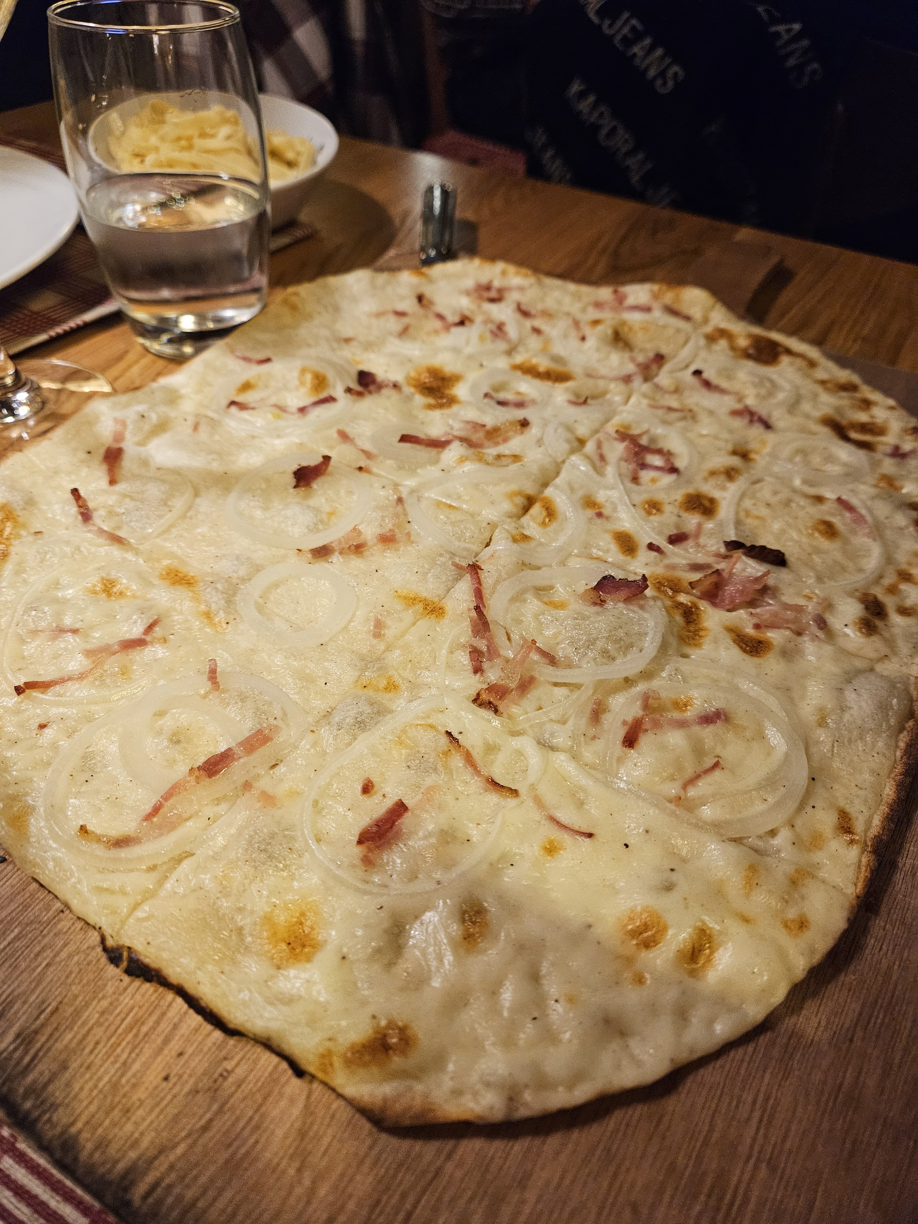 Tous les ingrédients étaient rassemblés pour passer un moment très agréable dans ce restaurant au décor alsacien typique qui rend le cadre très chaleureux. Les tartes flambées sont excellentes et bien garnies. Nous avons testé celle à la choucroute et au munster et c'était une véritable tuerie ! Un peu calorique certes mais elle vaut le détour. La tarte flambée aux pommes arrosée quant à elle est un plaisir des yeux (belle subtilité dans la pose des très fines lamelles de pommes) mais également un délice pour les papilles. Le personnel est très aimable et serviable, qui fait preuve de sérieux et de décontraction en même temps. On y retourne quand ?