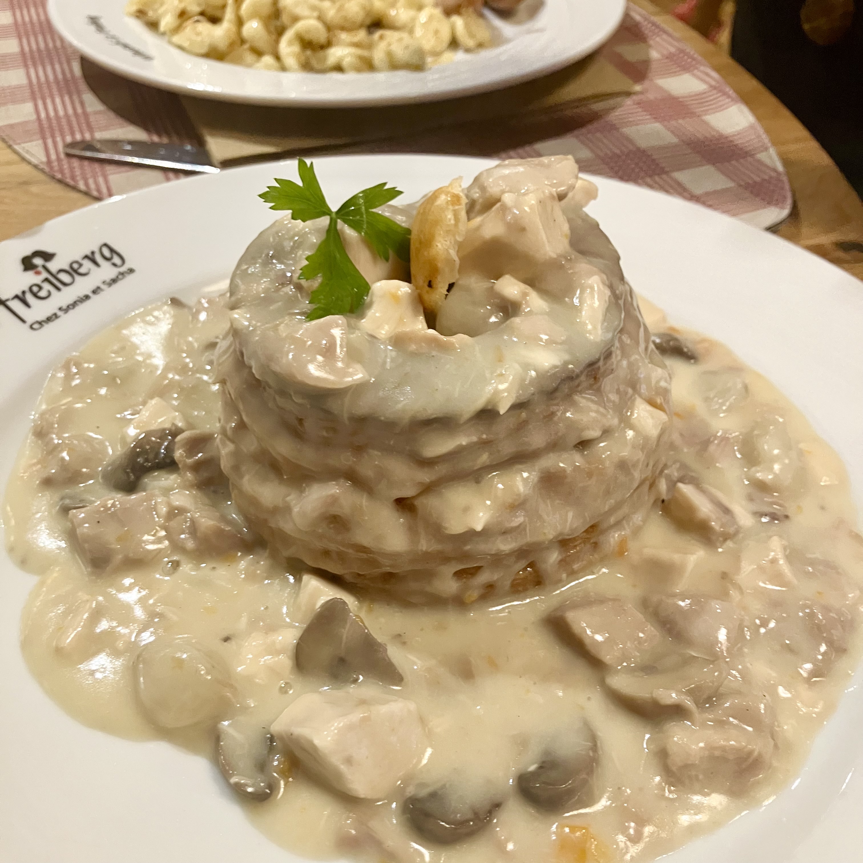 Le Freiberg est une excellente table. Pour ma part j'y ai mangé une très bonne bouchée à la reine. On sent bien de goût du beurre, la volaille et le veau sont bien présents. Un grand festival de saveurs avec ce plat. Merci 😉