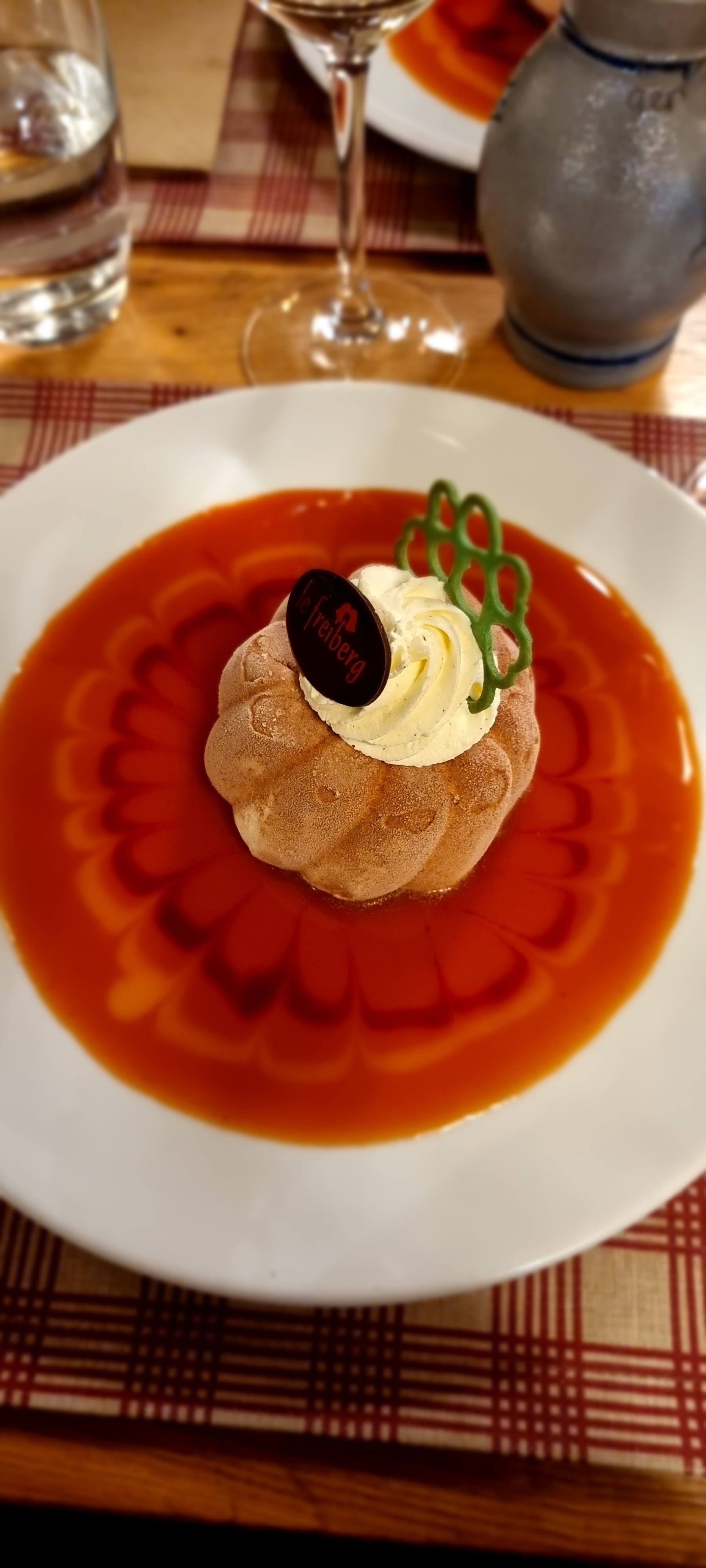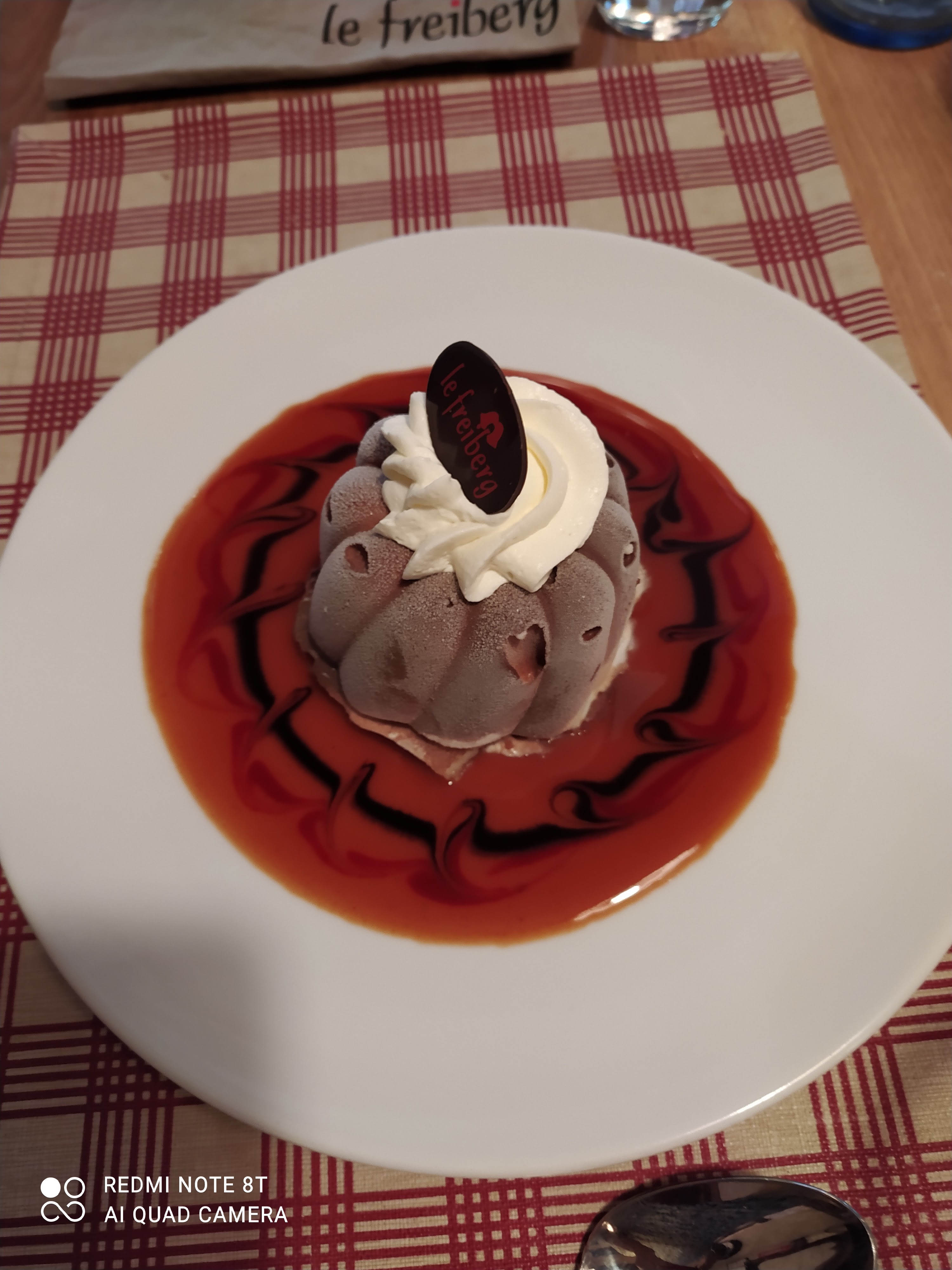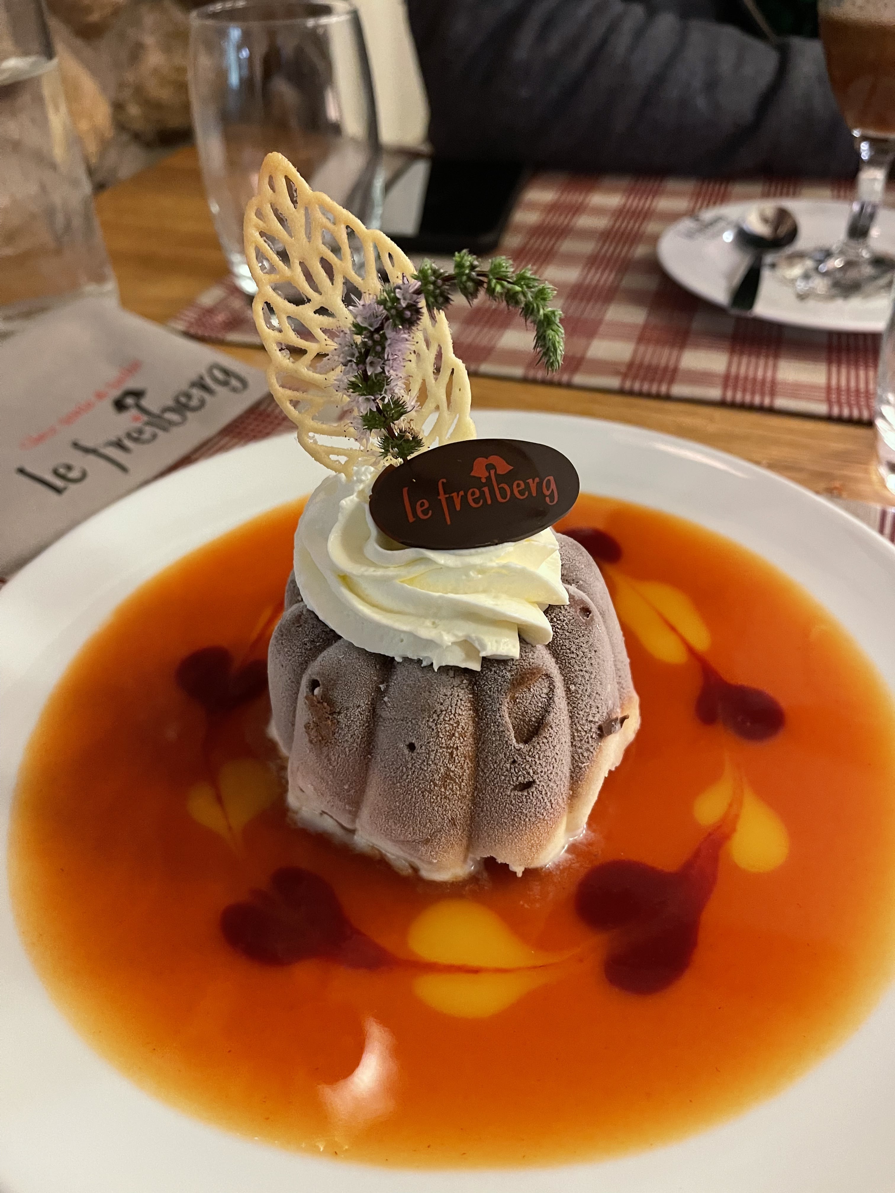 Une Winstub très accueillante, un intérieur pittoresque et une carte très alléchante. Un super point c'est cette vue sur le travail en cuisine car la dite cuisine a des cloisons vitrées permettant entre autres aux clients d'admirer le travail de dressage des plats qui vont arriver sur leur table. Ma compagne et moi-même avons commandé une bouchée à la reine impériale (Vol au vent). C'est un plat succulent que je connaissais déjà bien sûr mais que j'ai trouvé nettement supérieur au Freiberg. Tout est fait maison dans ce plat. La sauce est exquise. L'originalité réside dans les petits morceaux de poulet présents dans la garniture de la bouchée. La bouchée déjà bien garnie est servie avec des pâtes alsaciennes qui se marient très bien avec l'ensemble bouchée et sauce aux champignons. Je recommande aux amateurs. En dessert j'ai commandé une meringue glacée (deux boules de glace, vanille bourbon et framboise, servies entre deux meringues dressées de part et d'autre des boules de glace, le tout surmonté d'une chantilly maison fantastique). Ma compagne a commandé une île flottante tout aussi succulente. Nous sommes sortis enchantés de notre visite au Freiberg et assurément nous y retournerons pour découvrir les autres plats présents sur la carte. Nous recommandons cette Winstub. Un conseil cependant, l'endroit plaît beaucoup, je vous conseille vivement de réserver avant de venir 👍😊. (août 2020) De retour à Obernai en juillet 2021, immanquablement nous sommes retournés au Freiberg et avons re-découvert la bouchée à la reine qui est toujours aussi bonne. Nous avons testé un autre dessert, le croustillant aux framboises et crème fouettée à la vanille. Il se présente comme un mille-feuilles fait de fines feuilles de gâteau florentin avec des framboises, garnies chacune de Coulis de framboise, et superposées avec de la crème fouettée à la vanille. Le tout était surmonté d'une fleur de menthe fraîche, une saveur qui vaut le détour et relève le goût des framboises. Un dessert savoureux et pour autant très léger. Le dessert de ma compagne était une crème brûlée à la vanille et chocolat Ivoire. Délicieuse. Je conseille également. Le restaurant le Freiberg est une valeur sûre 👍😊