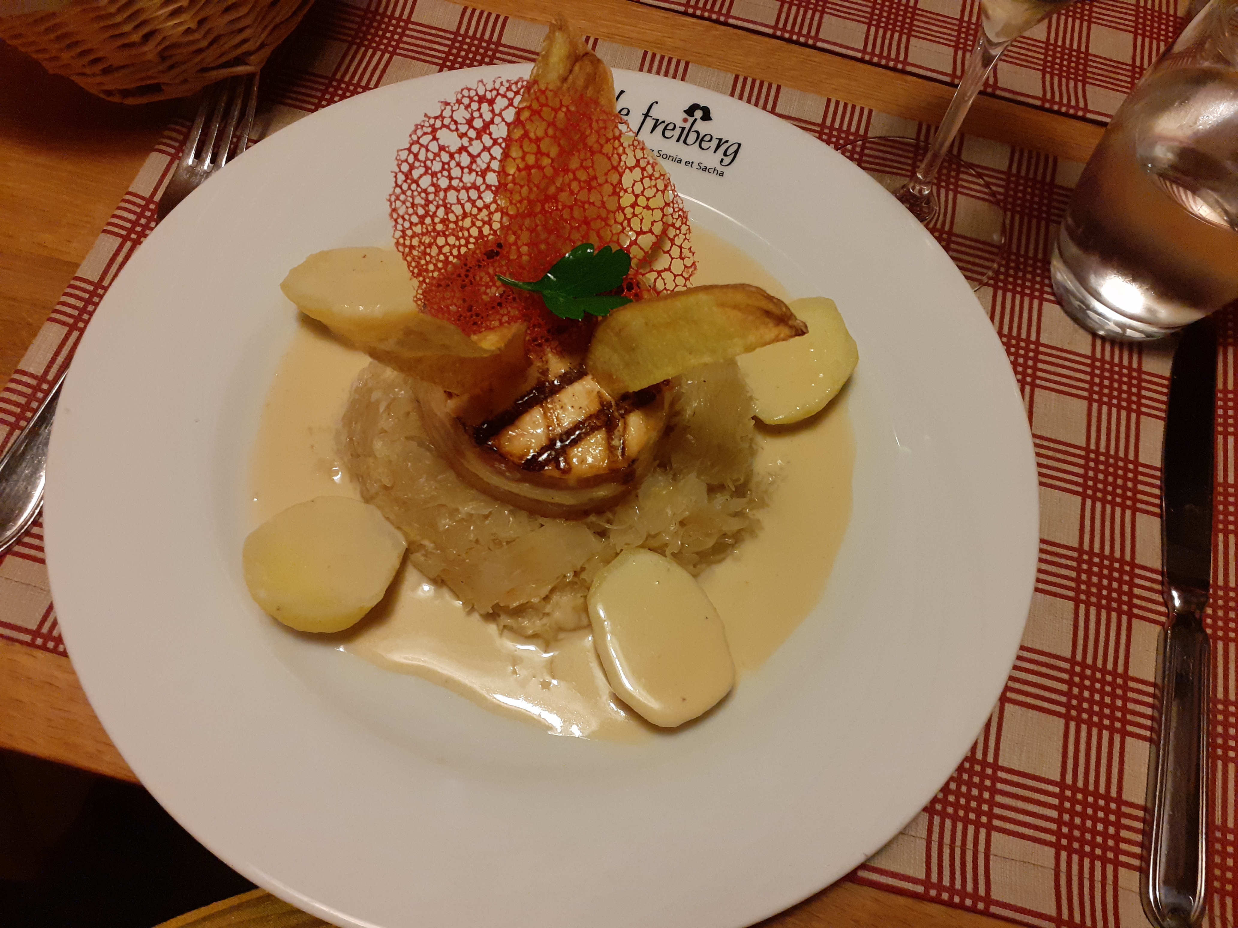 Le foie gras est succulent! La choucroute très bonne! La tarte fine au munster extra!