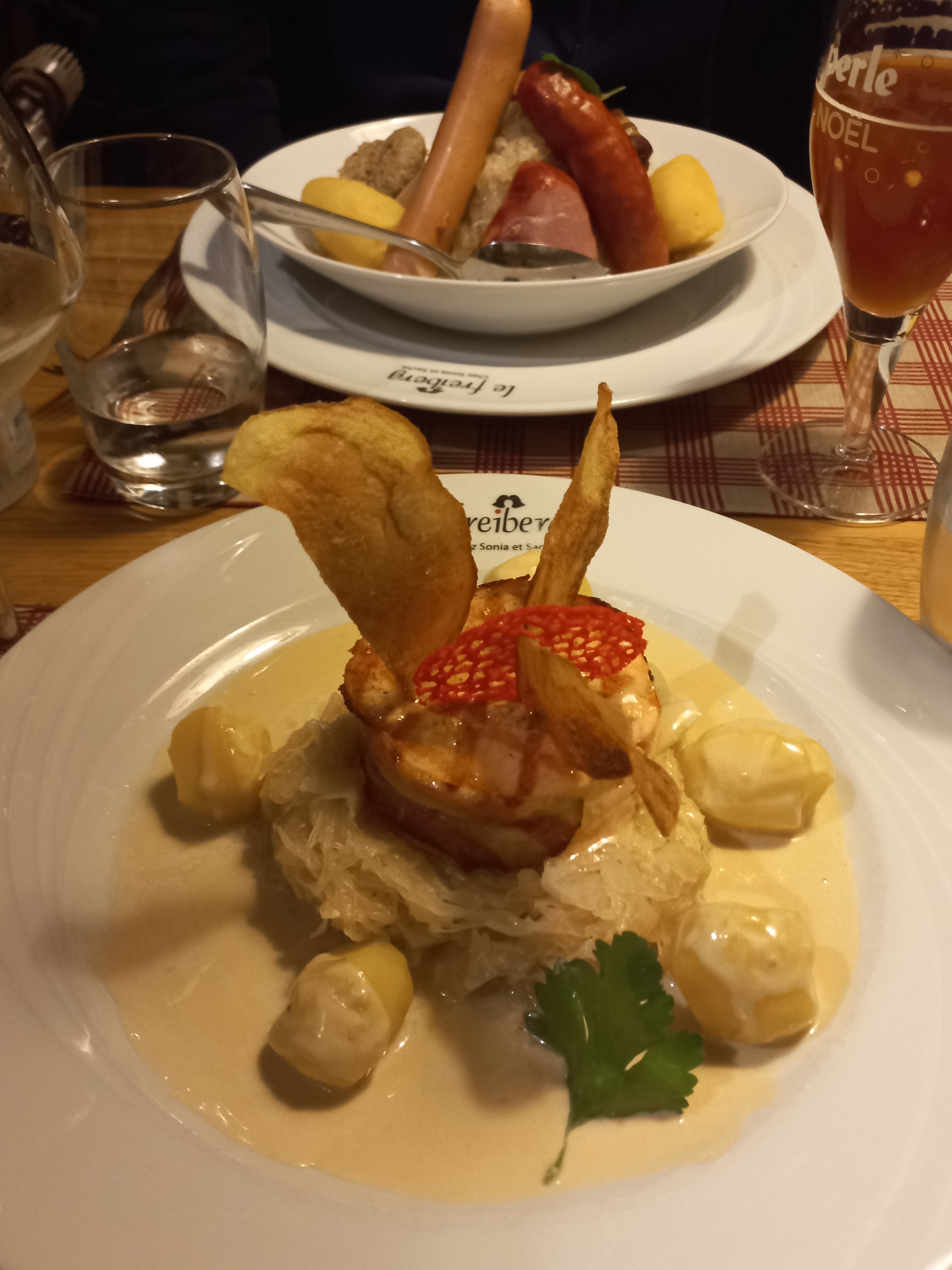 Super Resto, avec des plats alsaciens, leur choucroute est vraiment un délice. Je la recommande fortement leur Boucher à la reine aussi fantastique, je reviendrai.