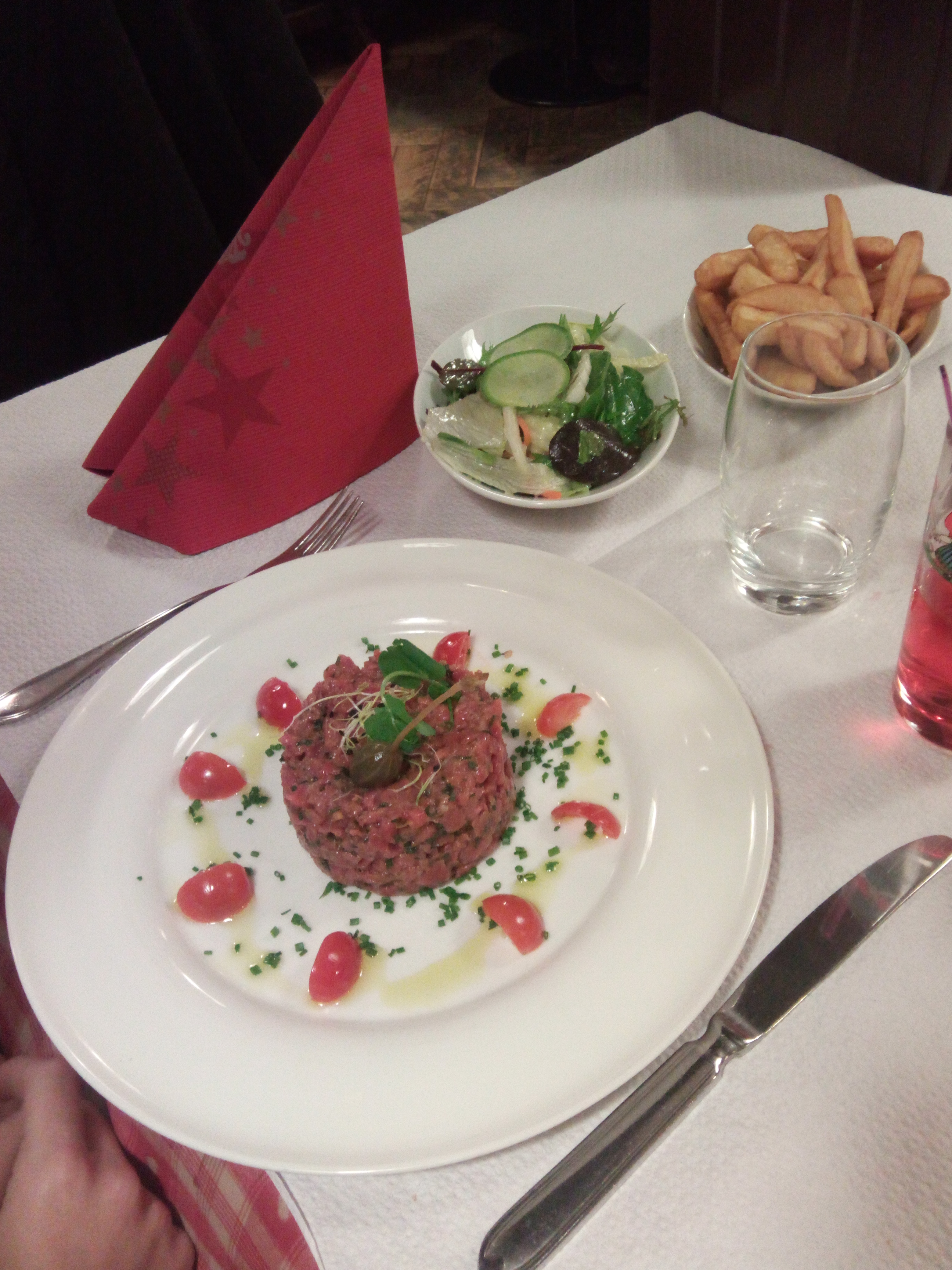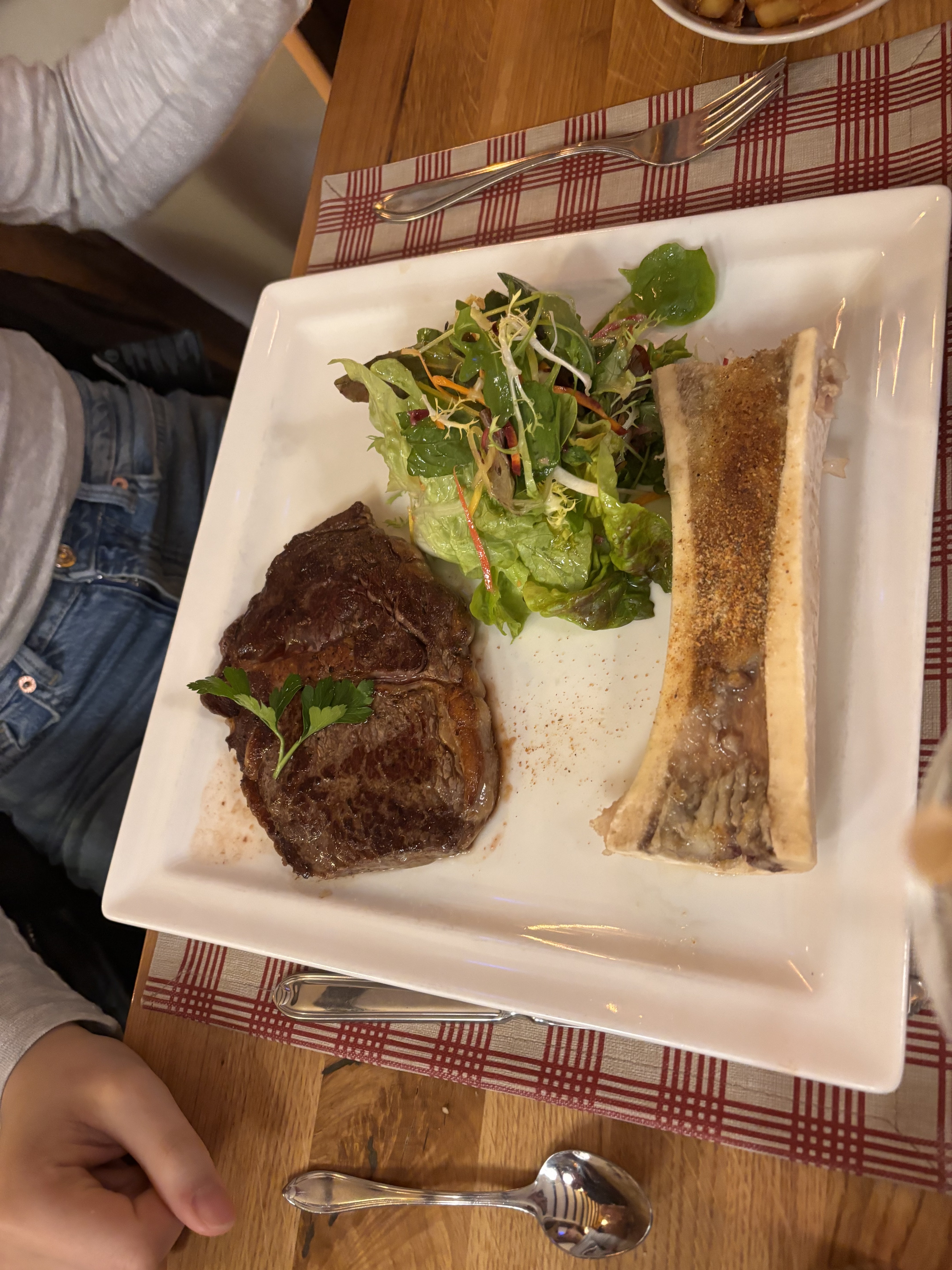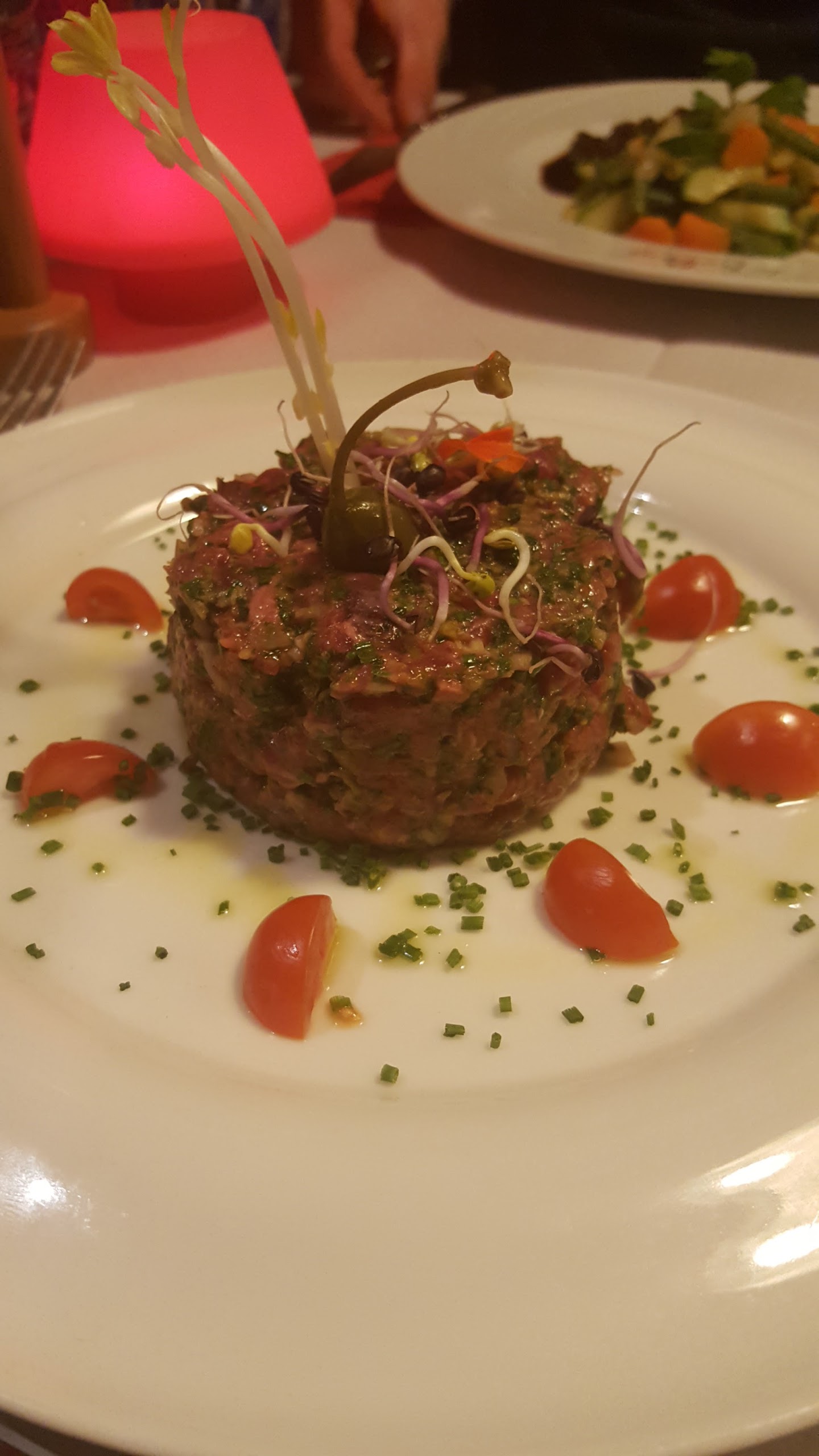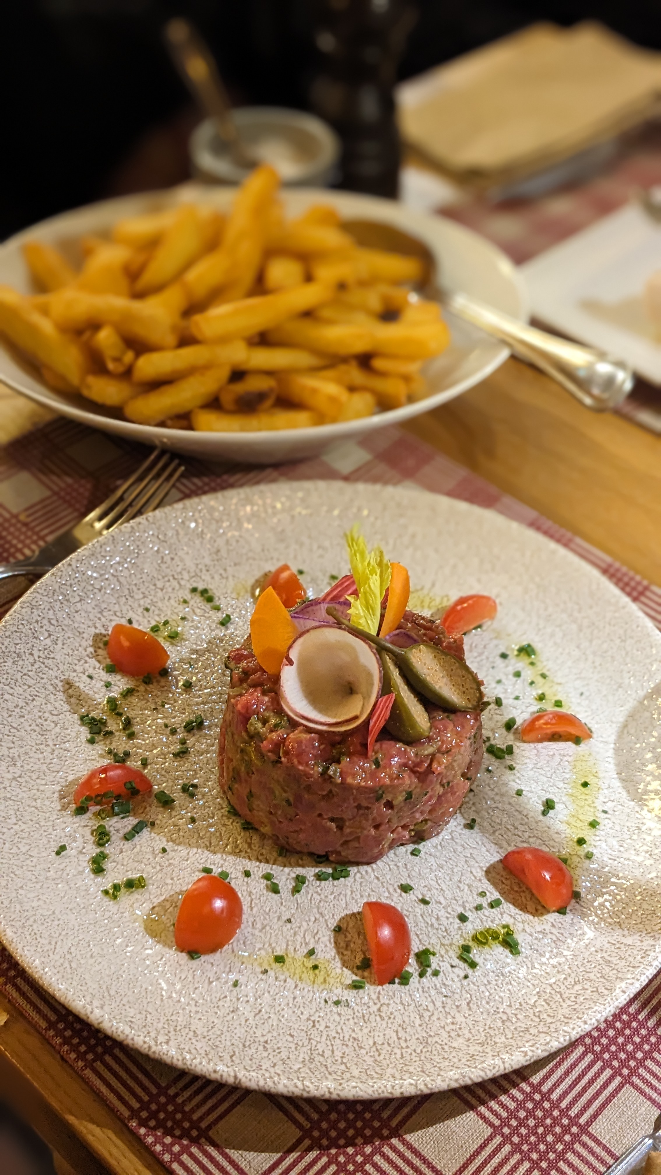 On a très bien mangé, belle présentation et fort justement épicé. Malheureusement quelques petits bémols : On a eu du mal à prendre place . Et ensuite je me suis fait “gronder car j’avais déplacé la table, devenue ainsi bancale Les crémants étaient tièdes. Il nous ont dit qu’il venaient du frigidaire, mais pas depuis quand ils y étaient. Ils nous ont apporté des glaçons !!! Au menu, l’os à moelle est évidemment moins rempli qu’à la carte pour l’entrecôte Ensuite le service s’est bien passé, avec même un peu d’humour, il ne servait à rien de se fâcher. Néanmoins, pas sur que nous y retournions