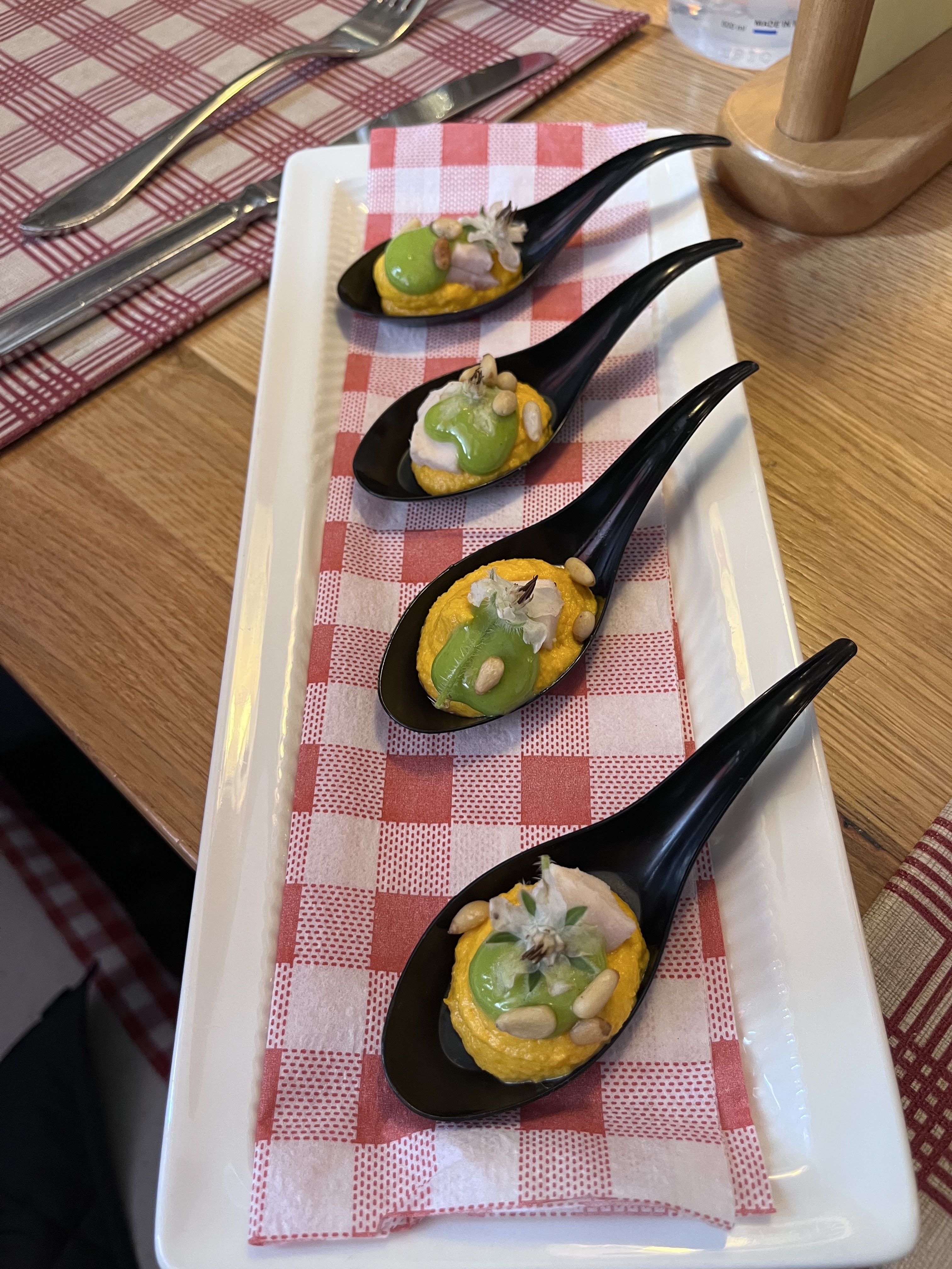 Excellent! Le meilleur velouté de potiron que j’ai jamais mangé! Celui-ci étant, de plus, accompagné d’un foie gras cuit délicieux. Les joues de porc braisées fondent en bouche, et le sandre est parfaitement cuit. Je regrette amèrement de ne pas avoir demandé quels ingrédients faisaient de cette soupe un tel régal. Je rêve de la reproduire à la maison. N’oubliez pas de réserver!