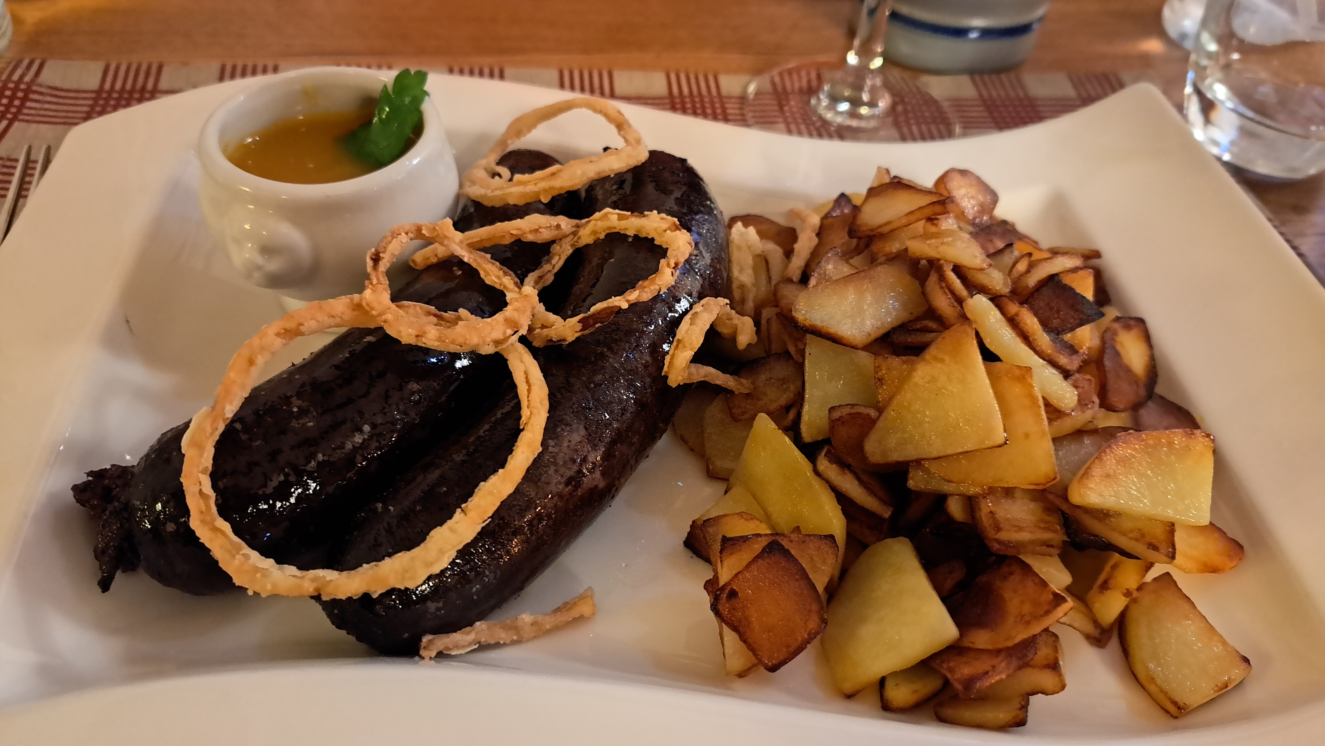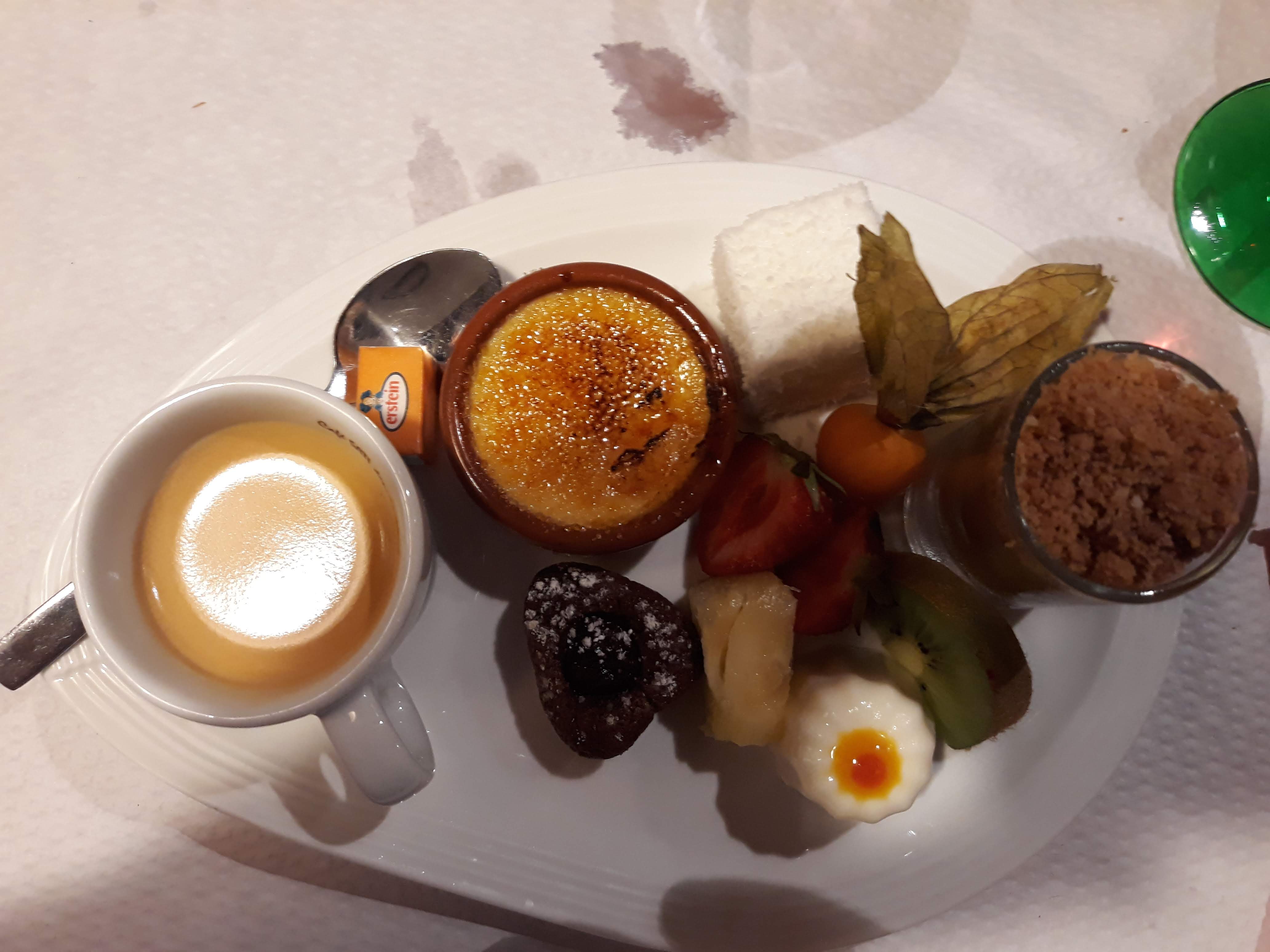 Un très bon accueil doublé d’un très bon dîner composé d’un boudin noir accompagné de pommes de terre oui d’un café gourmand digne de son nom
