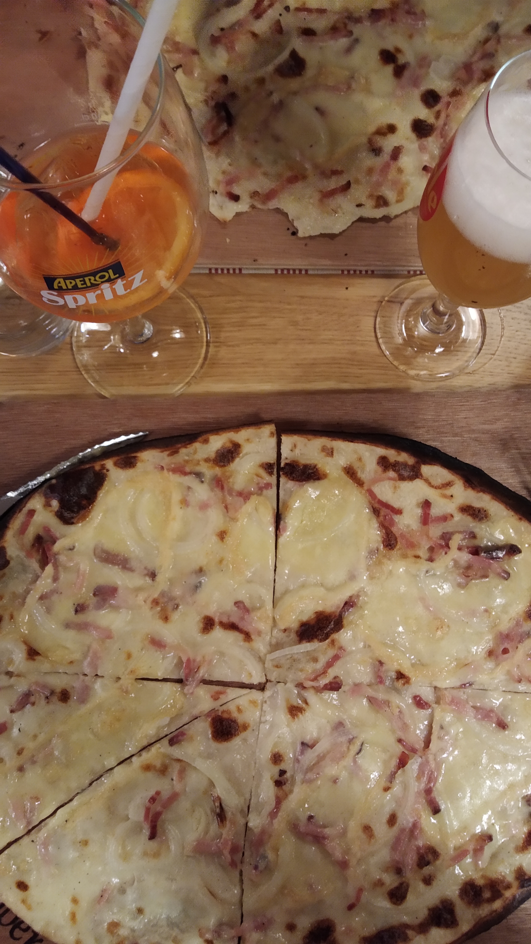 Vraiment génial ! Et super bon ! C'est les meilleures Tartes flambées que j'ai jamais manger ! Habituellement j'aime bien en manger mais sans plus , mais celles là sont vraiment délicieuse !! Évidemment il n'y a pas que des tartes flambées , il y'a pleins d'autres repas traditionnelle et qui sont vraiment excellent ! La déco est très sympa et rappel les couleurs de L'Alsace Le serveur était très abordable et faisait même de l'humour .J'ai vraiment apprécier ma soirée 😊Je reviendrais ça c'est certain !