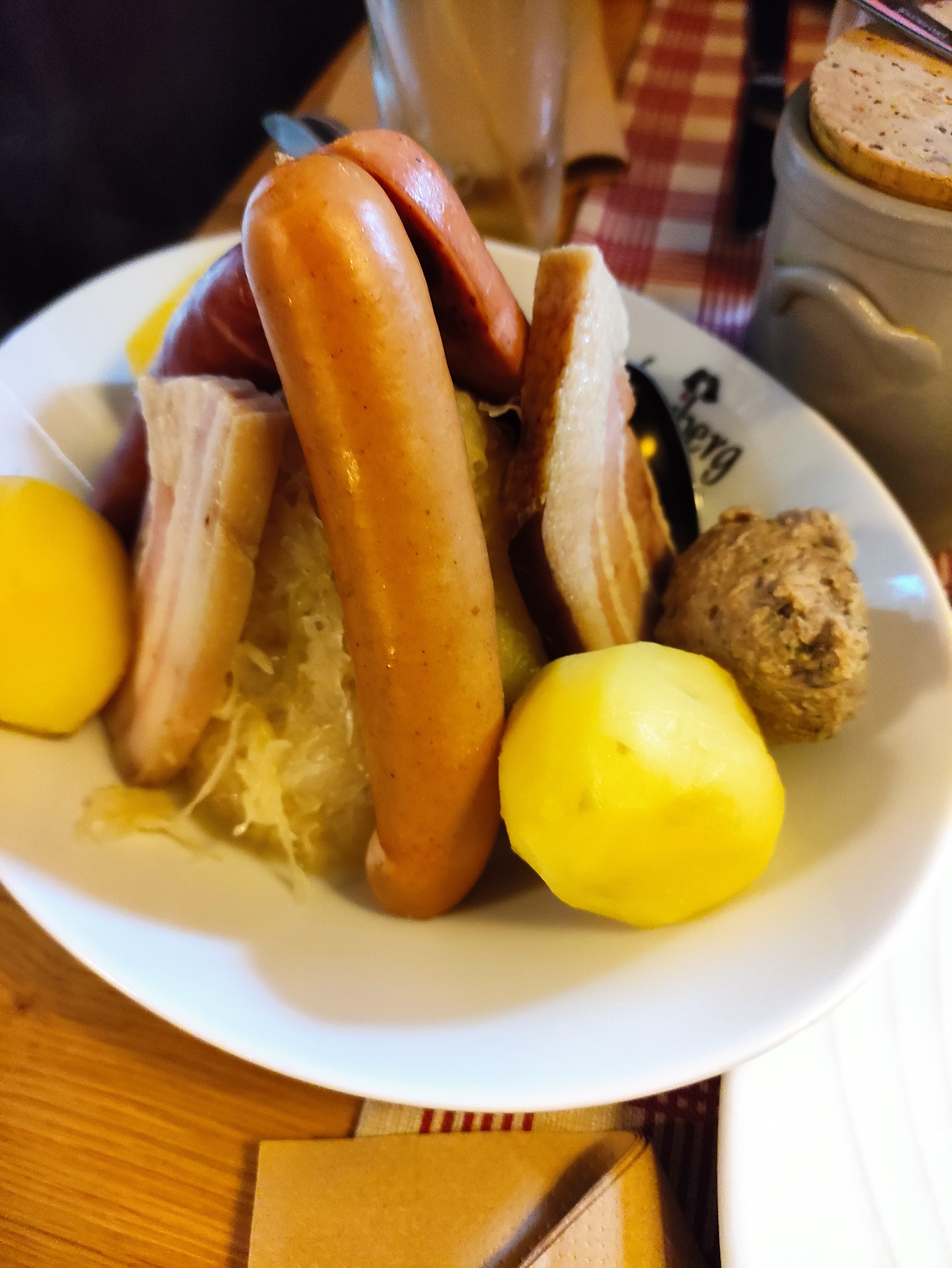 Nous avons choisi cet établissement pour y déguster une choucroute (visite en Alsace oblige). Nous n'avons pas été déçus car avec ses 7 viandes, un chou parfait, elle était tout simplement succulente ! En dessert, un kougelhof glacé excellent. Une bière locale de qualité, tout cela pour un prix correct, je recommande chaudement ce restaurant. Réservation impérative.